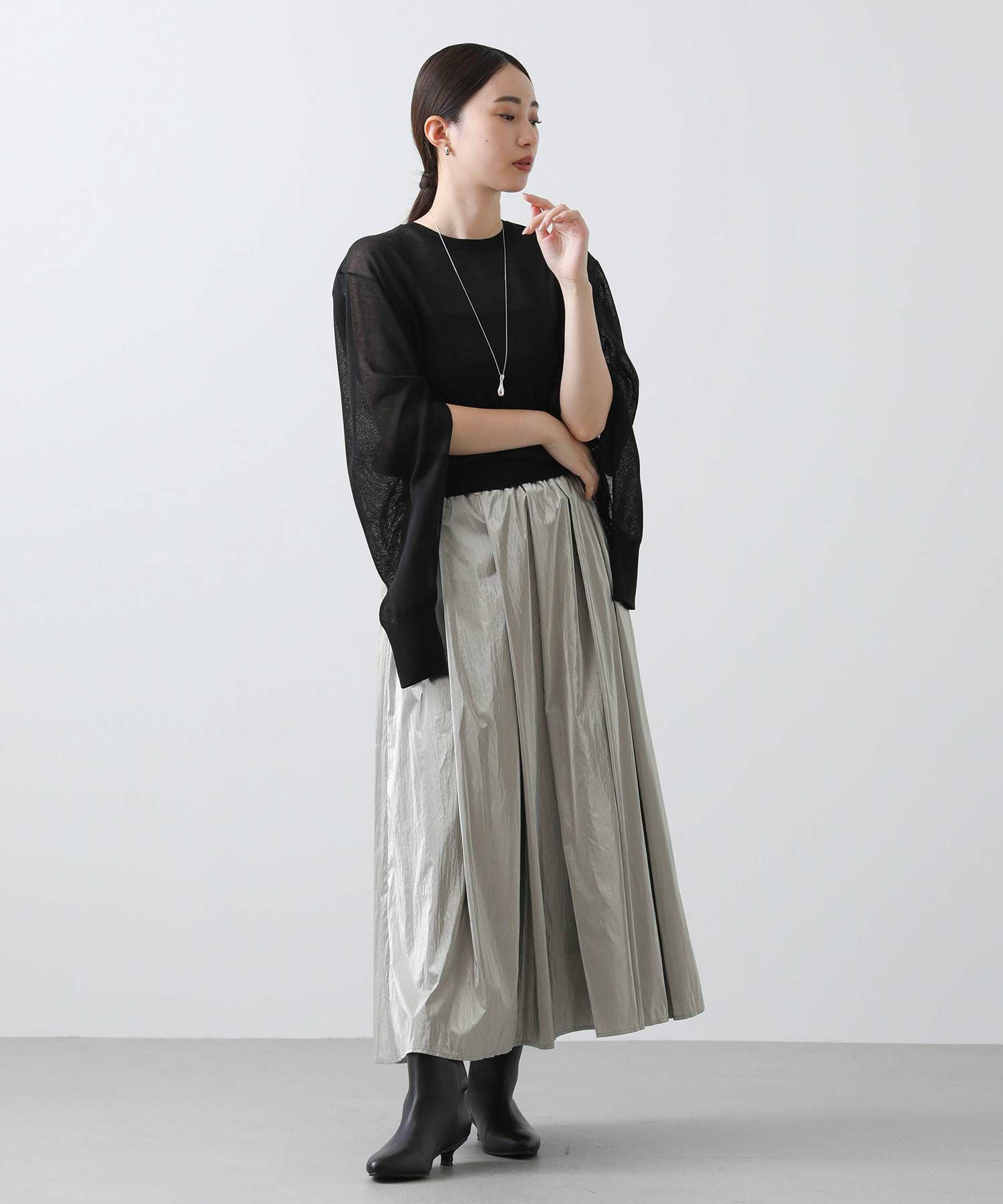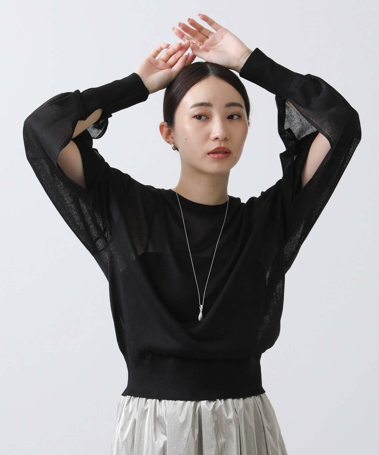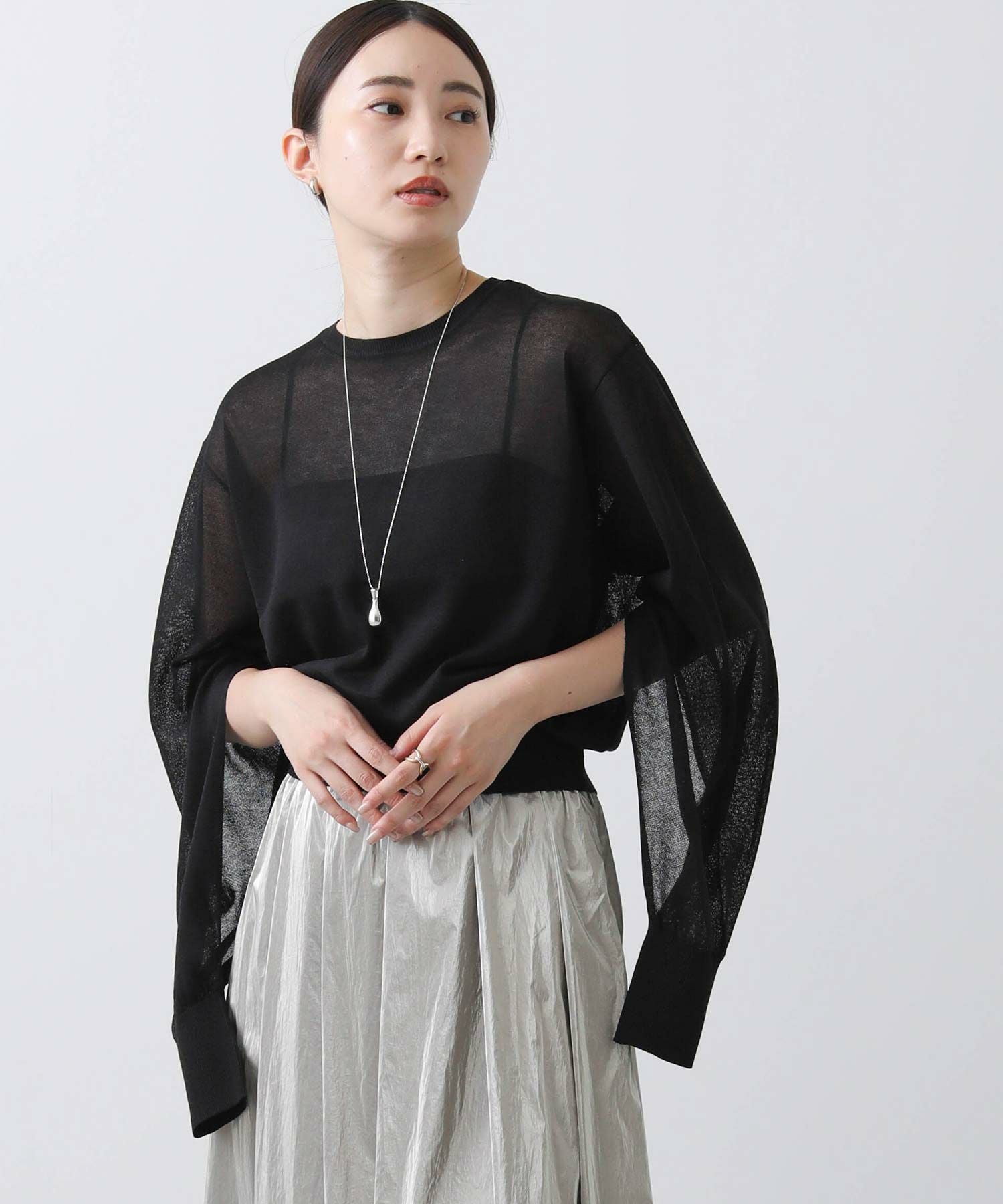 ややシアー感のあるさらりとしたドライタッチな薄手のコットン素材は肌触りがよく、冷房対策にもおすすめ。