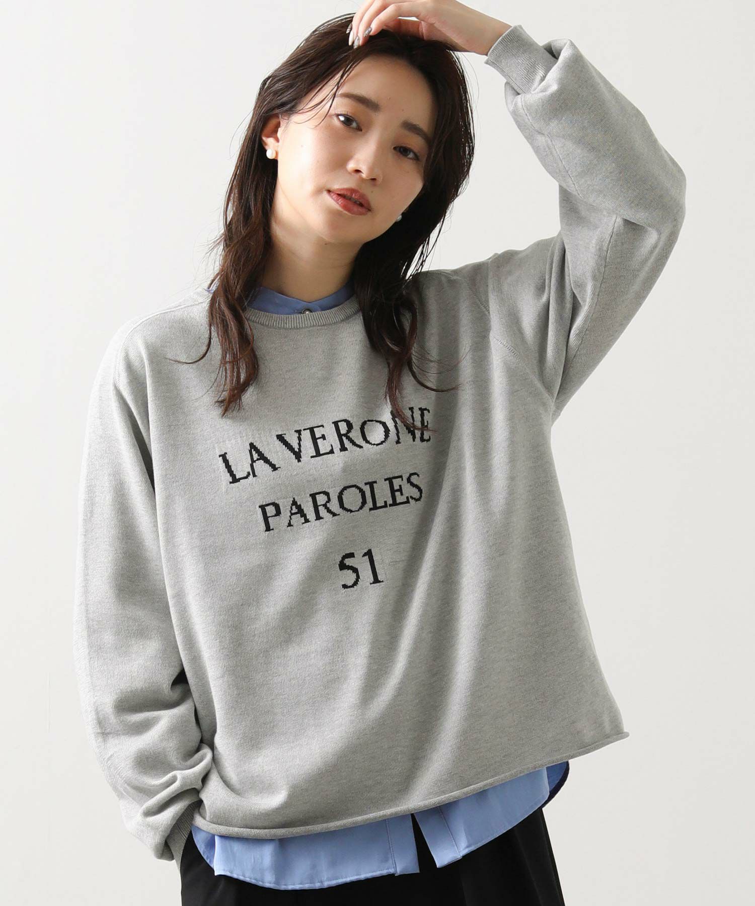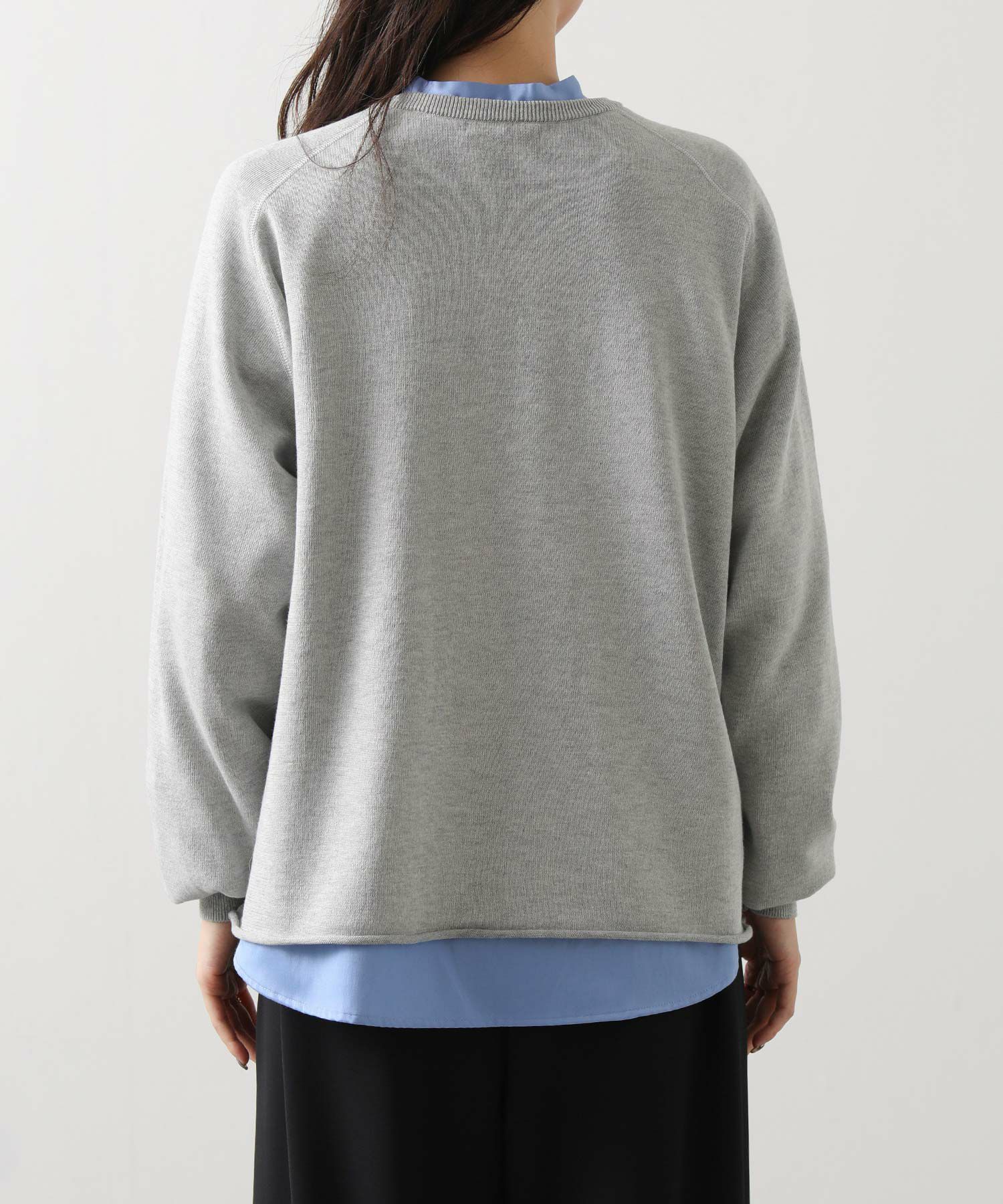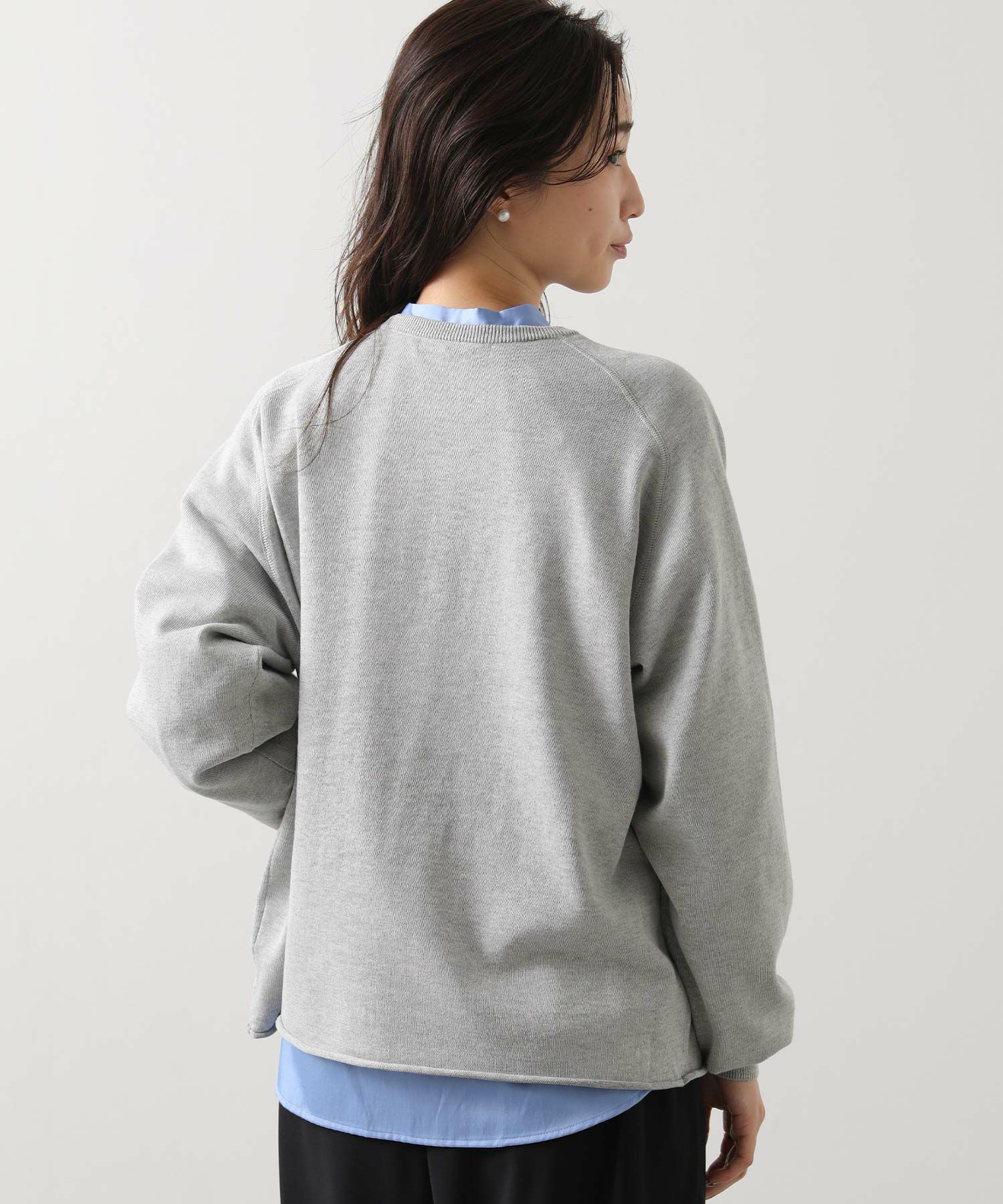 身頃のロゴが控えめなポイントになった、ラグランスリーブのニットトップス。