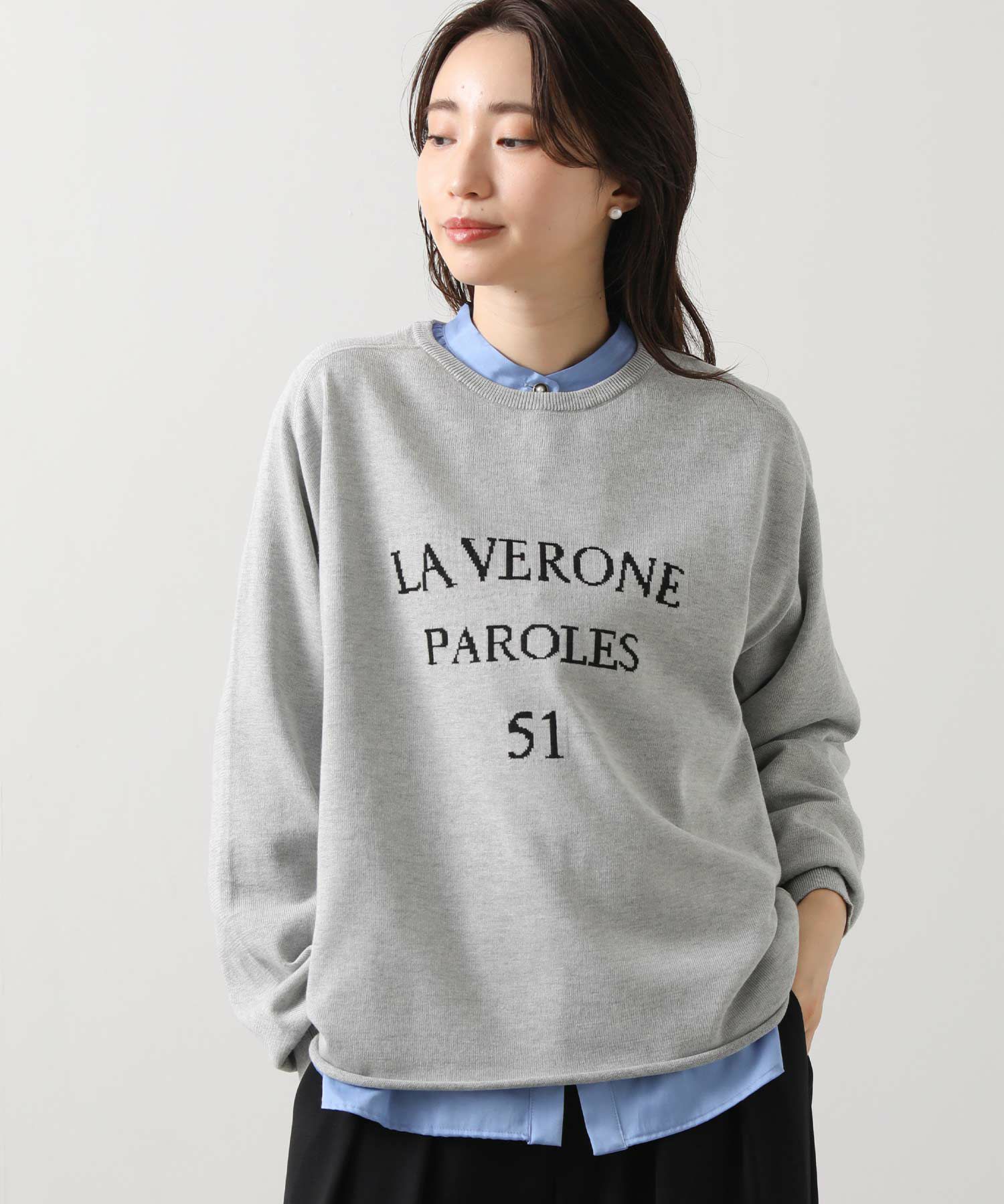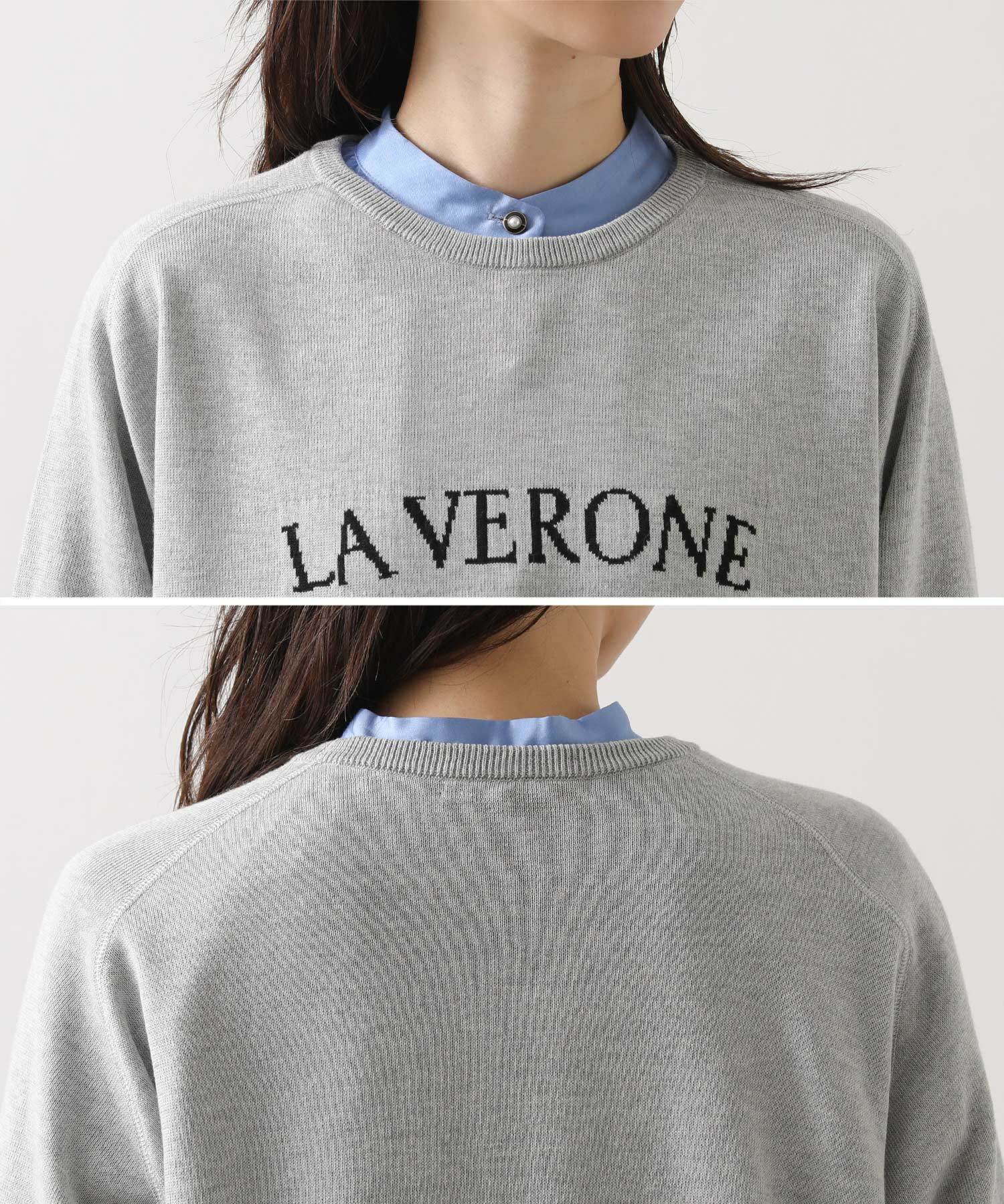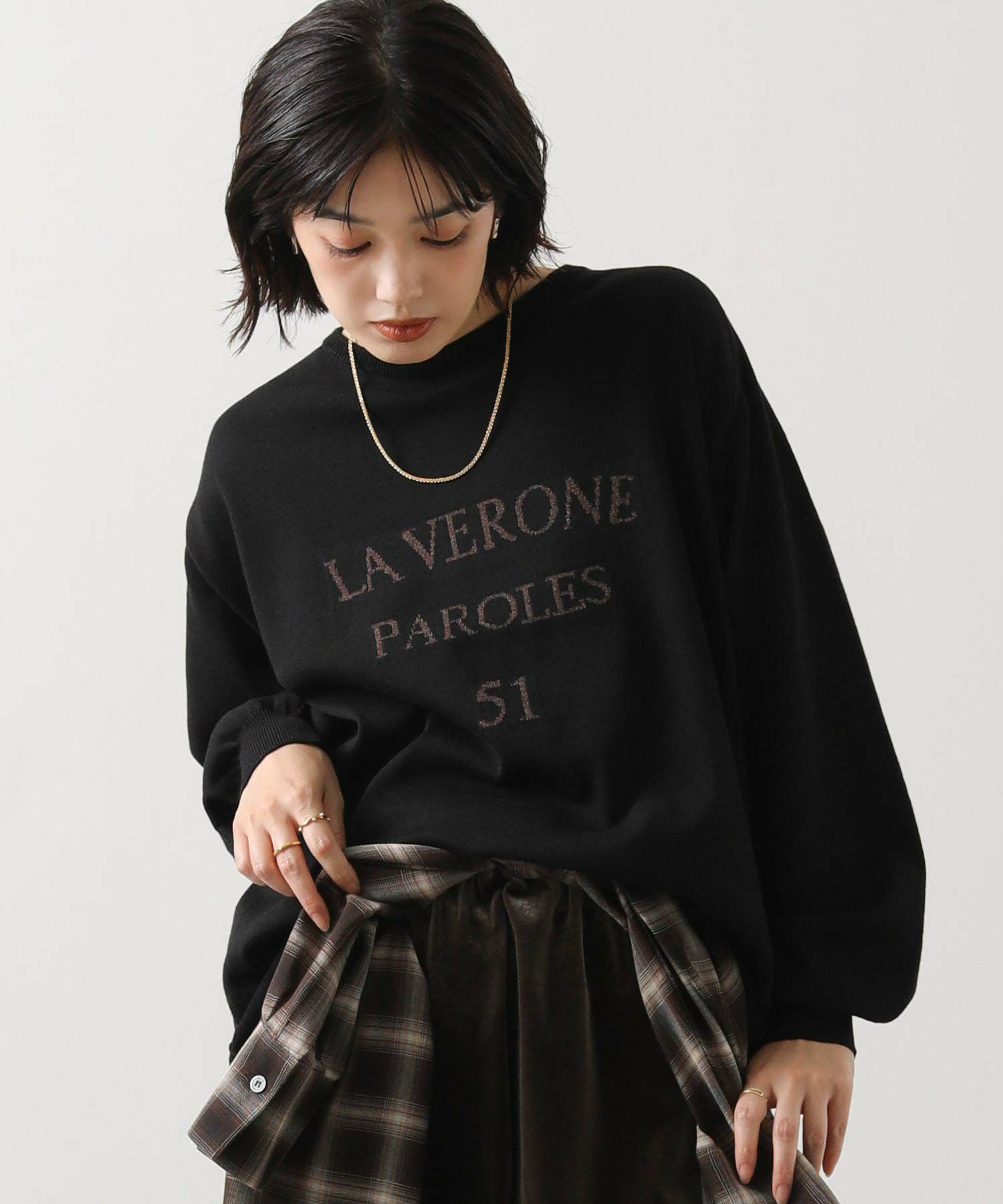 身頃のロゴが控えめなポイントになった、ラグランスリーブのニットトップス。
