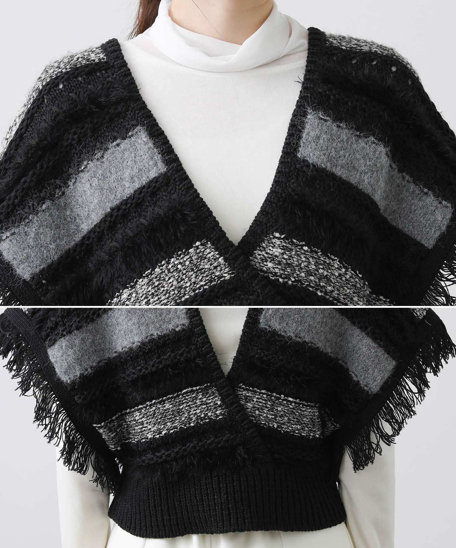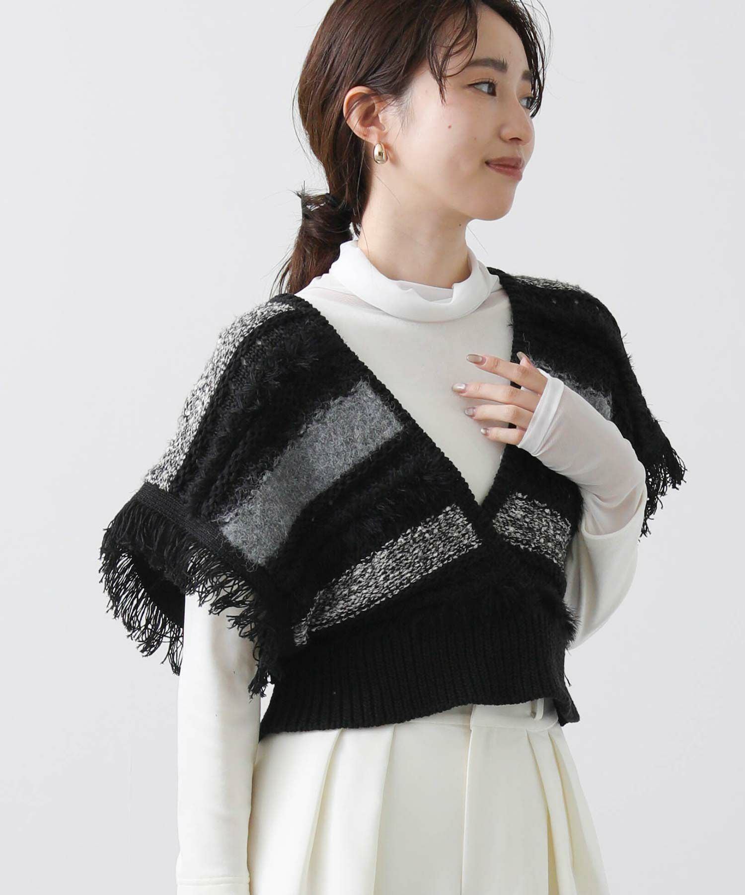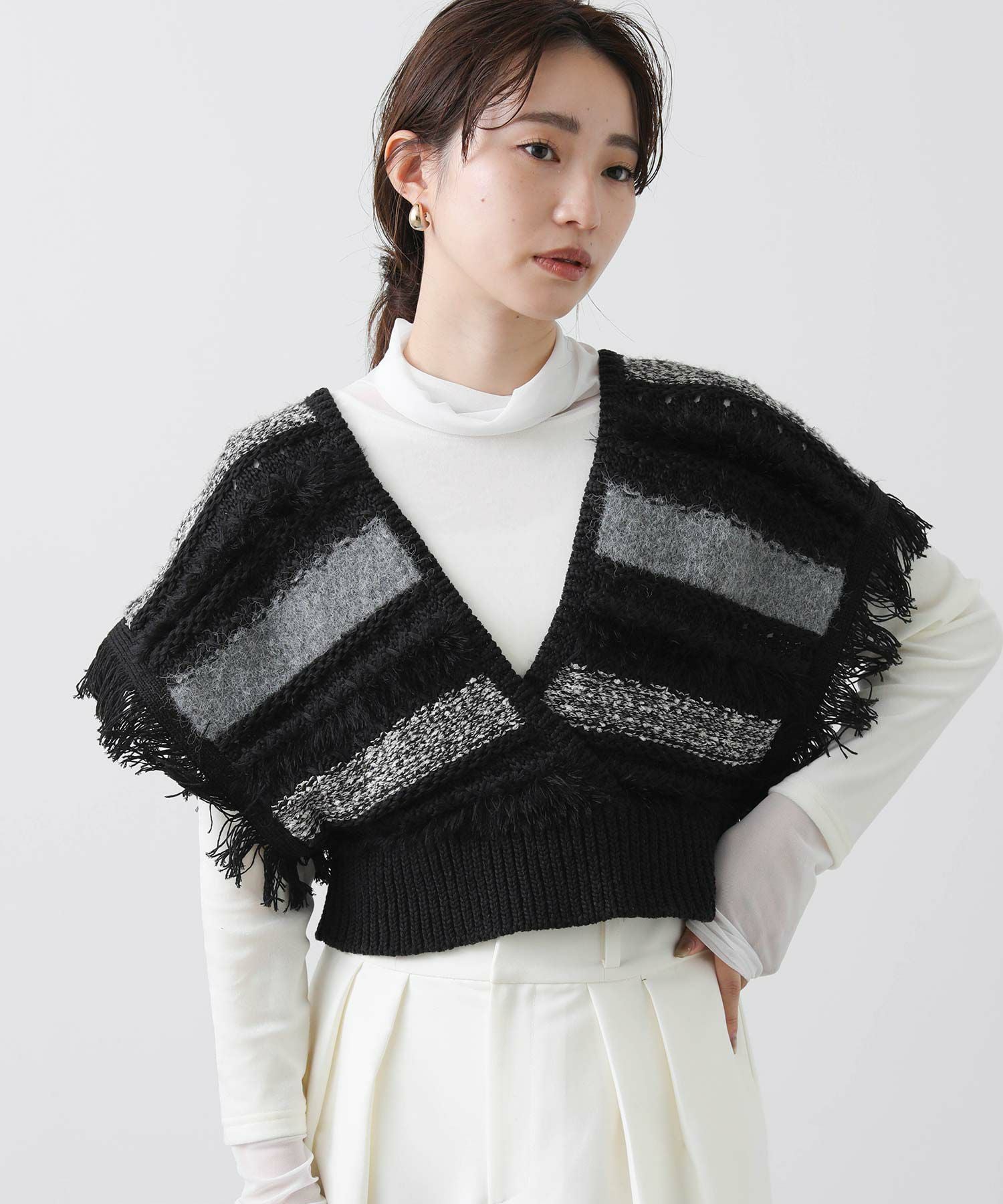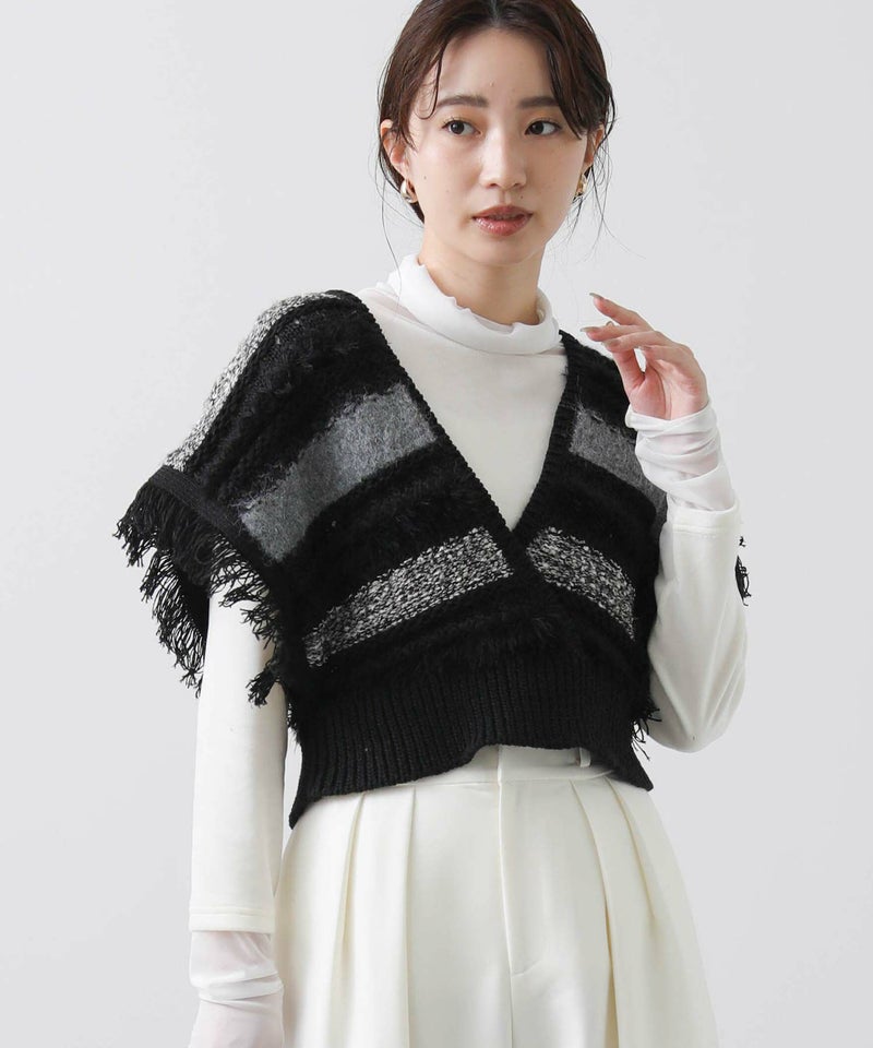 セレクト。色々な糸で編まれた華やかなニットベストです。