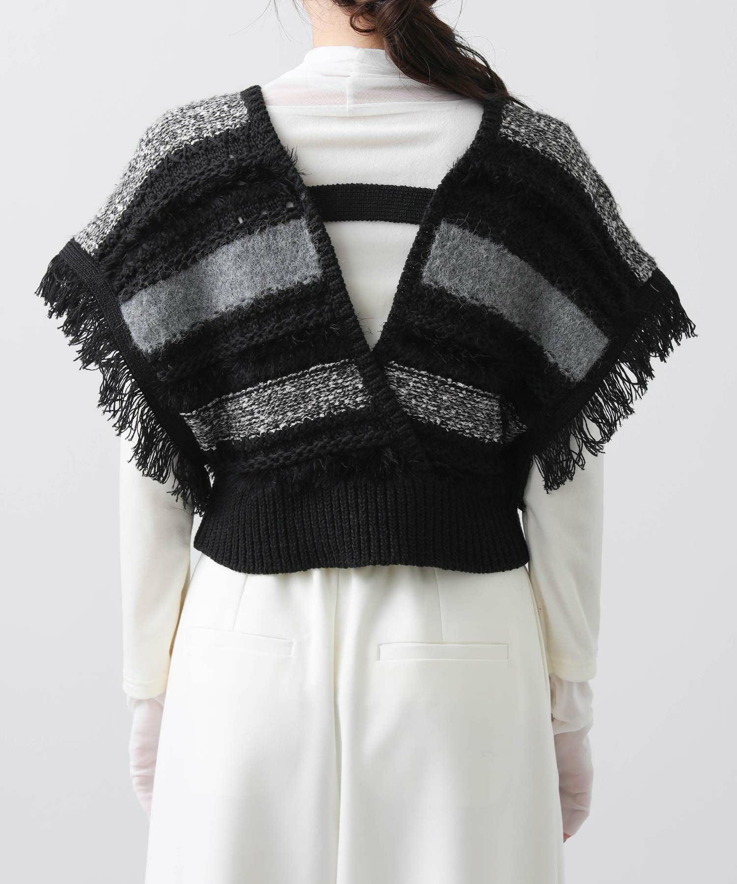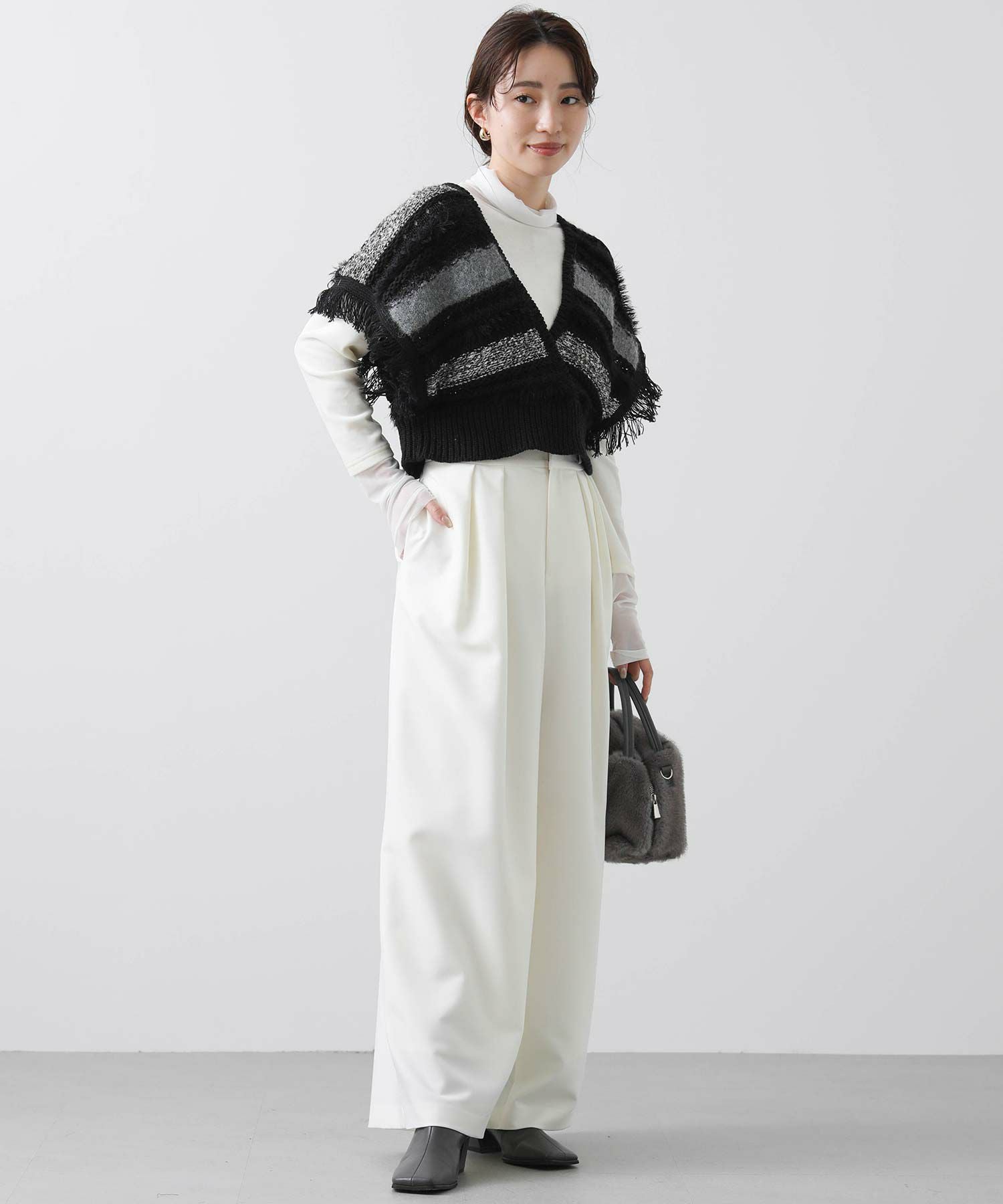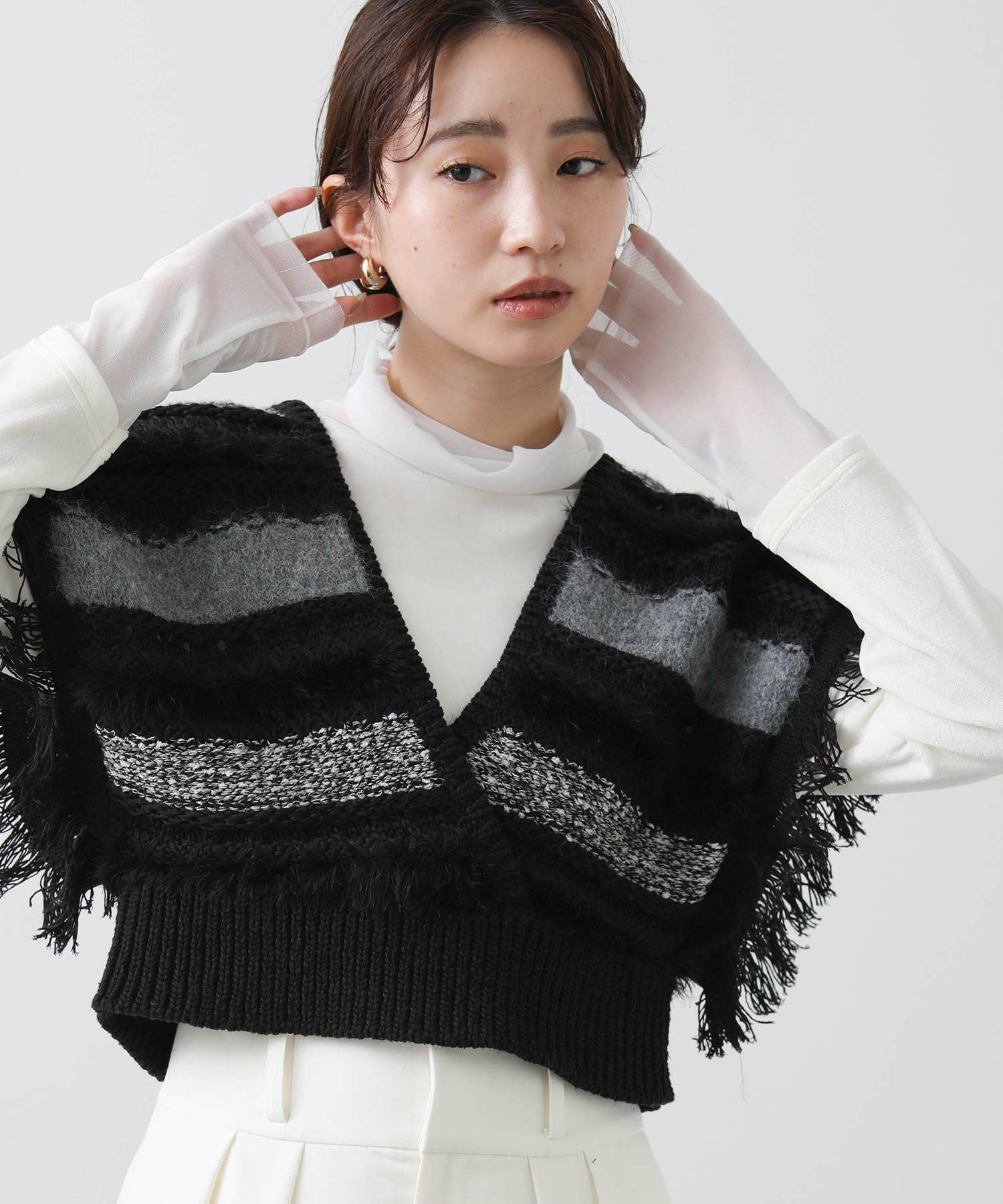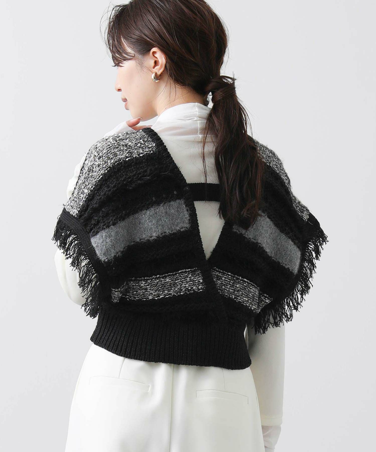 【Torrazzo Donna (トラッツォドンナ)】から、ファンシーヤーンをランダムなボーダーに組み合わせたニットベストを