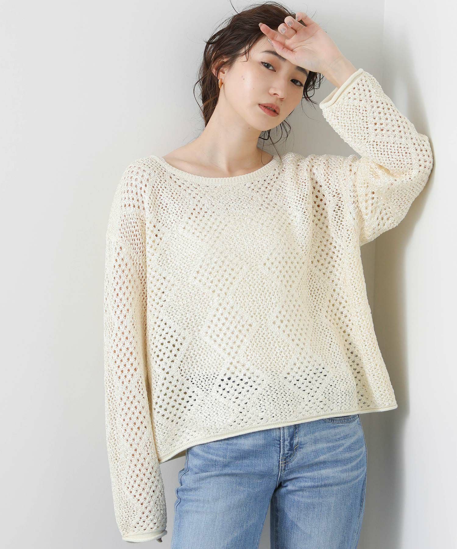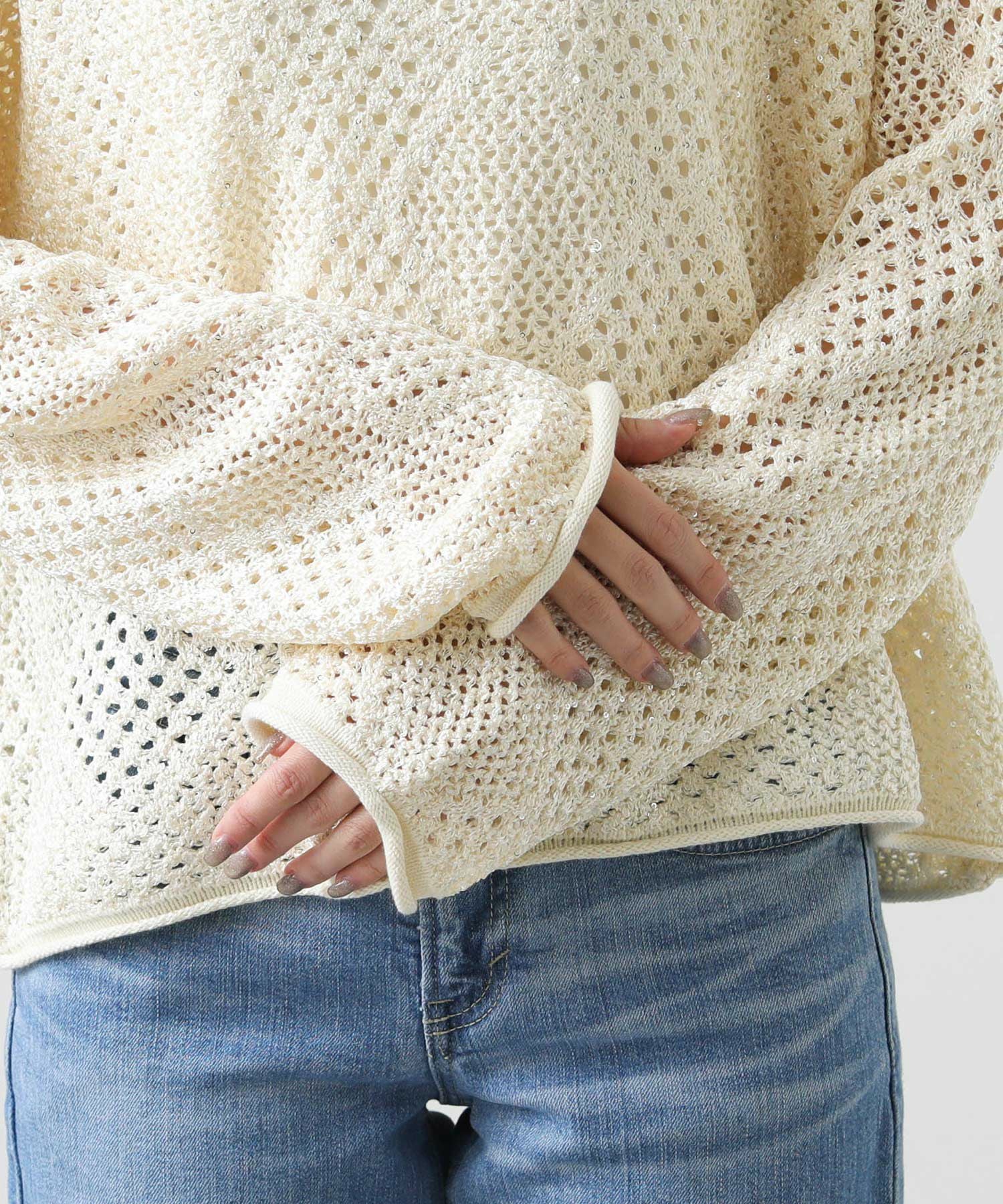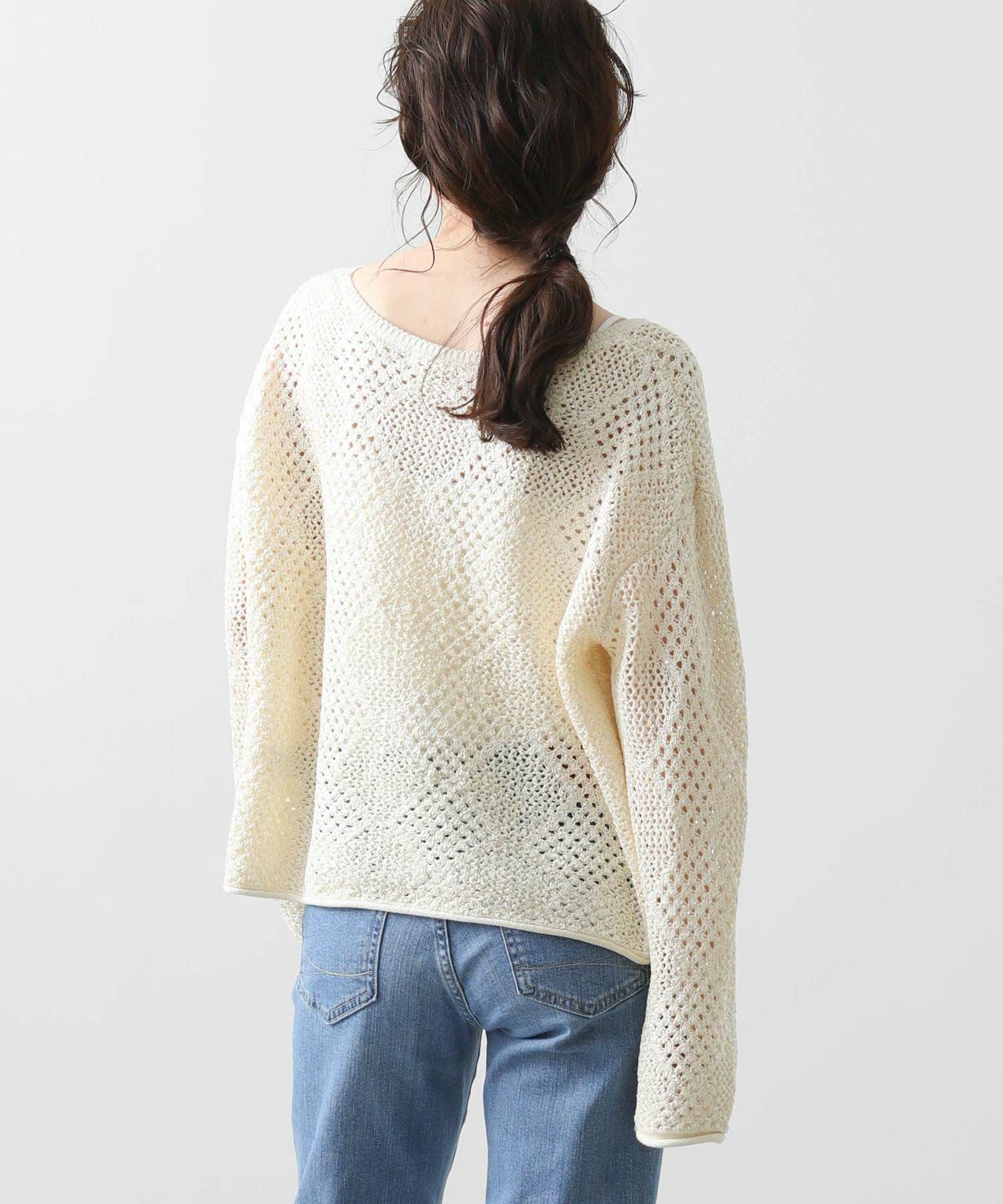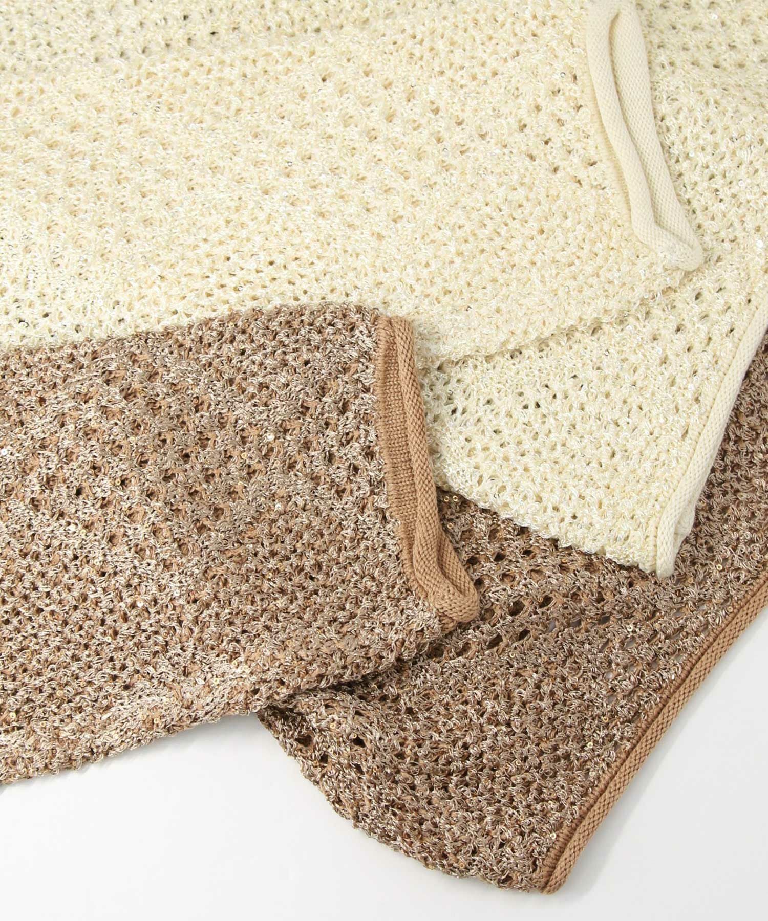【TorrazzoDonna(トラッツォドンナ)】から、小さなスパンコールが散りばめられた、ファンシーヤーンの透かし柄ニットをセレクト。