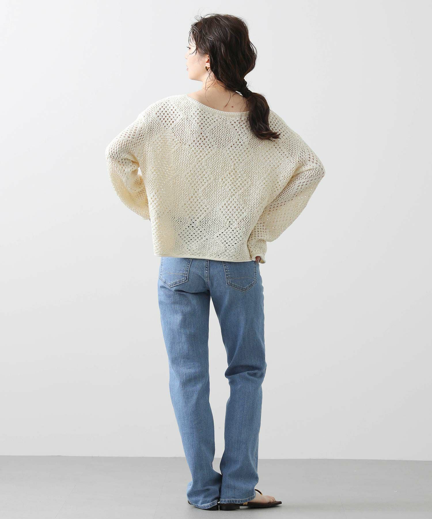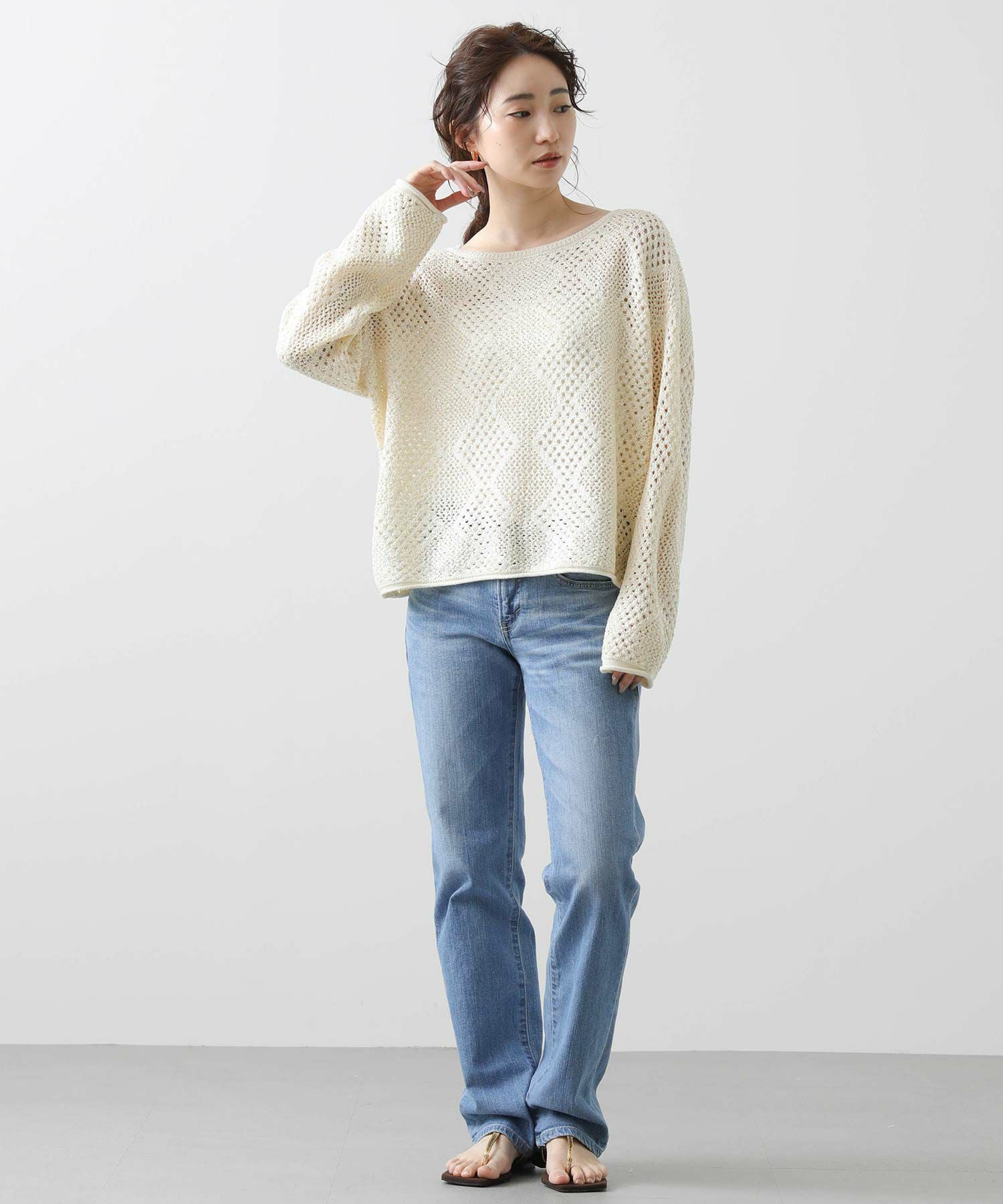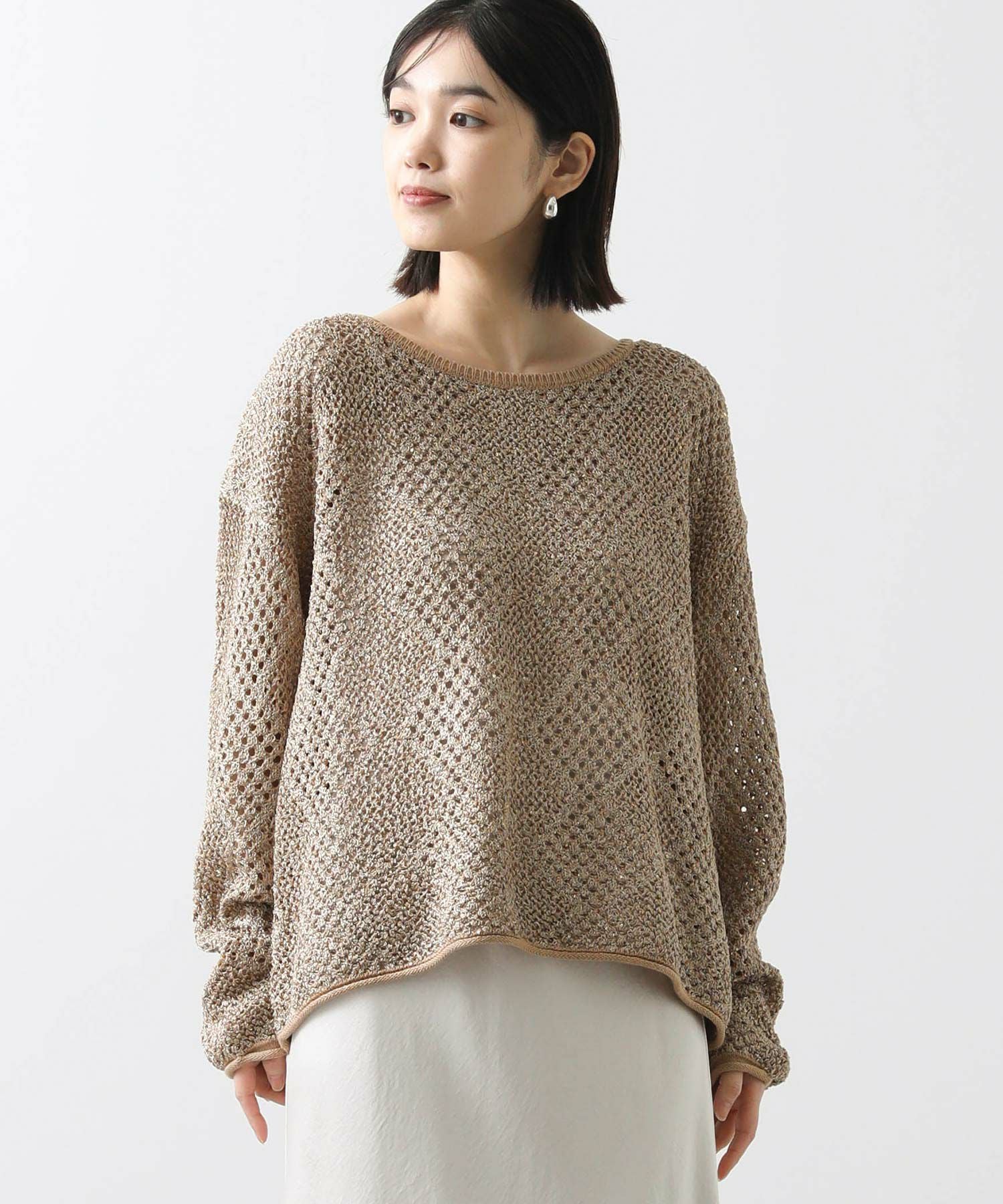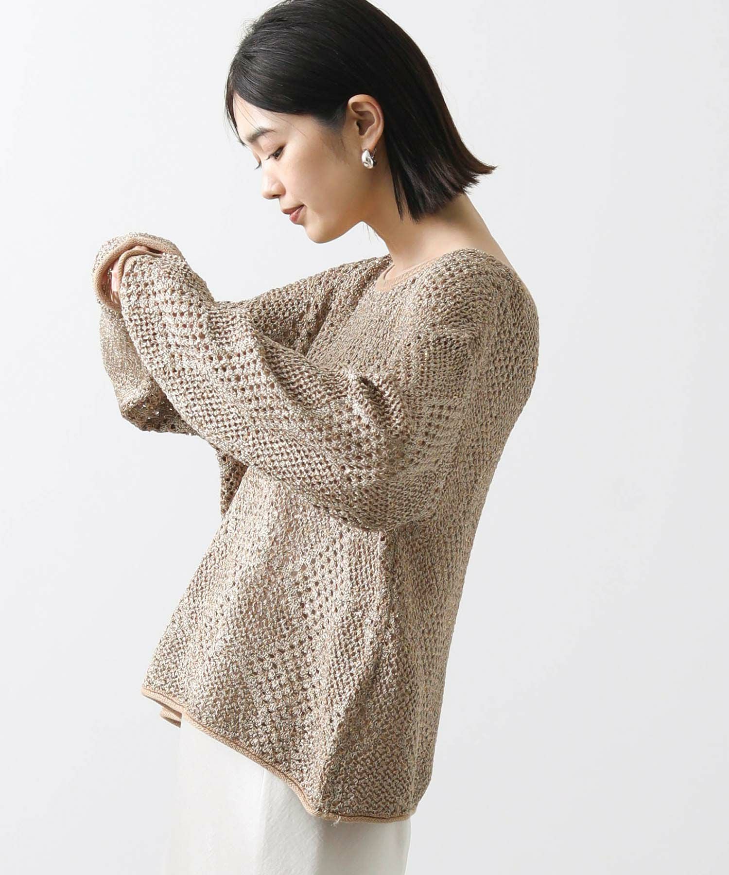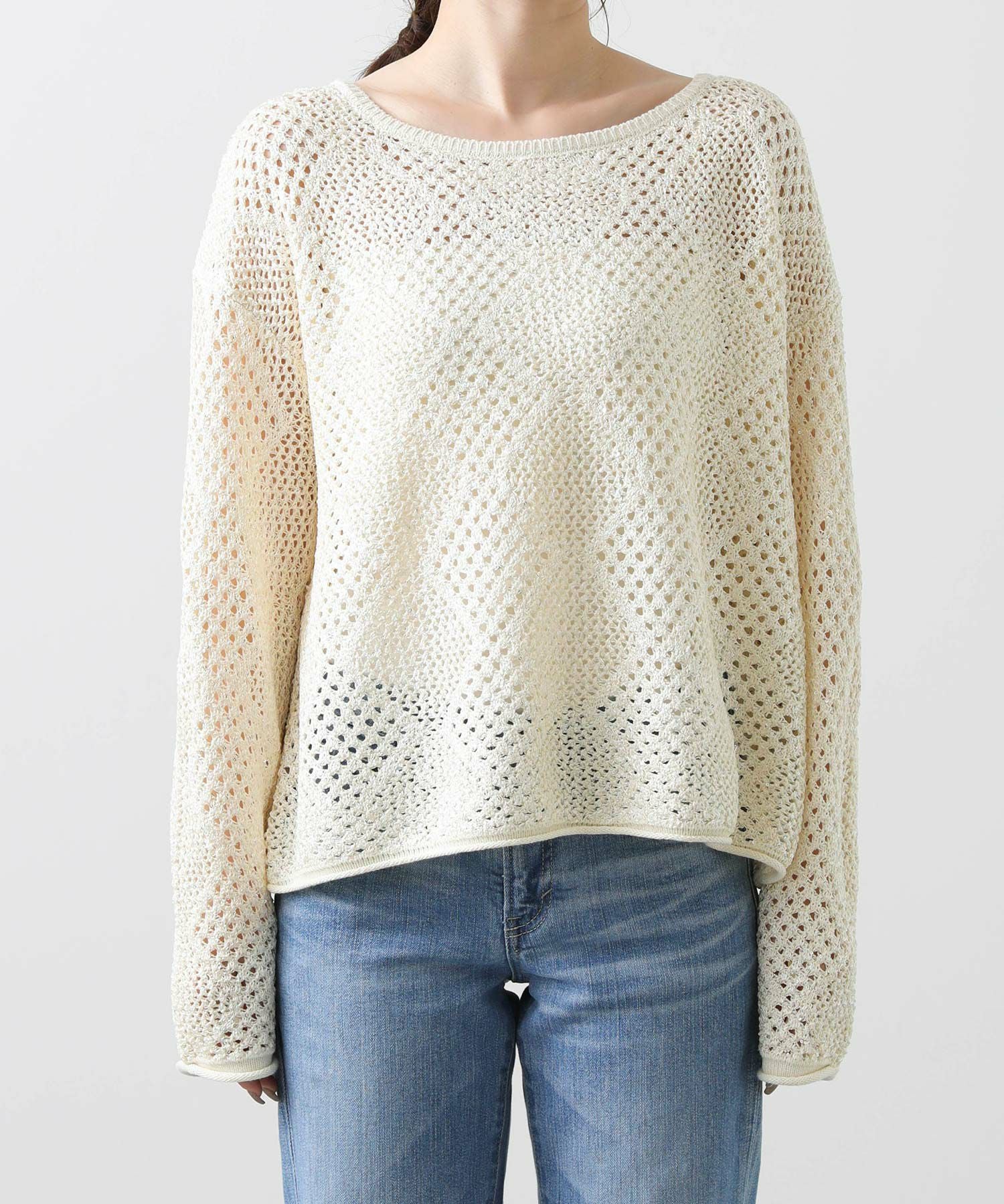 【TorrazzoDonna(トラッツォドンナ)】から、小さなスパンコールが散りばめられた、ファンシーヤーンの透かし柄ニットをセレクト。