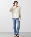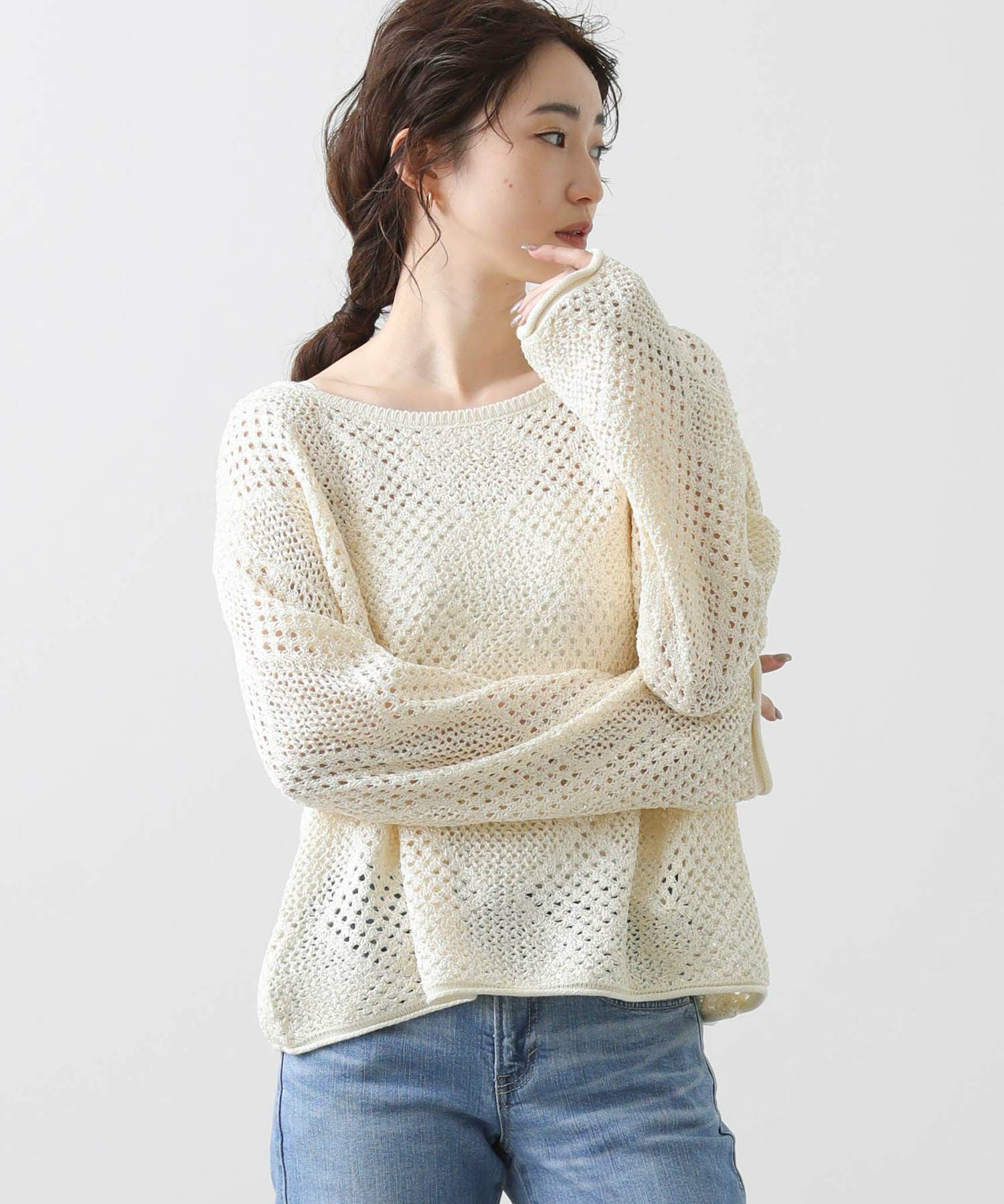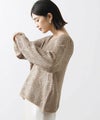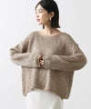 ネックは女性らしいボートネック、袖口と裾は別素材で切り替えてロール始末にしました。大人のニットスタイリングを楽しんで頂きたいです。