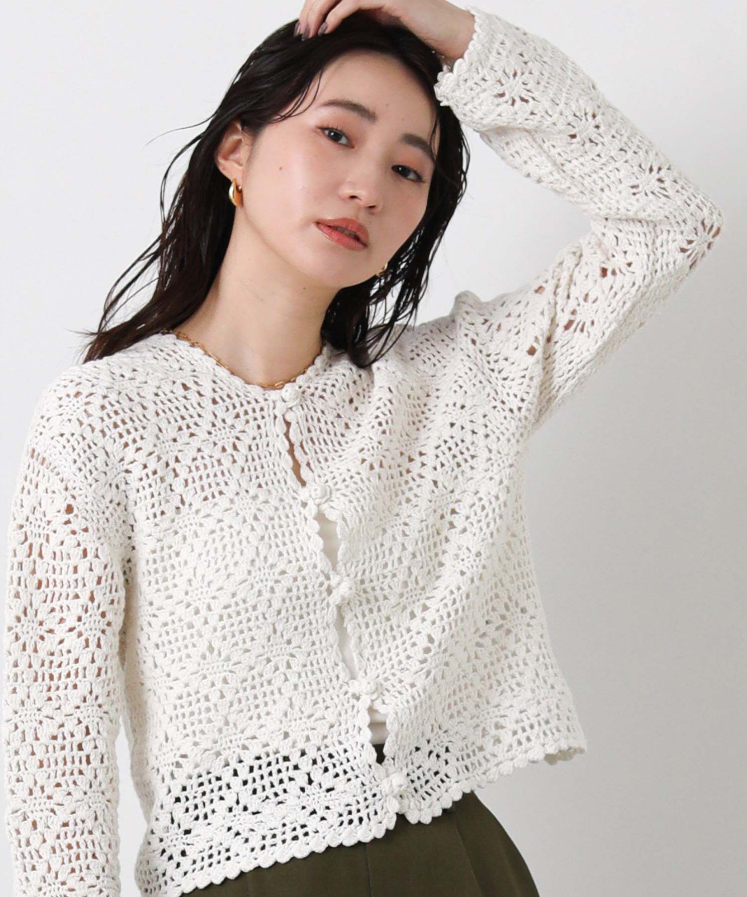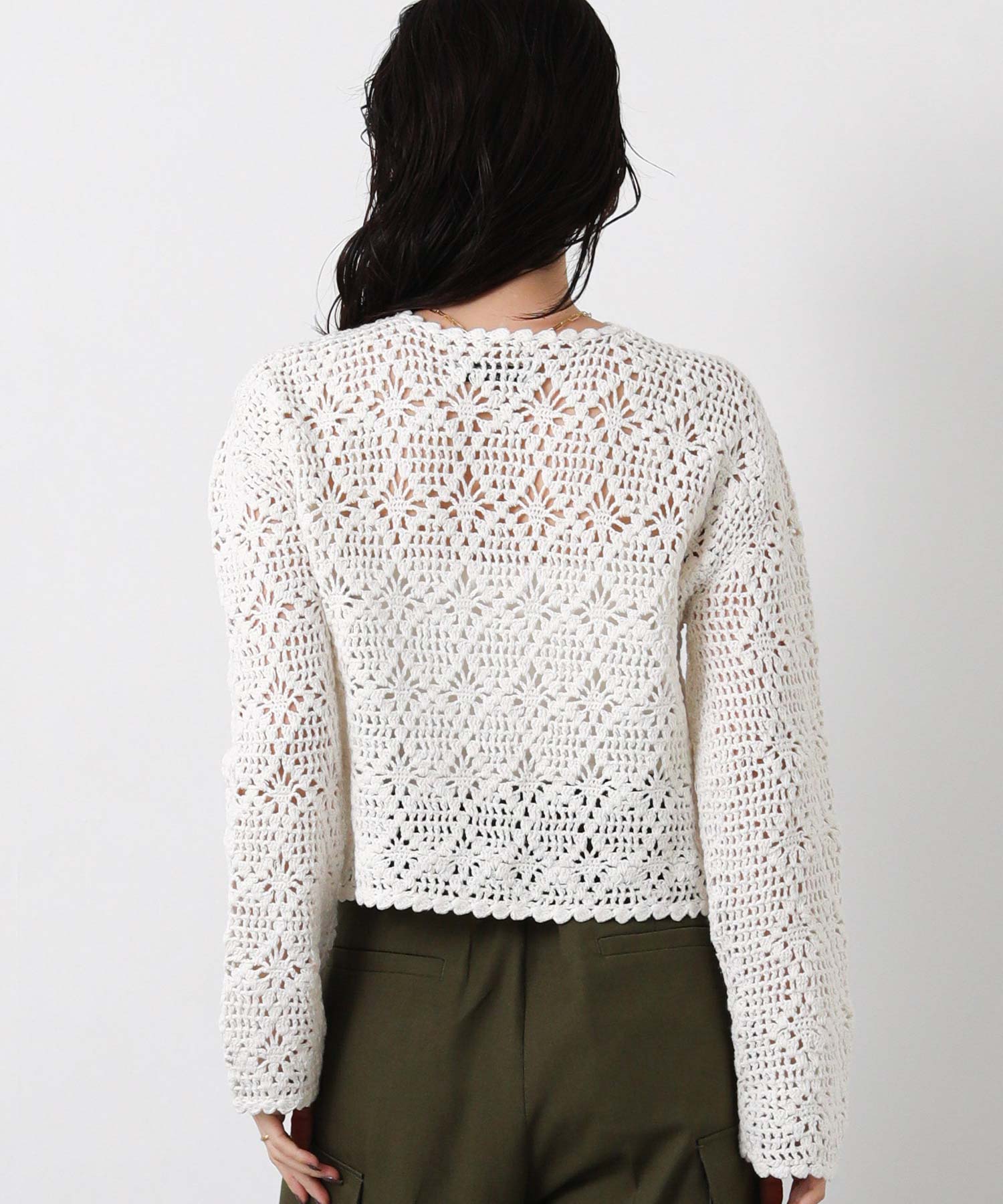 【TorrazzoDonna(トラッツォドンナ)】から、コーディネートに抜け感をプラスするクロシェ編みのカーディガンをセレクト。