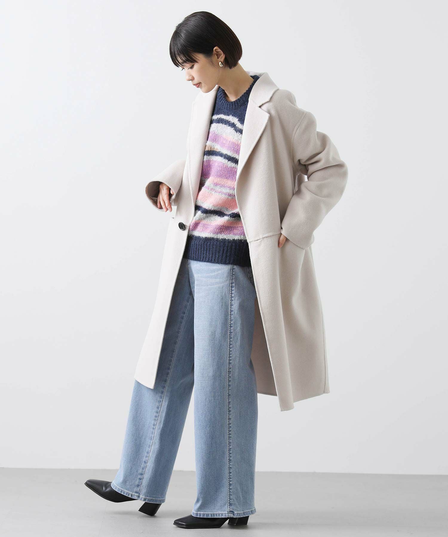 ボーダーが崩れてゼブラ柄に見えるような曖昧な柄域が、強すぎずにスタイリングに馴染みやすく、暗くなりがちな秋冬コーデを華やかに魅せてくれます。