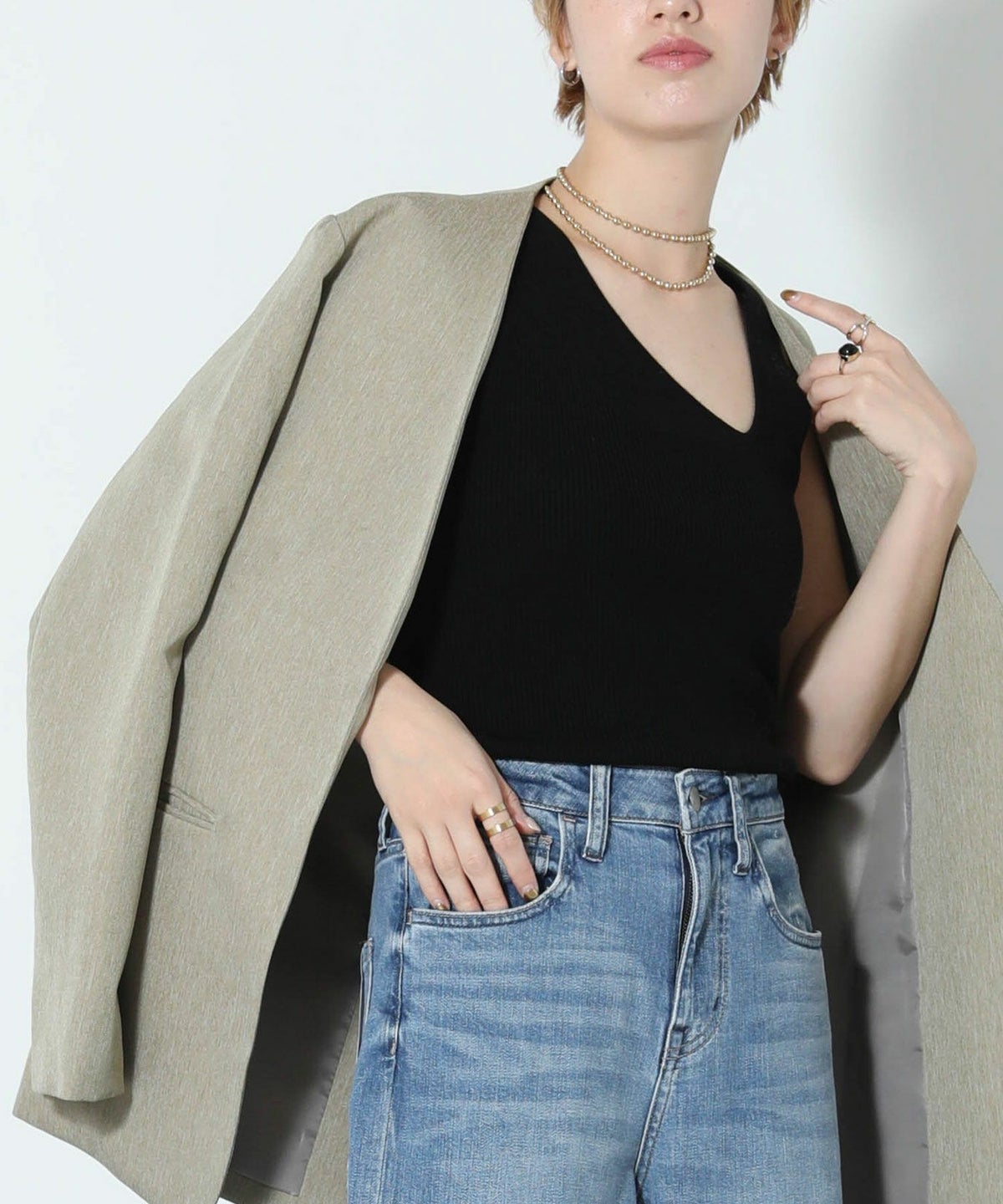 他の画像を見る 2点10%OFFクーポン対象 The rejoice【2026年4月ファミリーセール対象商品】変形Vネックリブニット 定価 ¥ 14,300 のところ ¥ 4,994 税込 販売開始前です。 販売期間 2026/04/02 18:50 〜 カートに入れる お気に入りに登録する MORE