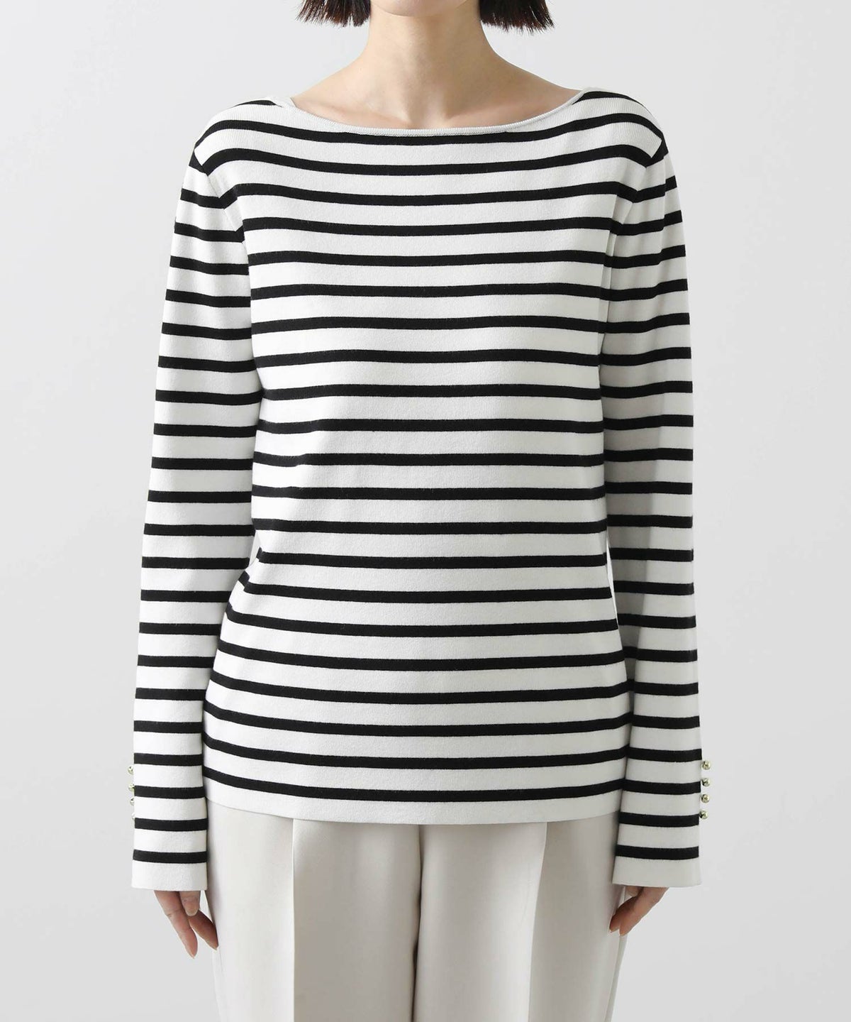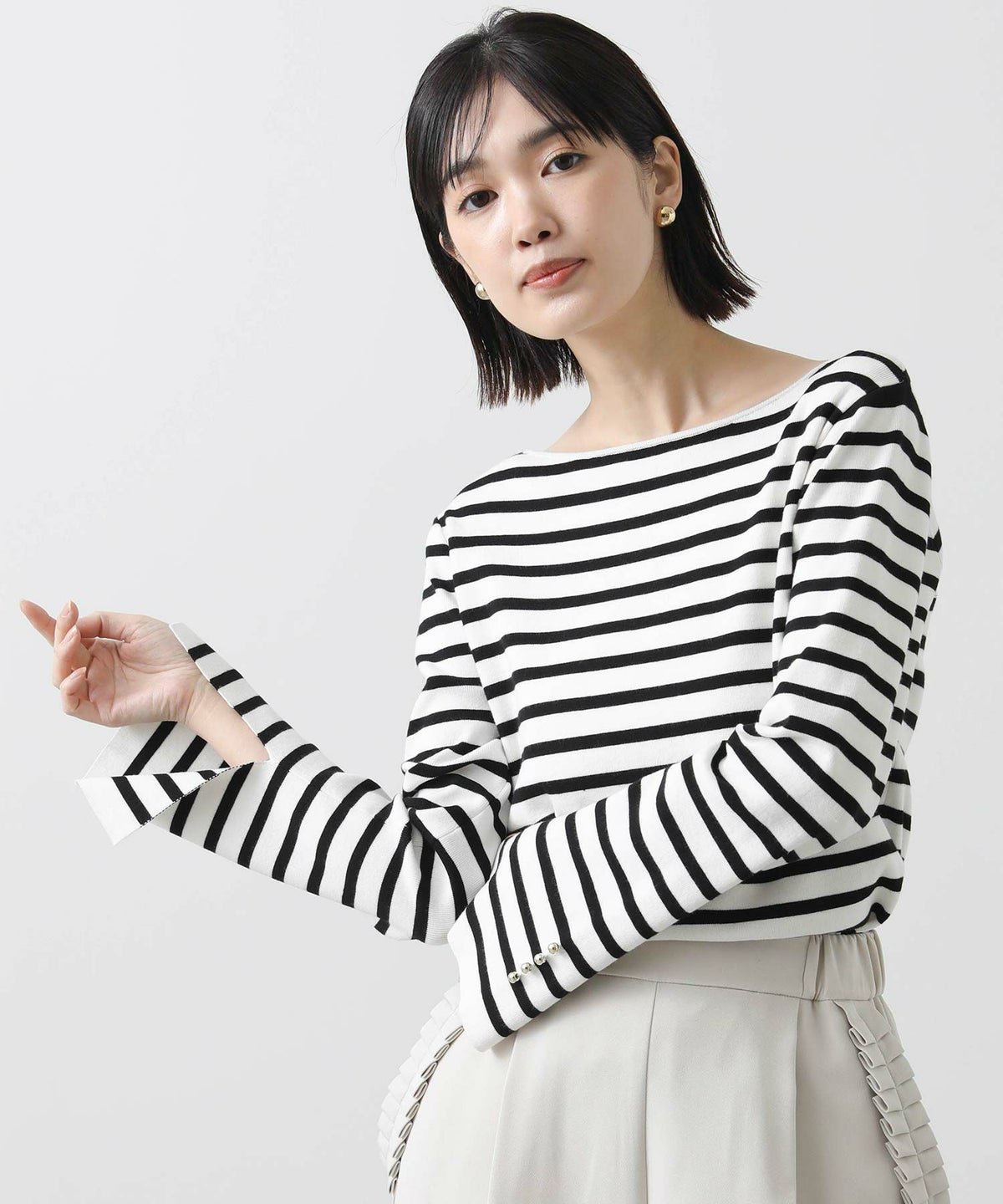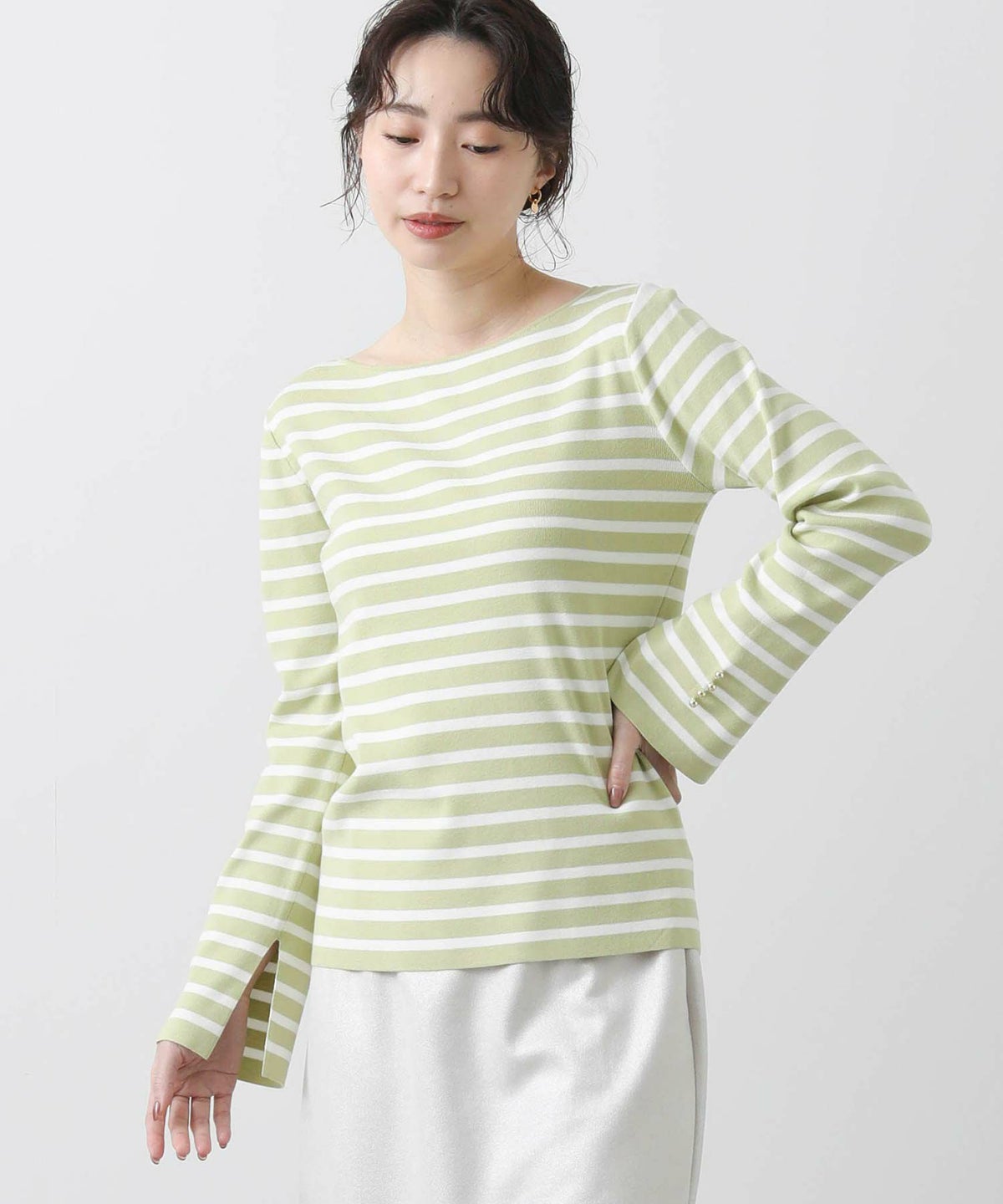 他の画像を見る 2点10%OFFクーポン対象 Gready Brilliant【2026年4月ファミリーセール対象商品】総針ボーダーボートネックフレアスリーブニット 定価 ¥ 12,100 のところ ¥ 6,490 税込 販売開始前です。 販売期間 2026/04/02 18:50 〜 カートに入れる お気に入りに登録する MORE