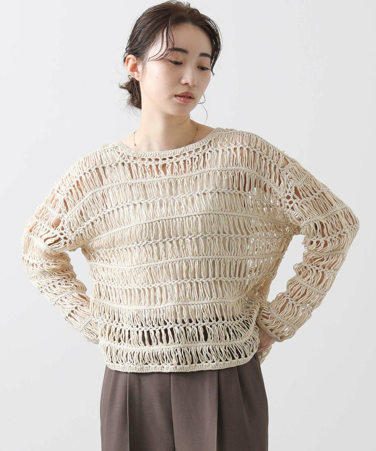 他の画像を見る 2点10%OFFクーポン対象 Gready Brilliant【2026年4月ファミリーセール対象商品】f.クロシェ透かしボートネックニット 定価 ¥ 14,300 のところ ¥ 9,570 税込 販売開始前です。 販売期間 2026/04/02 18:50 〜 カートに入れる お気に入りに登録する MORE