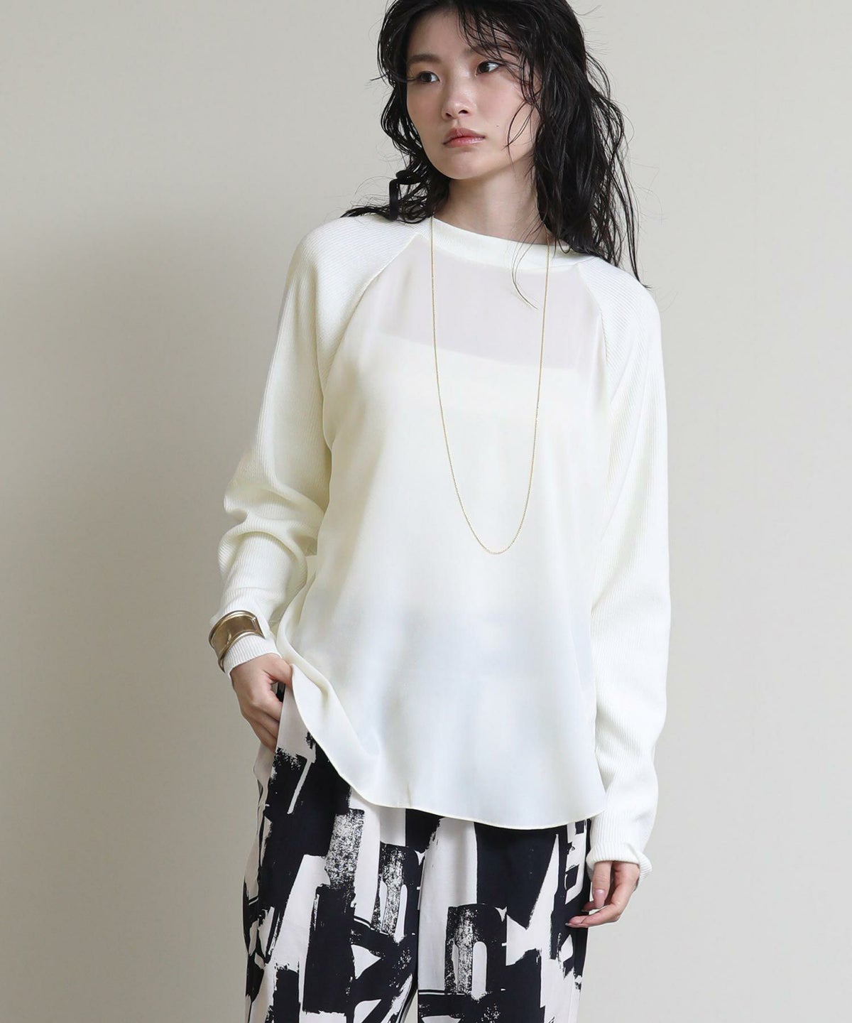 他の画像を見る 2点10%OFFクーポン対象 Gready Brilliant【2026年4月ファミリーセール対象商品】スカシ柄切り替えボートネックニット 定価 ¥ 13,200 のところ ¥ 8,580 税込 販売開始前です。 販売期間 2026/04/02 18:50 〜 カートに入れる お気に入りに登録する MORE