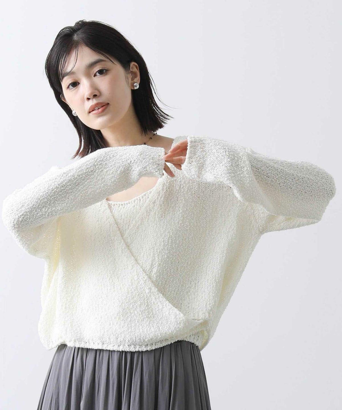 他の画像を見る 2点10%OFFクーポン対象 Gready Brilliant【2026年4月ファミリーセール対象商品】2wayESHERシアーニット 定価 ¥ 10,780 のところ ¥ 4,730 税込 販売開始前です。 販売期間 2026/04/02 18:50 〜 カートに入れる お気に入りに登録する MORE