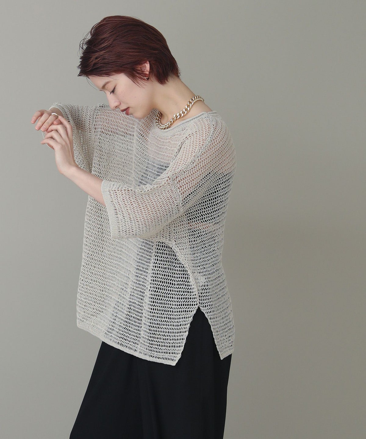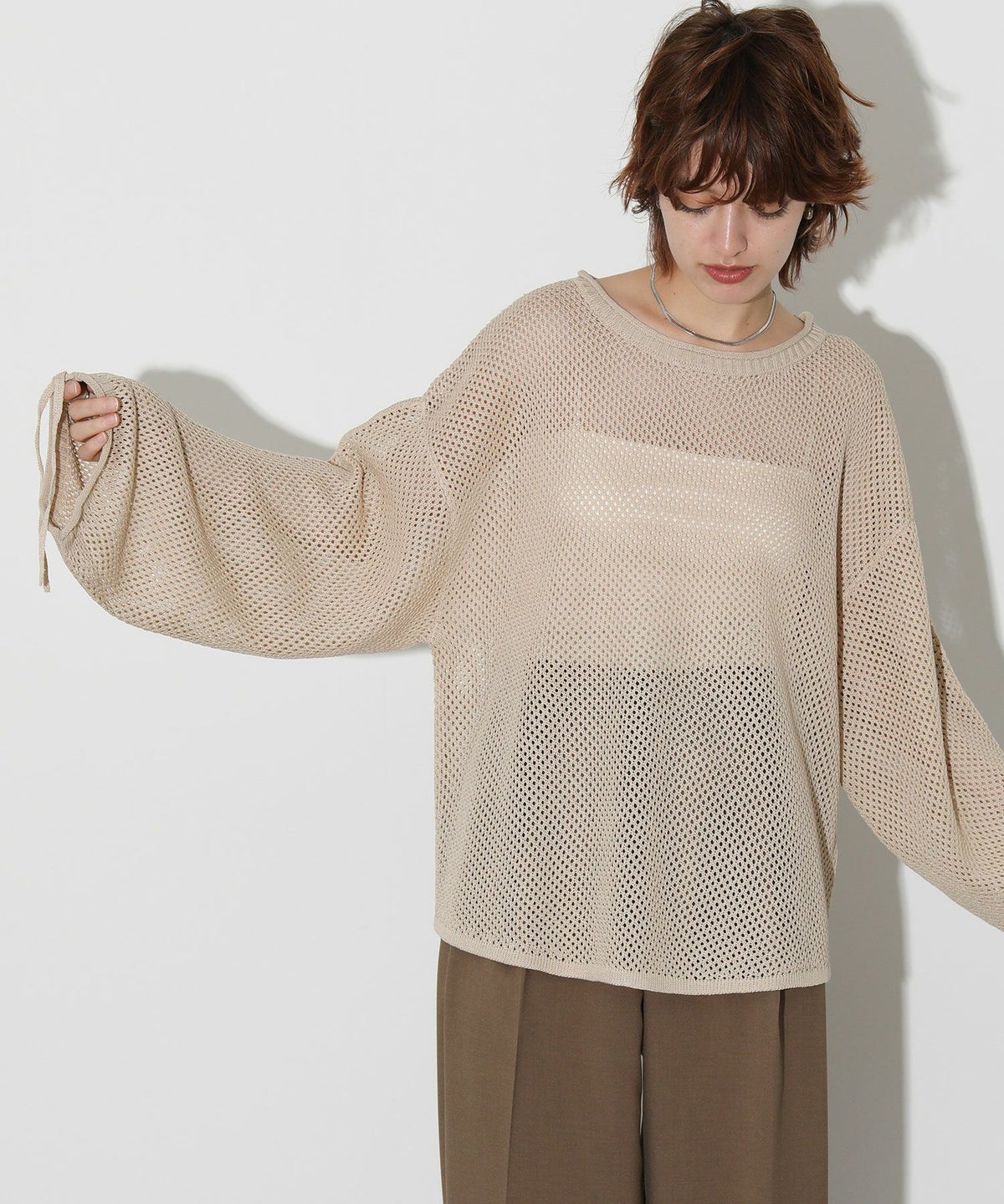 他の画像を見る 2点10%OFFクーポン対象 Gready Brilliant【2026年4月ファミリーセール対象商品】Cメッシュドロストスリーブニット 定価 ¥ 12,100 のところ ¥ 6,908 税込 販売開始前です。 販売期間 2026/04/02 18:50 〜 カートに入れる お気に入りに登録する MORE