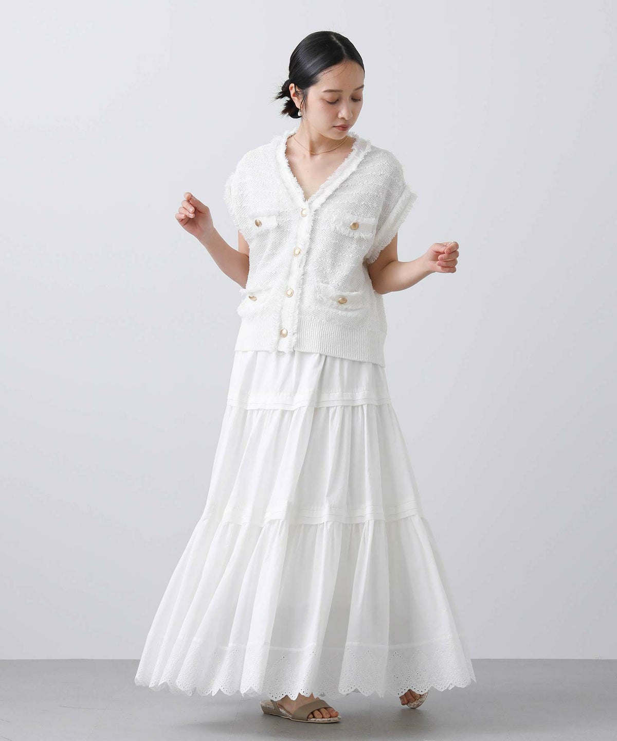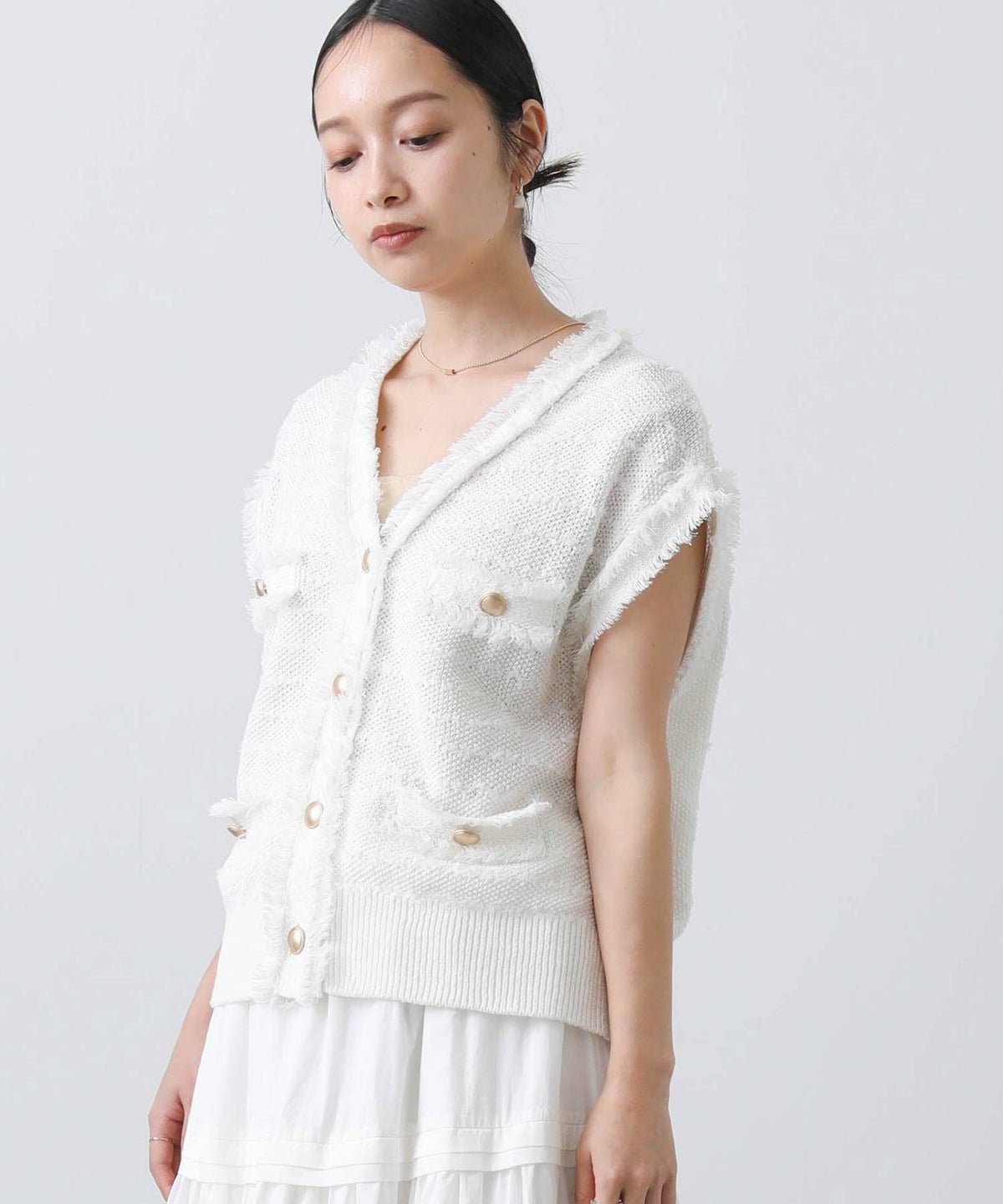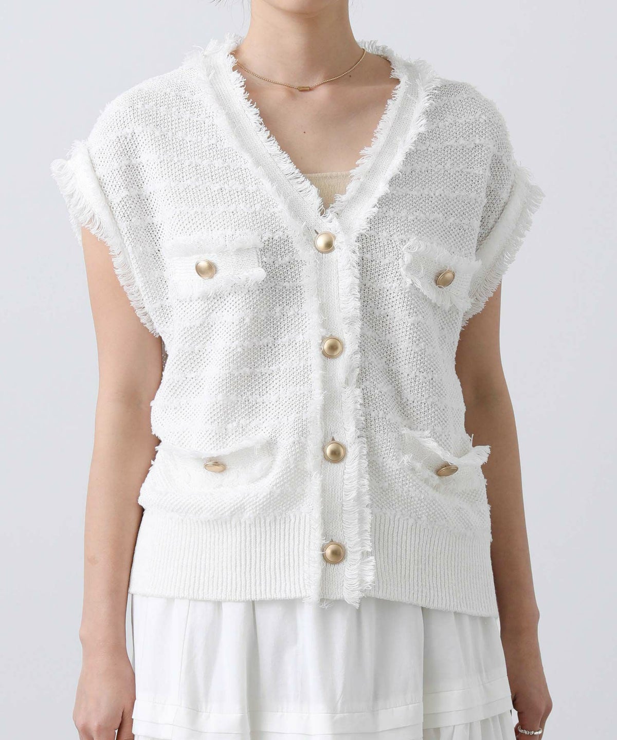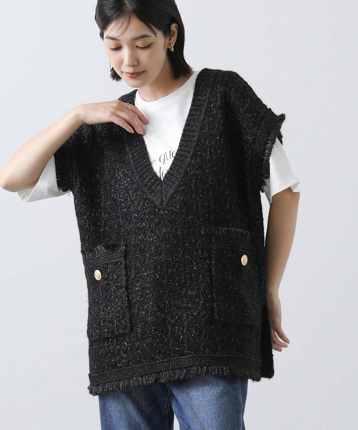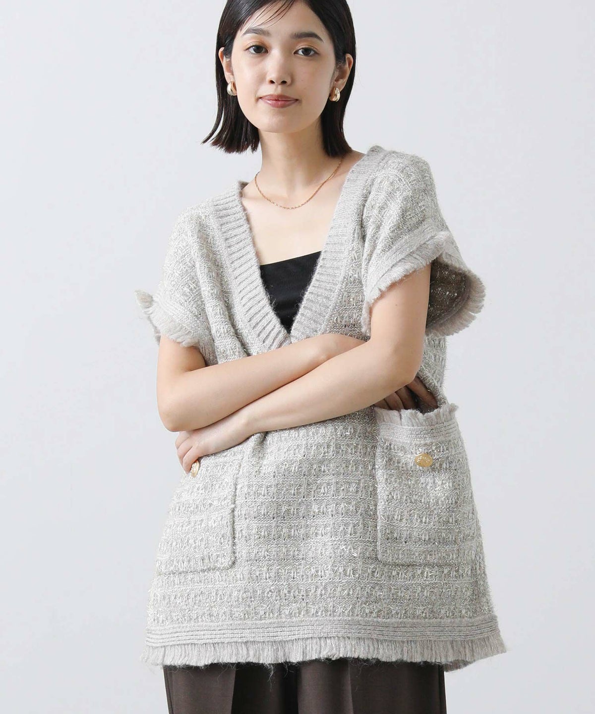 他の画像を見る 2点10%OFFクーポン対象 Gready Brilliant【2026年4月ファミリーセール対象商品】ツイードフリンジVベスト 定価 ¥ 10,780 のところ ¥ 6,934 税込 販売開始前です。 販売期間 2026/04/02 18:50 〜 カートに入れる お気に入りに登録する MORE