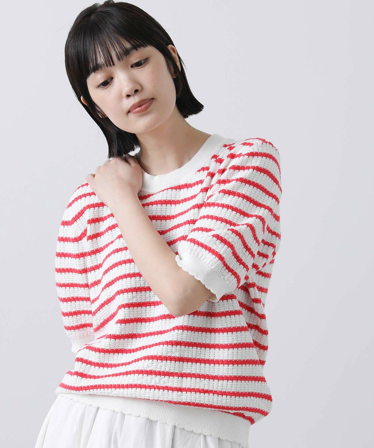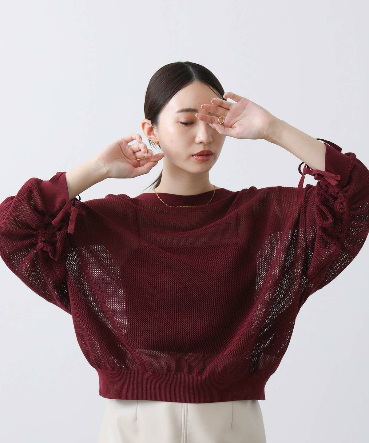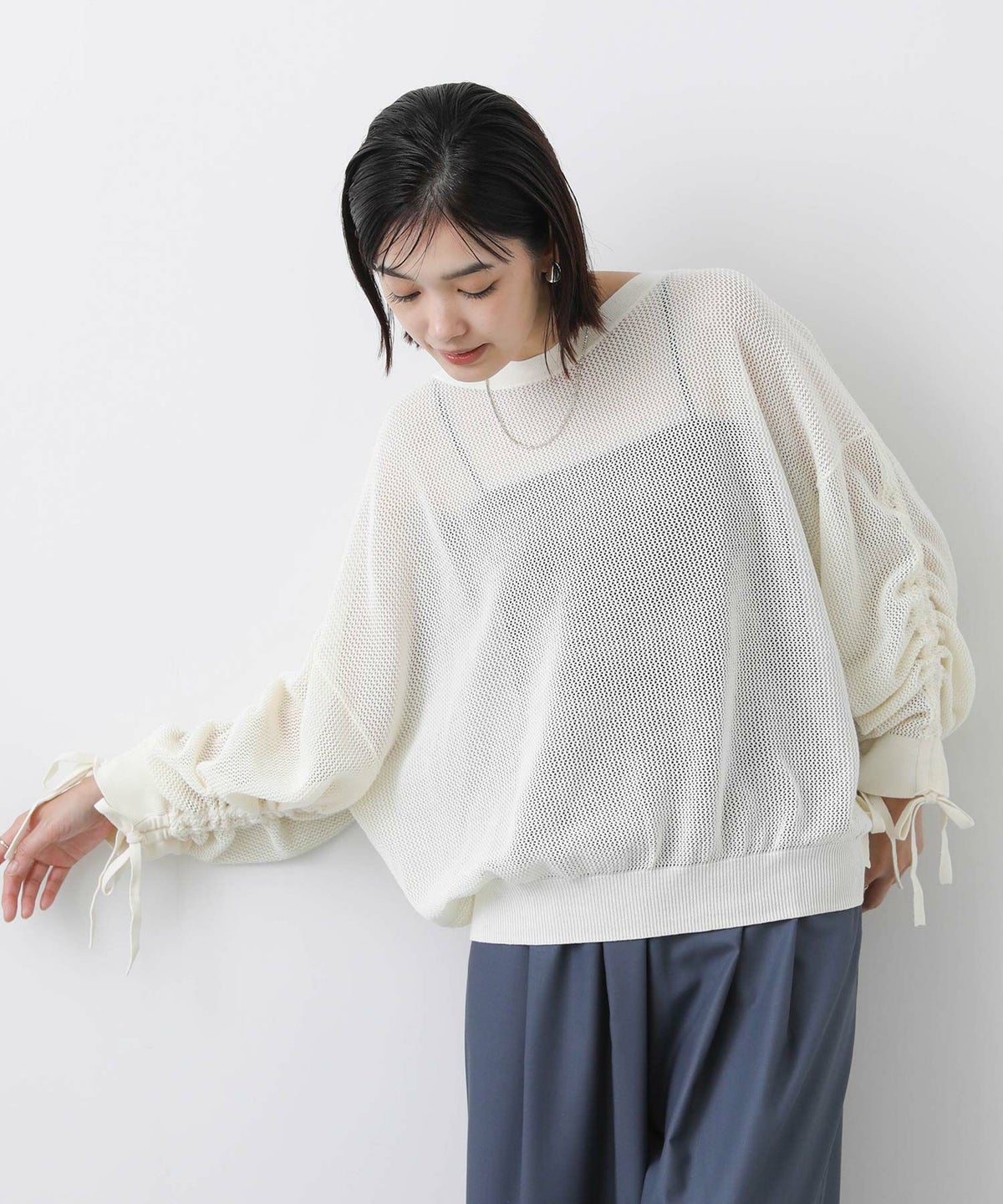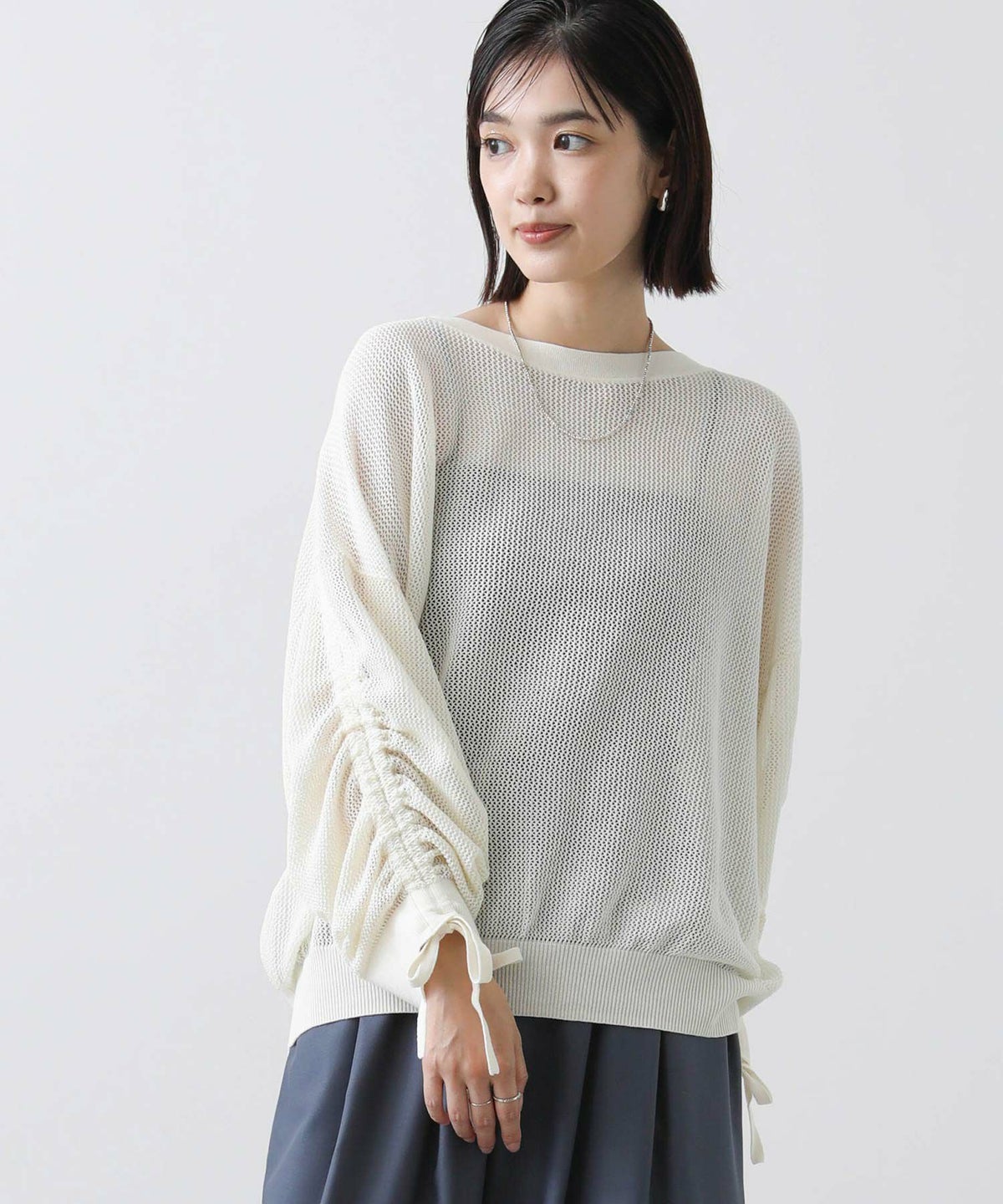 他の画像を見る 2点10%OFFクーポン対象 The rejoice【2026年4月ファミリーセール対象商品】袖シャーリングメッシュニット 定価 ¥ 16,500 のところ ¥ 8,470 税込 販売開始前です。 販売期間 2026/04/02 18:50 〜 カートに入れる お気に入りに登録する MORE