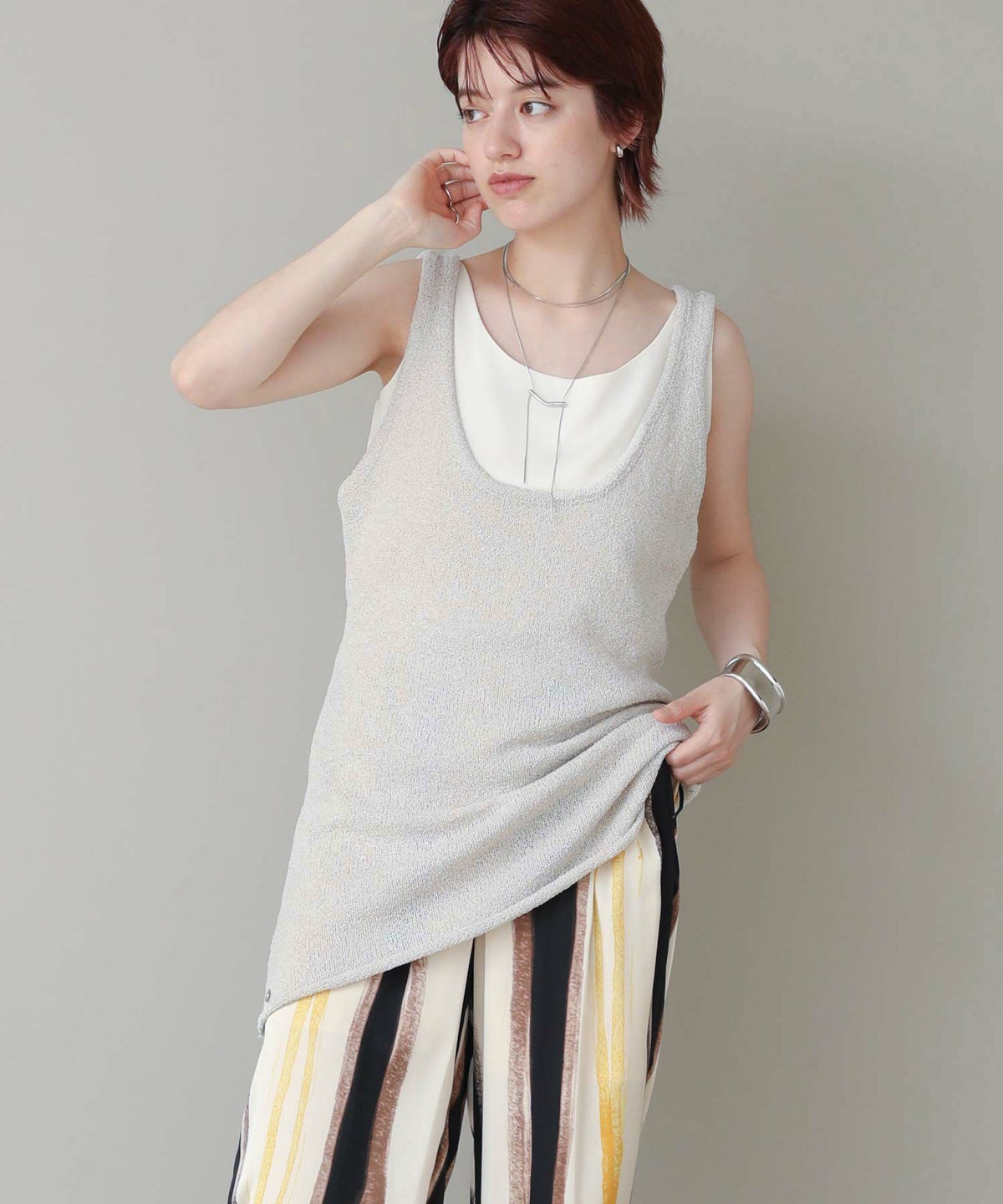 他の画像を見る 2点10%OFFクーポン対象 Gready Brilliant【2026年4月ファミリーセール対象商品】ギマF片畦ノースリーブニット 定価 ¥ 15,180 のところ ¥ 8,349 税込 販売開始前です。 販売期間 2026/04/02 18:50 〜 カートに入れる お気に入りに登録する MORE