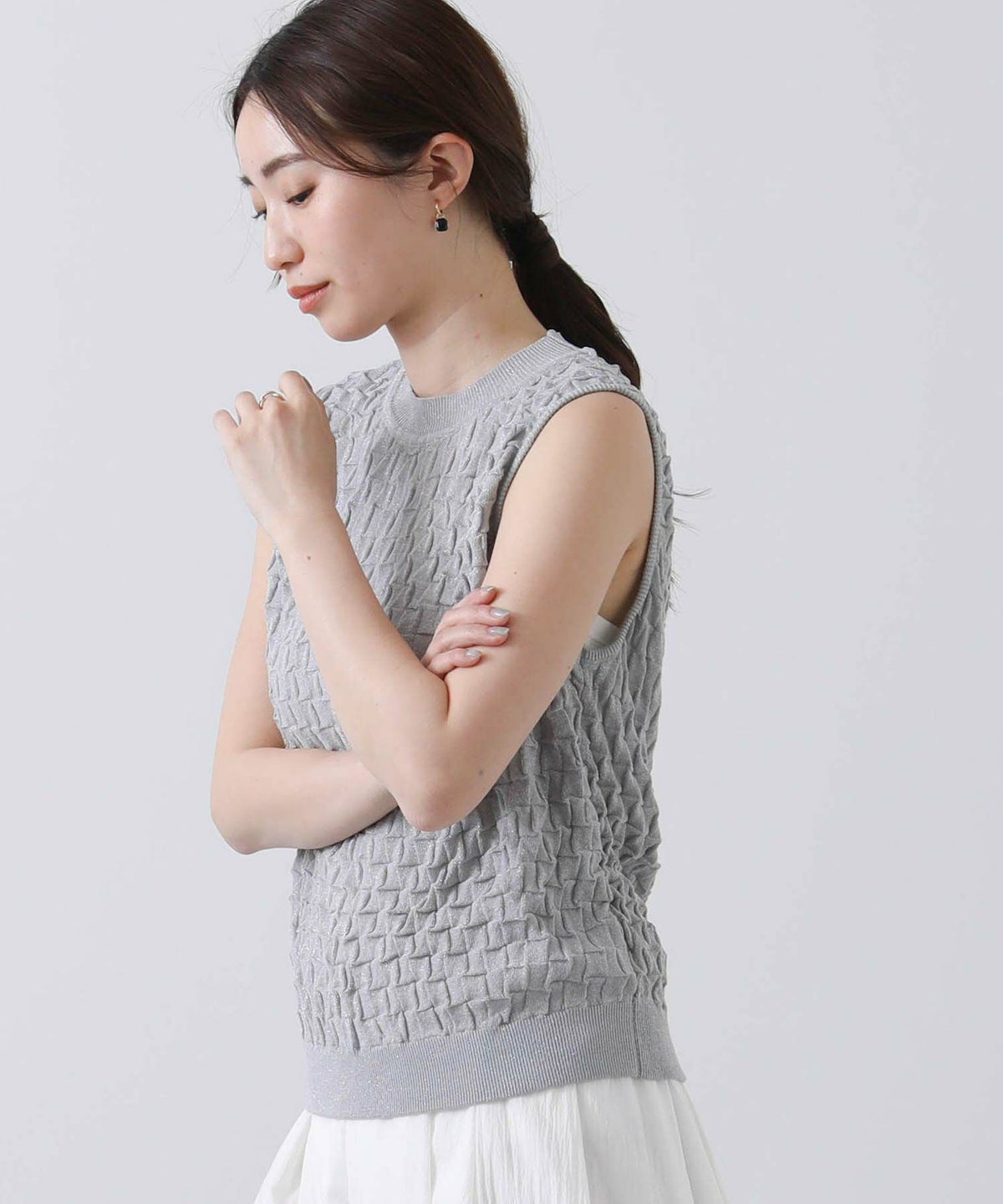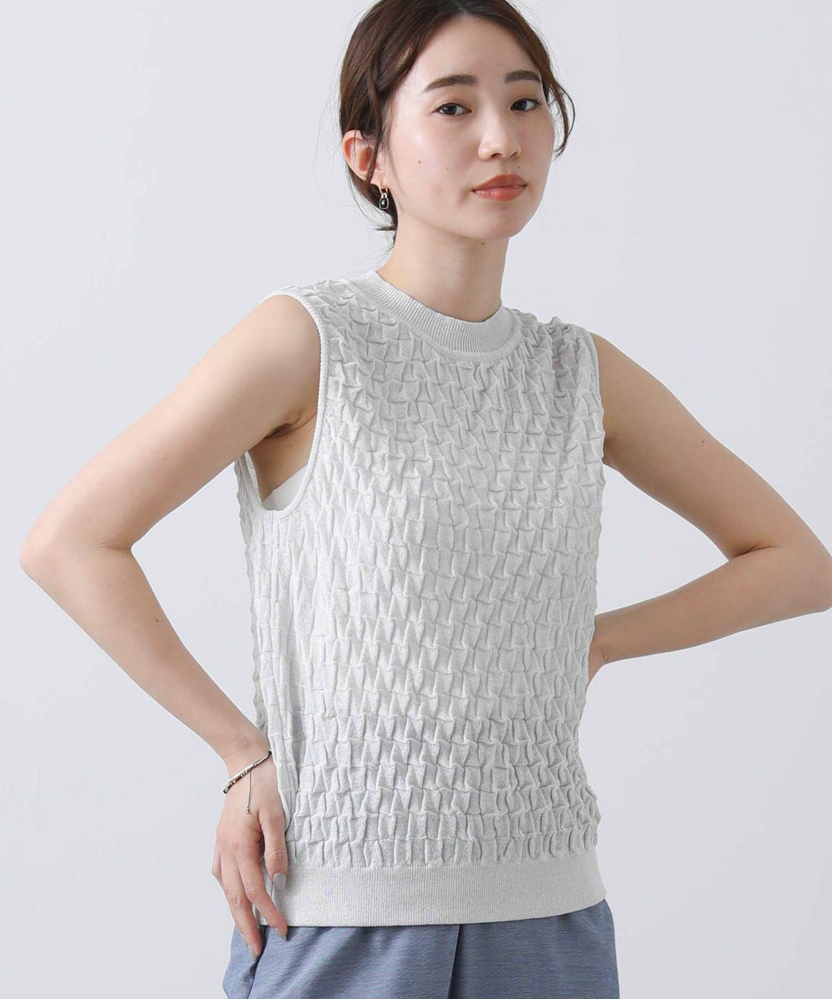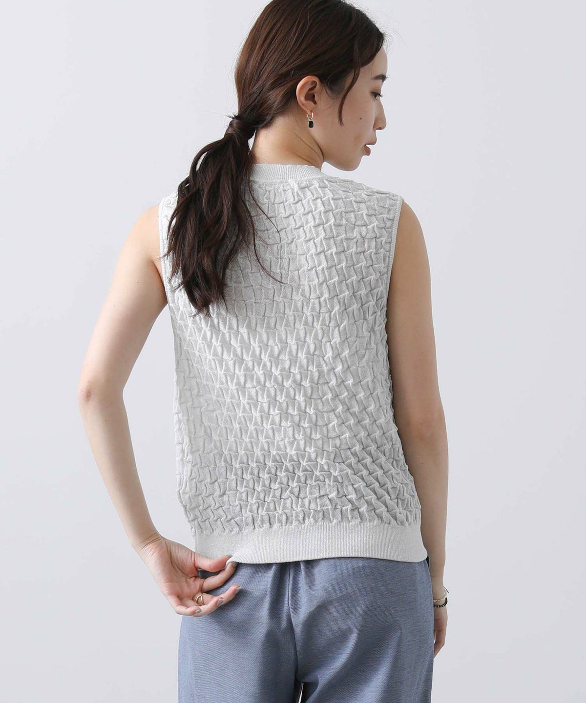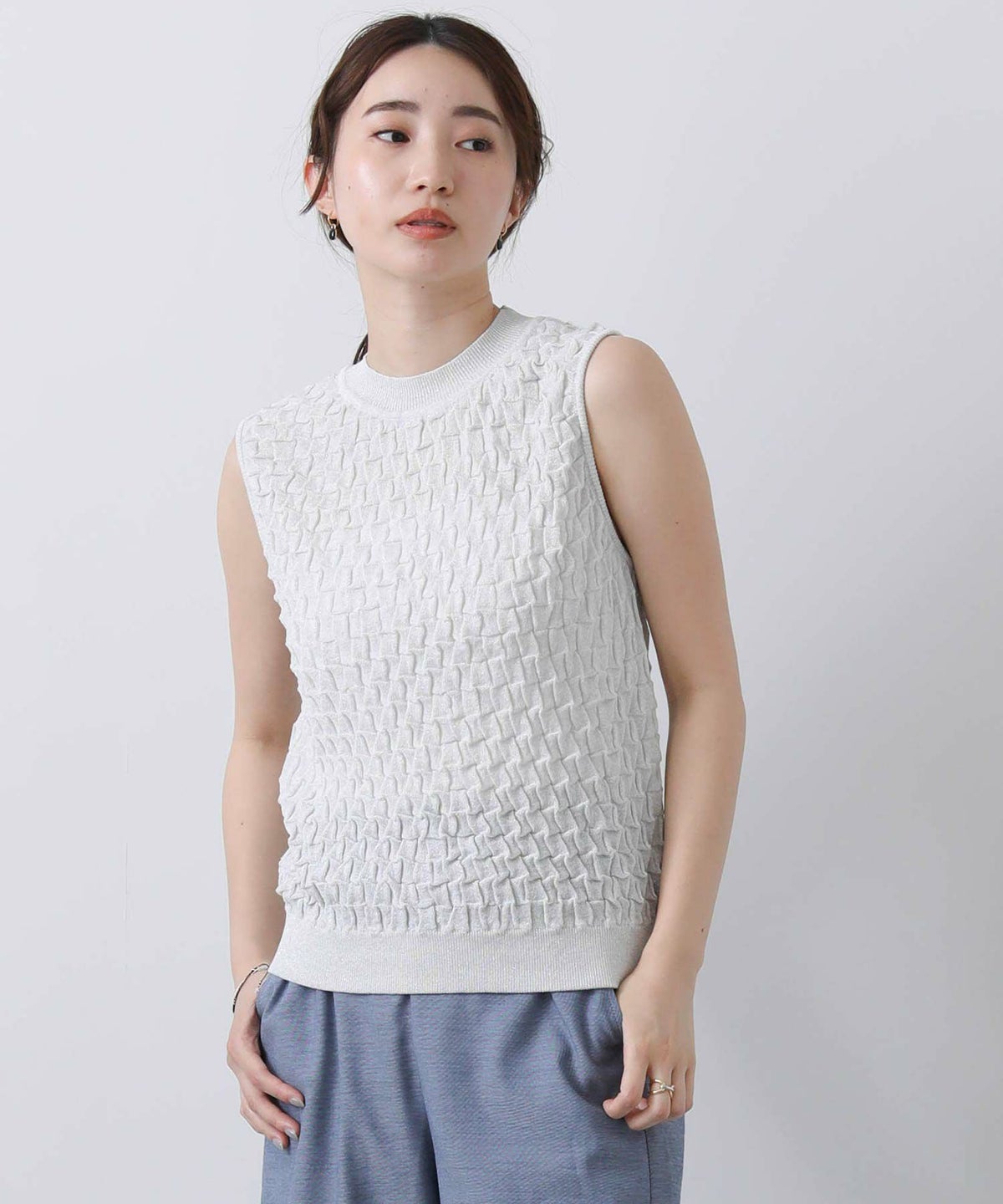 他の画像を見る 2点10%OFFクーポン対象 Gready Brilliant【2026年4月ファミリーセール対象商品】ラメポコポコ編みノースリーブニット 定価 ¥ 12,100 のところ ¥ 6,655 税込 販売開始前です。 販売期間 2026/04/02 18:50 〜 カートに入れる お気に入りに登録する MORE