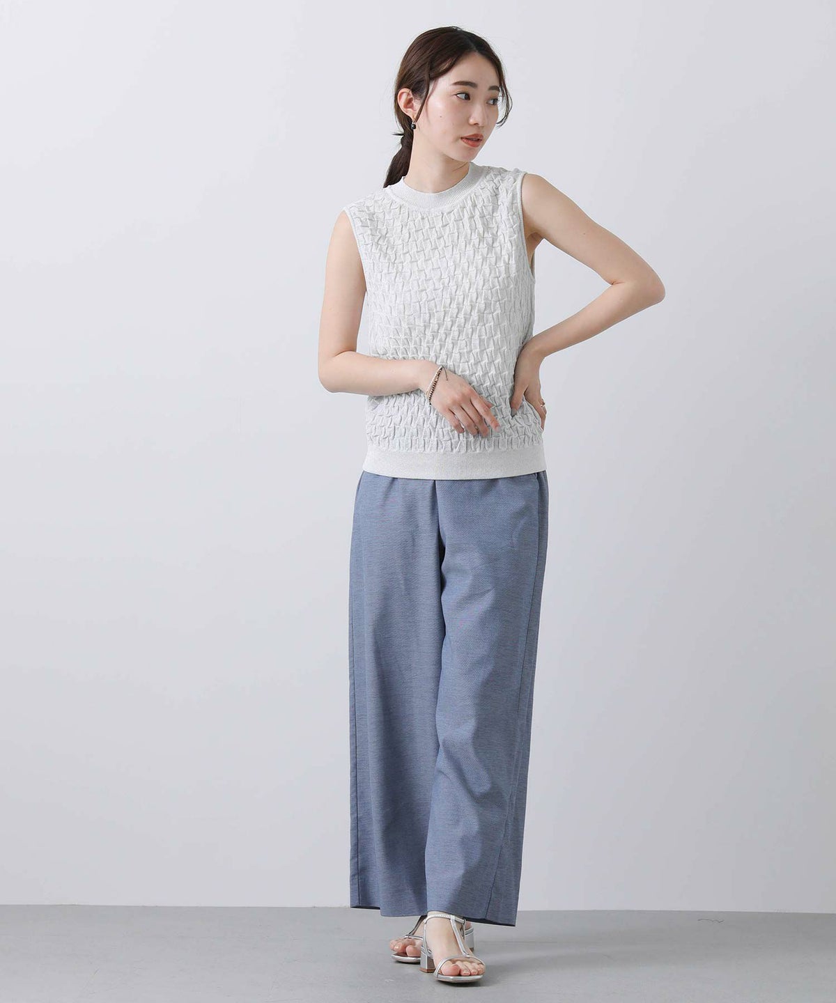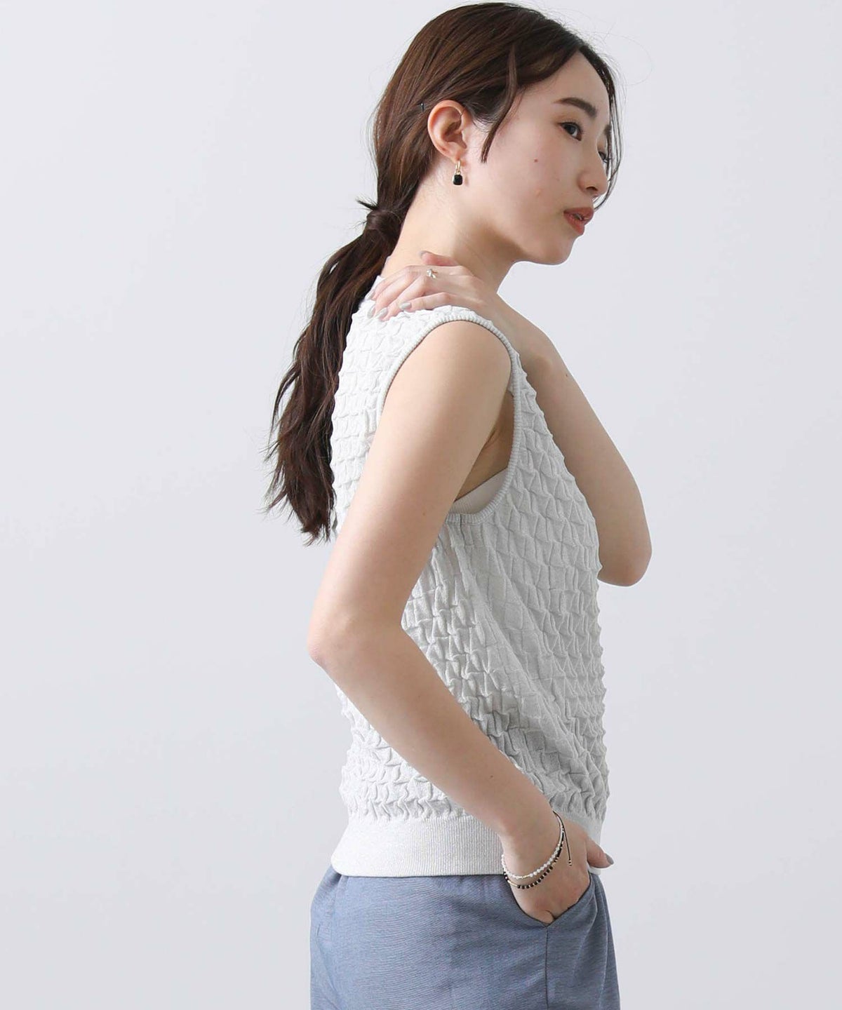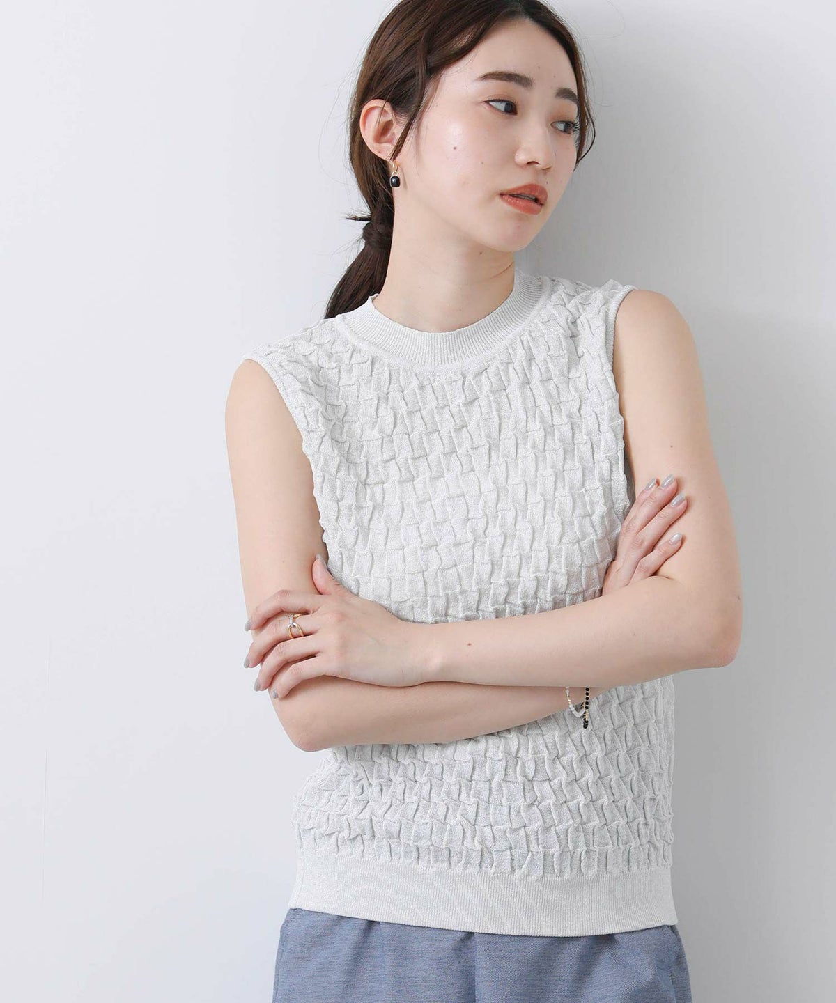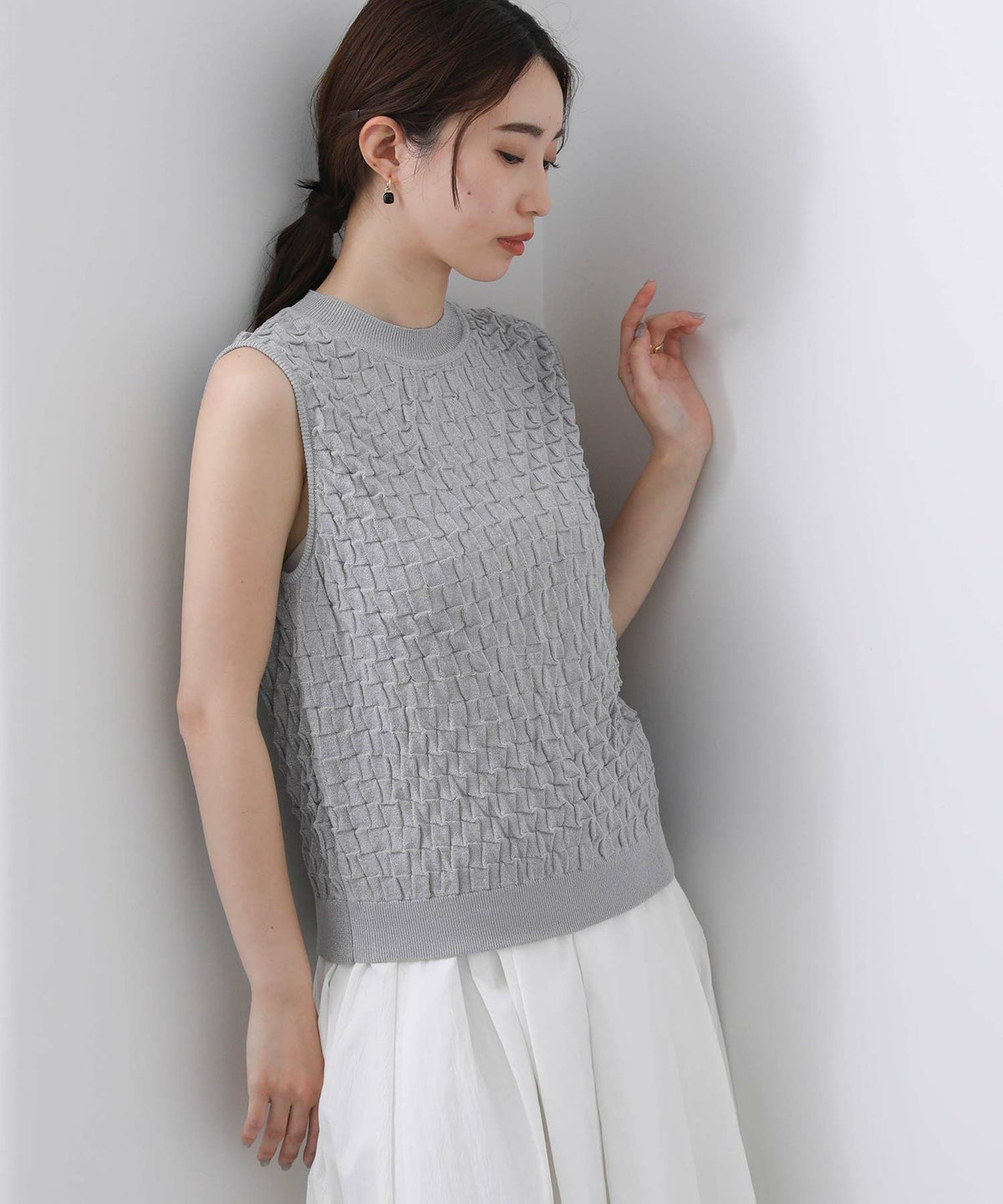 他の画像を見る 2点10%OFFクーポン対象 Gready Brilliant【2026年4月ファミリーセール対象商品】ラメポコポコ編みノースリーブニット 定価 ¥ 12,100 のところ ¥ 6,655 税込 販売開始前です。 販売期間 2026/04/02 18:50 〜 カートに入れる お気に入りに登録する MORE