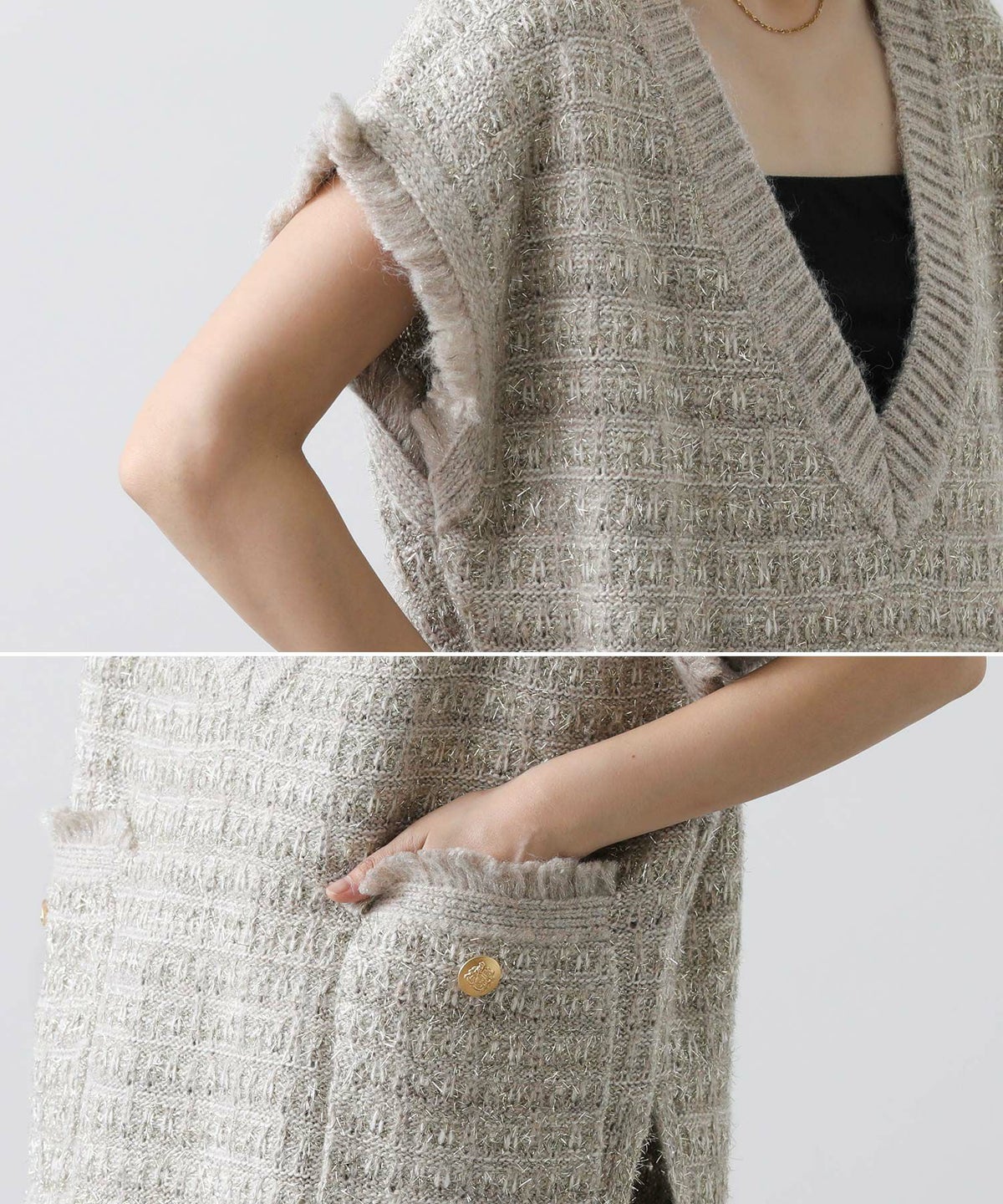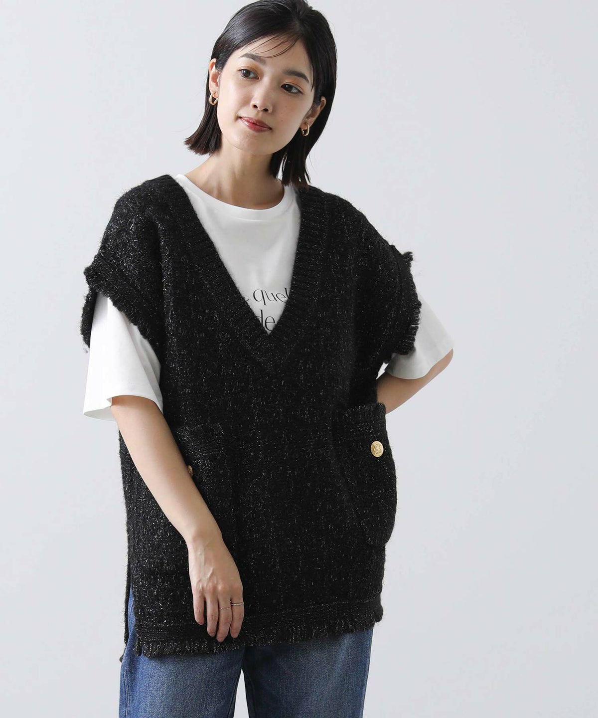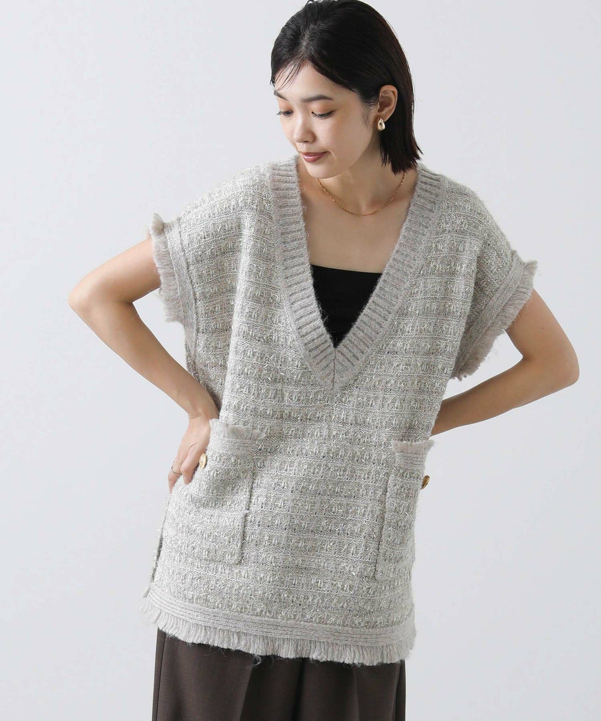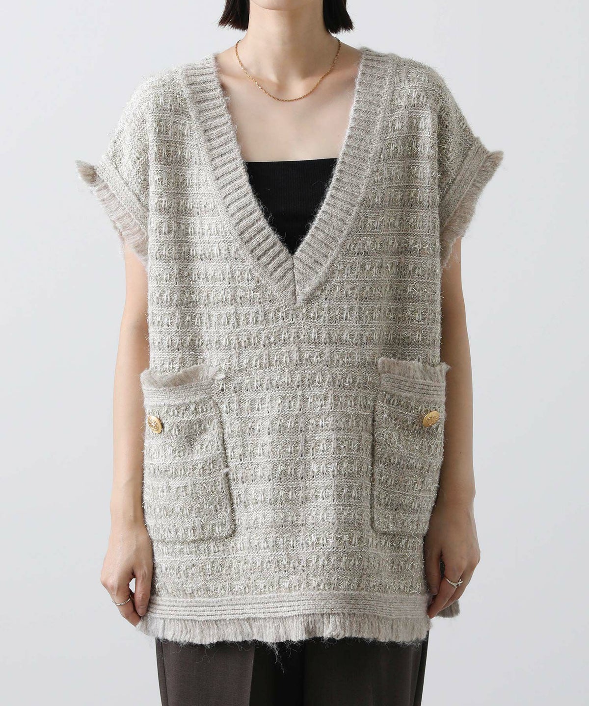 他の画像を見る 2点10%OFFクーポン対象 Gready Brilliant【2026年4月ファミリーセール対象商品】ツィードライクVベスト 定価 ¥ 14,080 のところ ¥ 8,360 税込 販売開始前です。 販売期間 2026/04/02 18:50 〜 カートに入れる お気に入りに登録する MORE