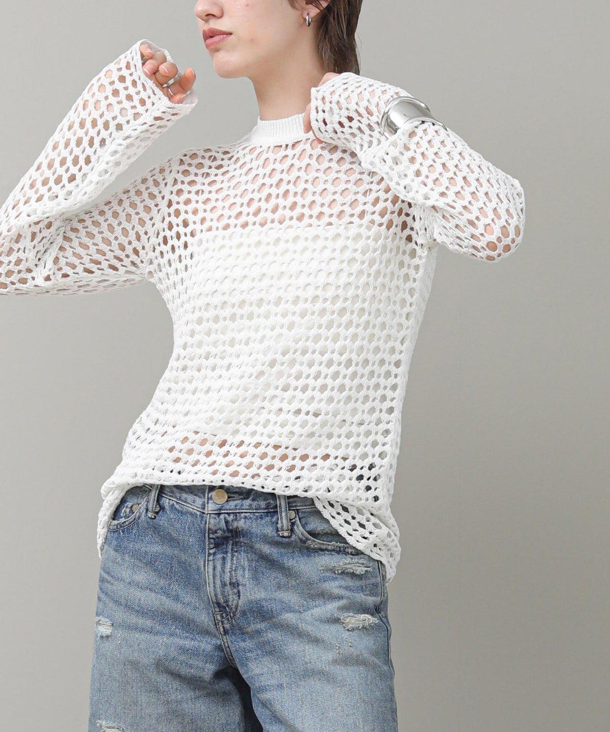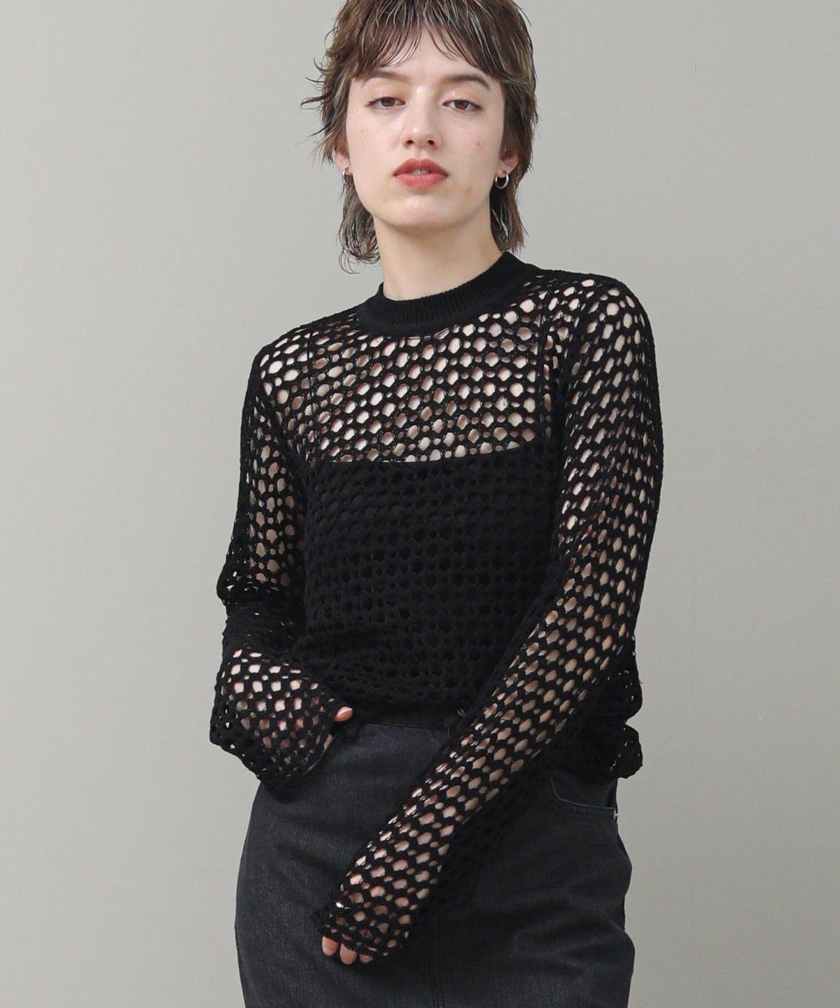 【予約で10%OFF】シアーメッシュVネックカーディガン