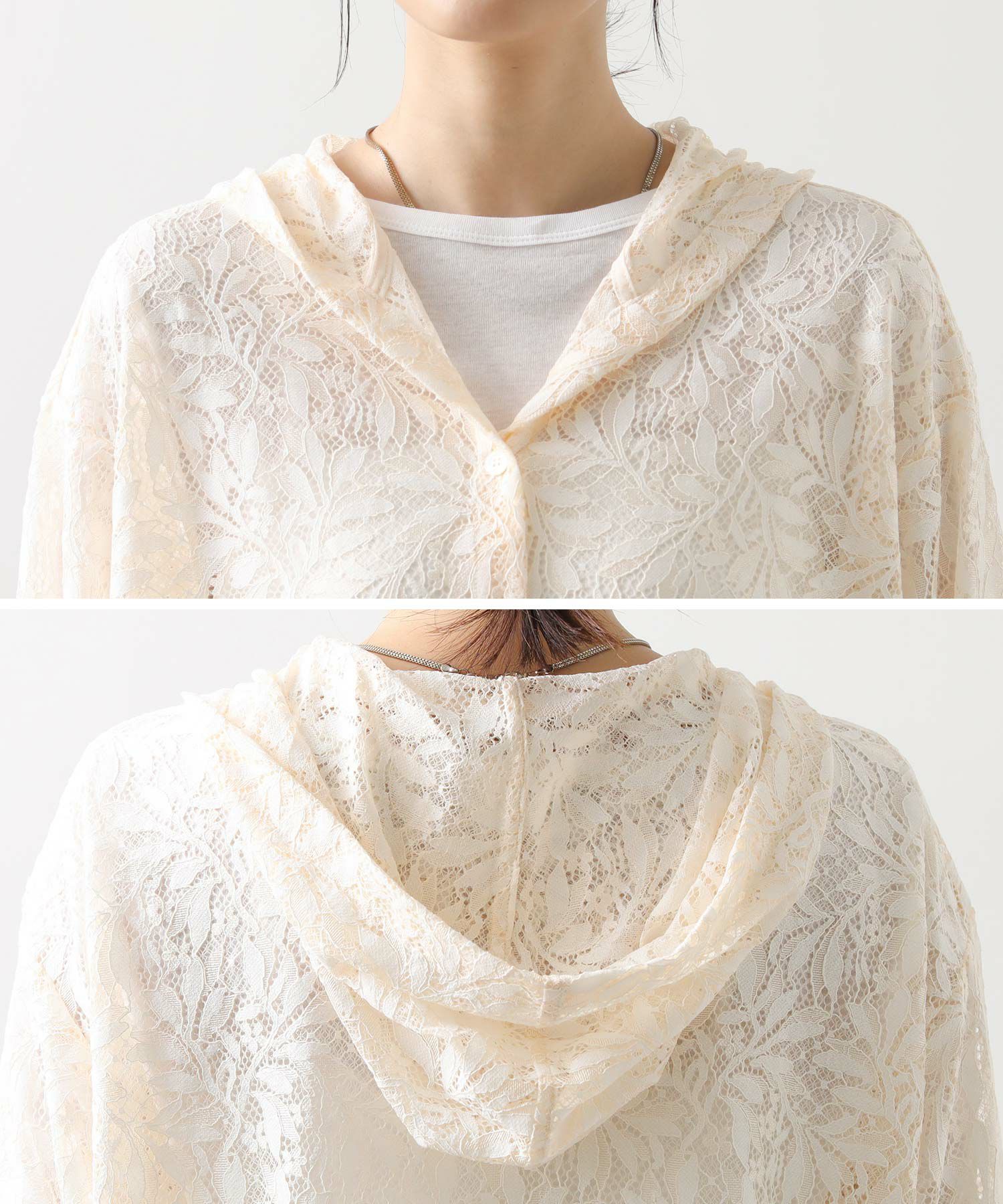 繊細なレース素材が大人の余裕を引き立てる、上品なフーディが登場。
