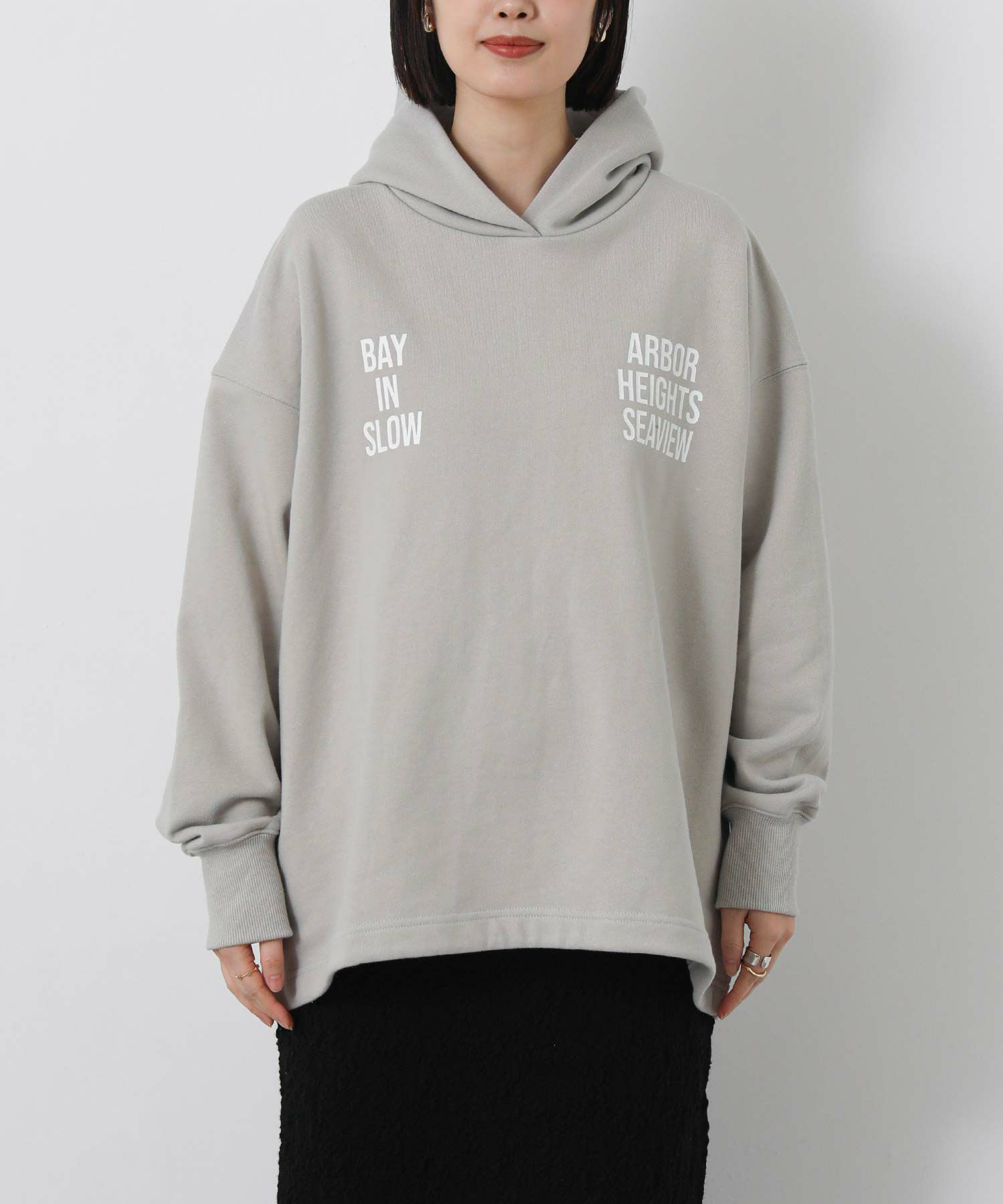 ロゴのインパクトが印象的なフーディー。