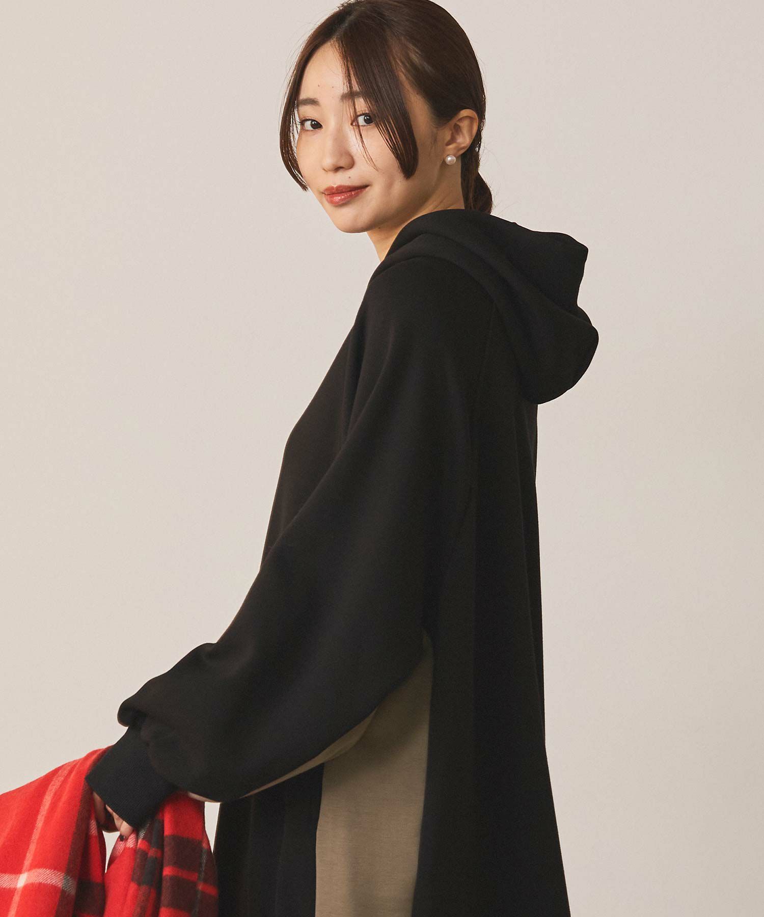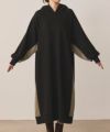 サイドラインから袖下のバイカラーがポイントのフーディワンピース。