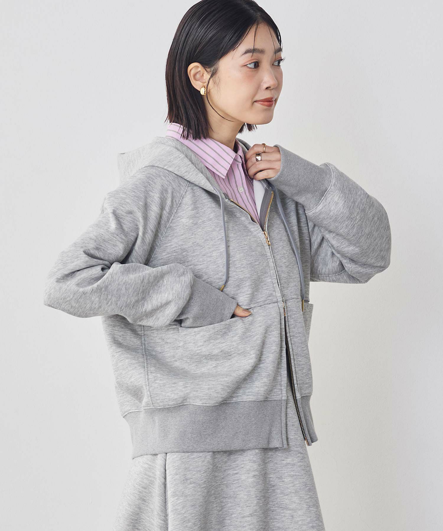 癖がなく誰にでも似合うパーカーを意識し、カジュアルながらも綺麗に見え、大人の女性にマッチするようこだわりました。