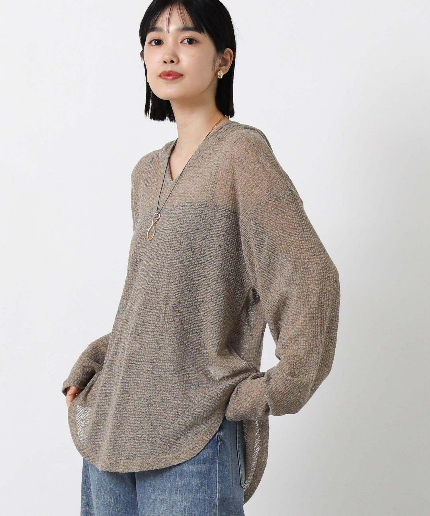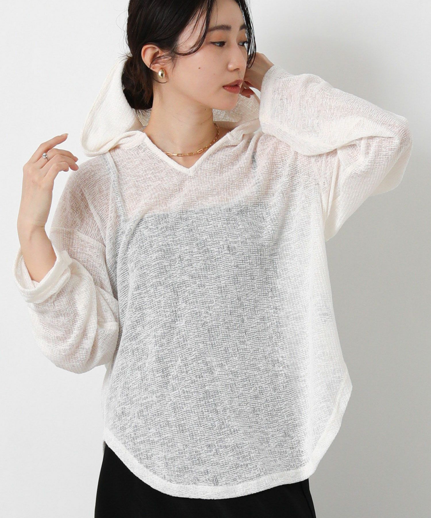 【CHIGNON/シニヨン】から、レイヤードスタイルが楽しめるシアーフーディートップスをセレクト。
