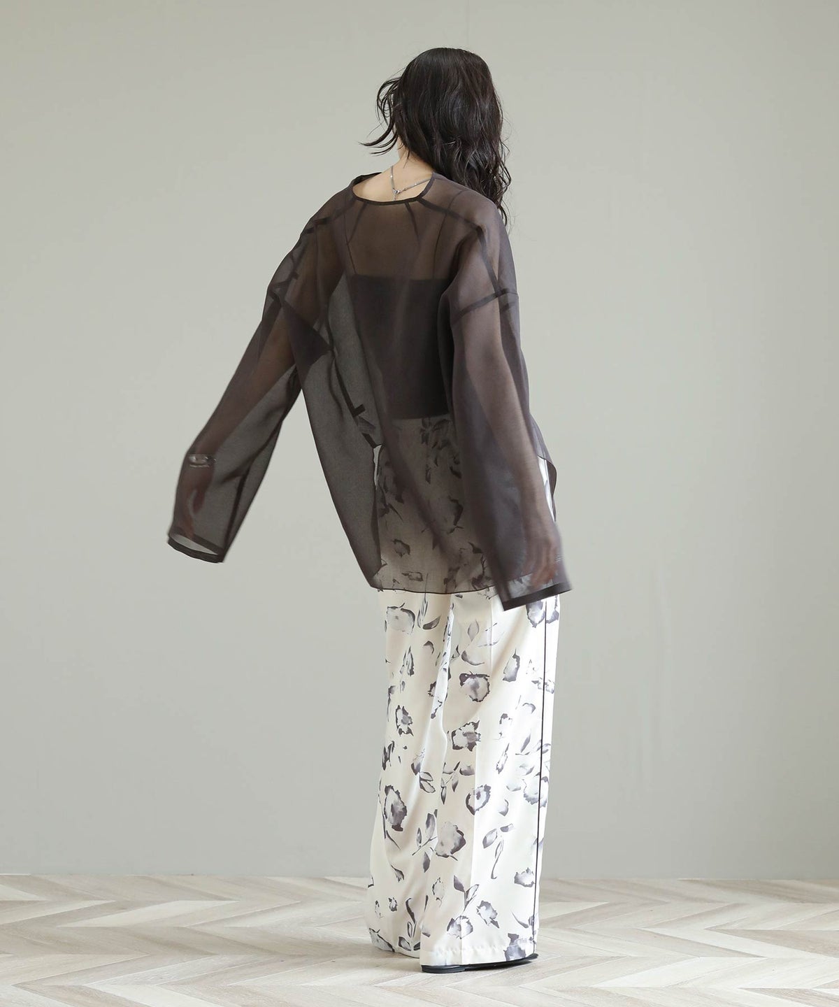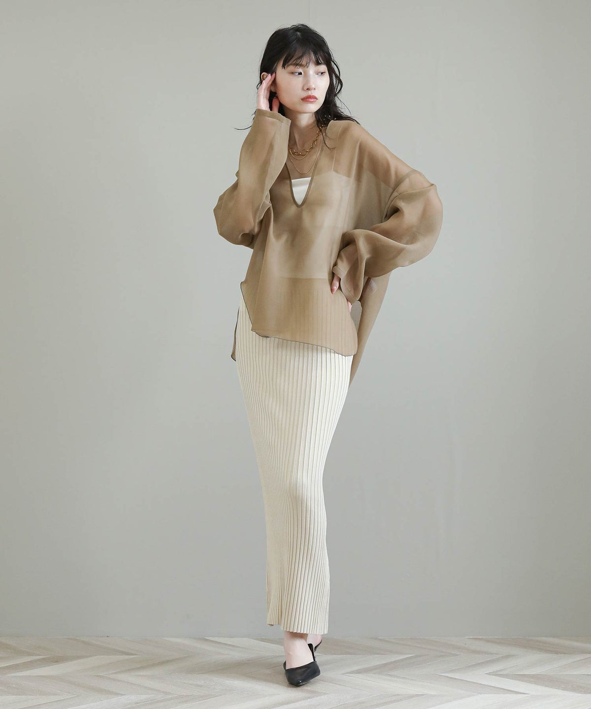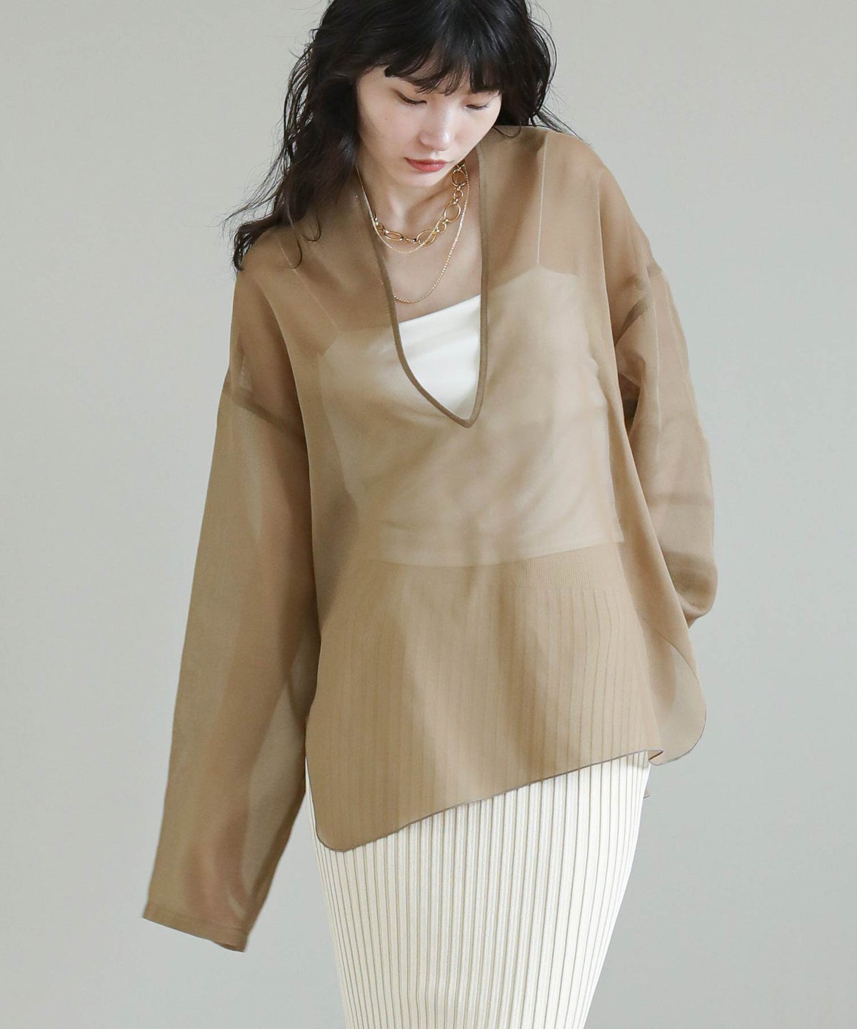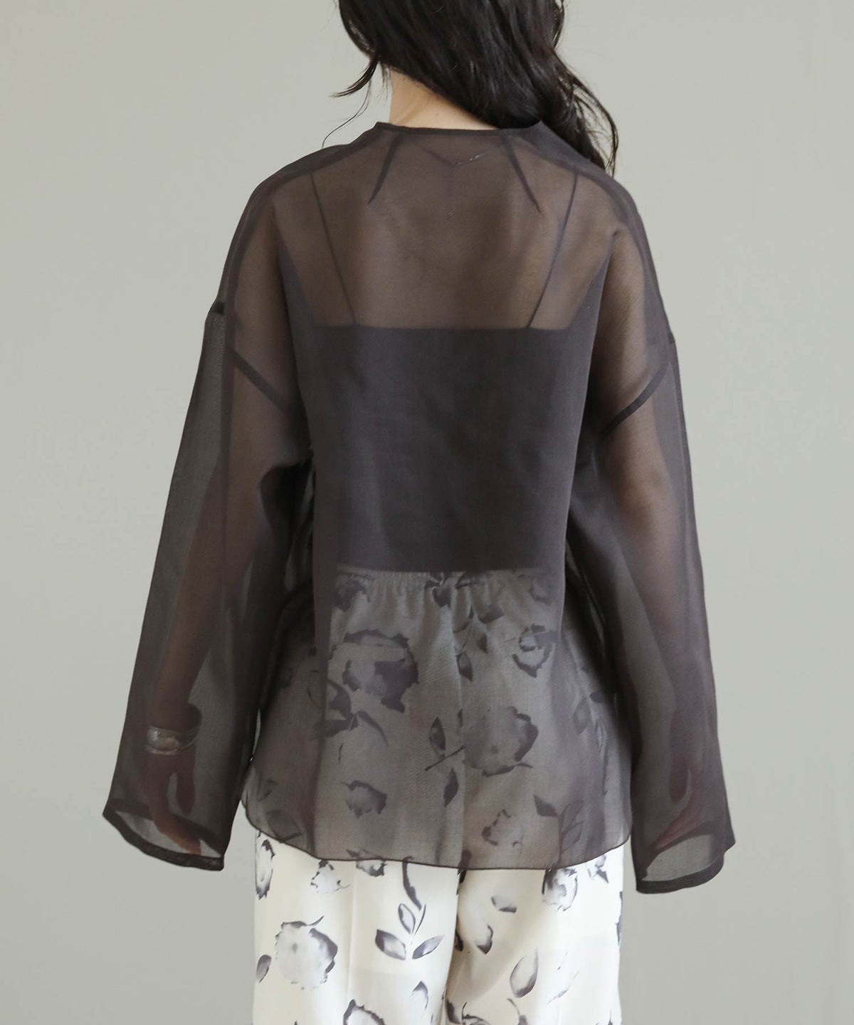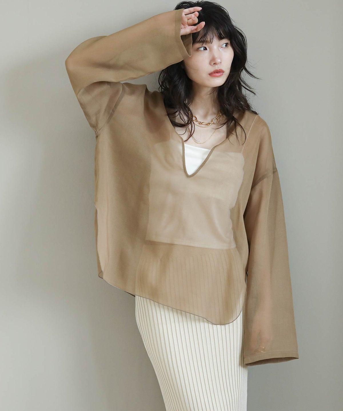 シアー天竺衿付きパフスリーブカットソーブラウス