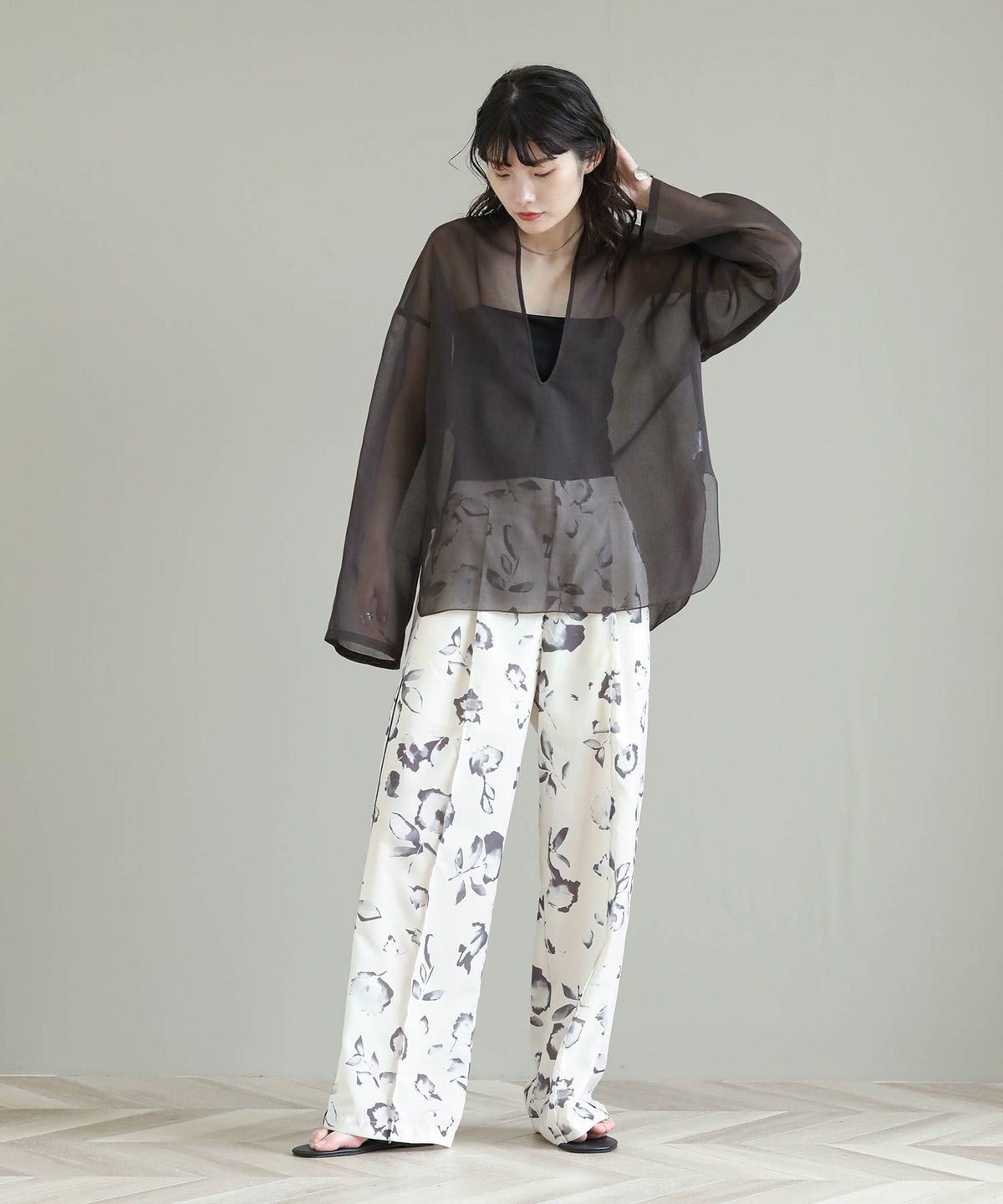 【予約で10%OFF】チュール刺繍2wayフレンチスリーブブラウス