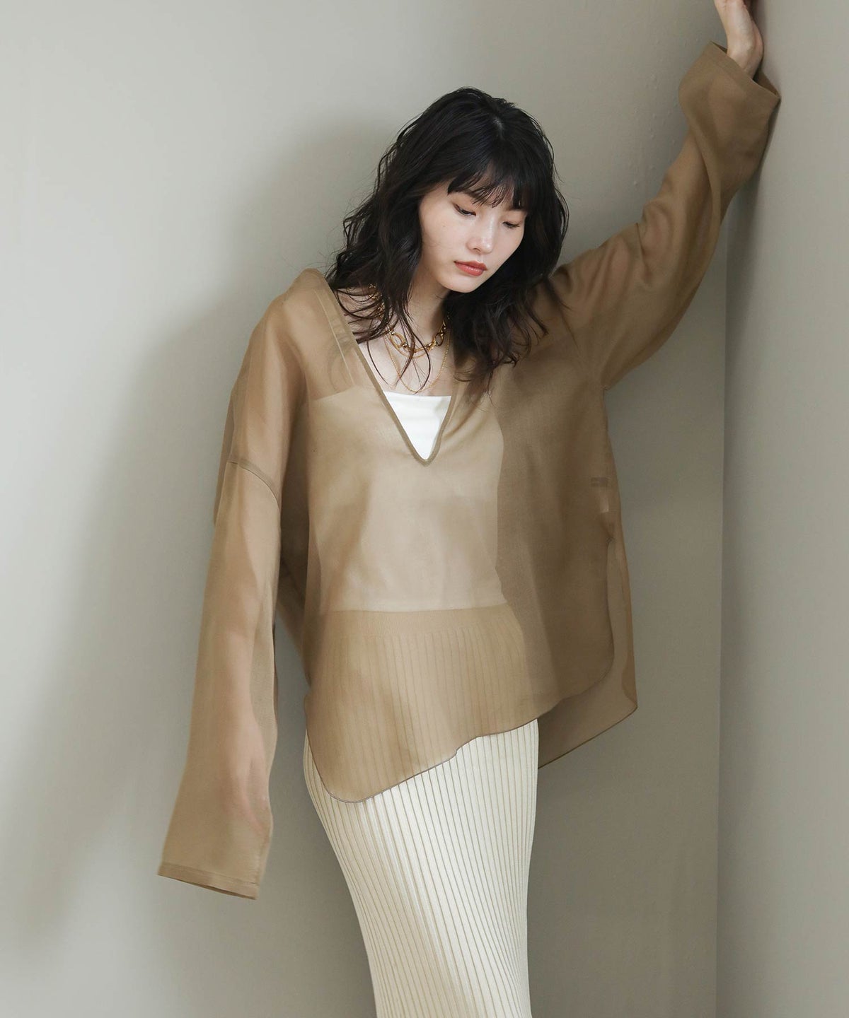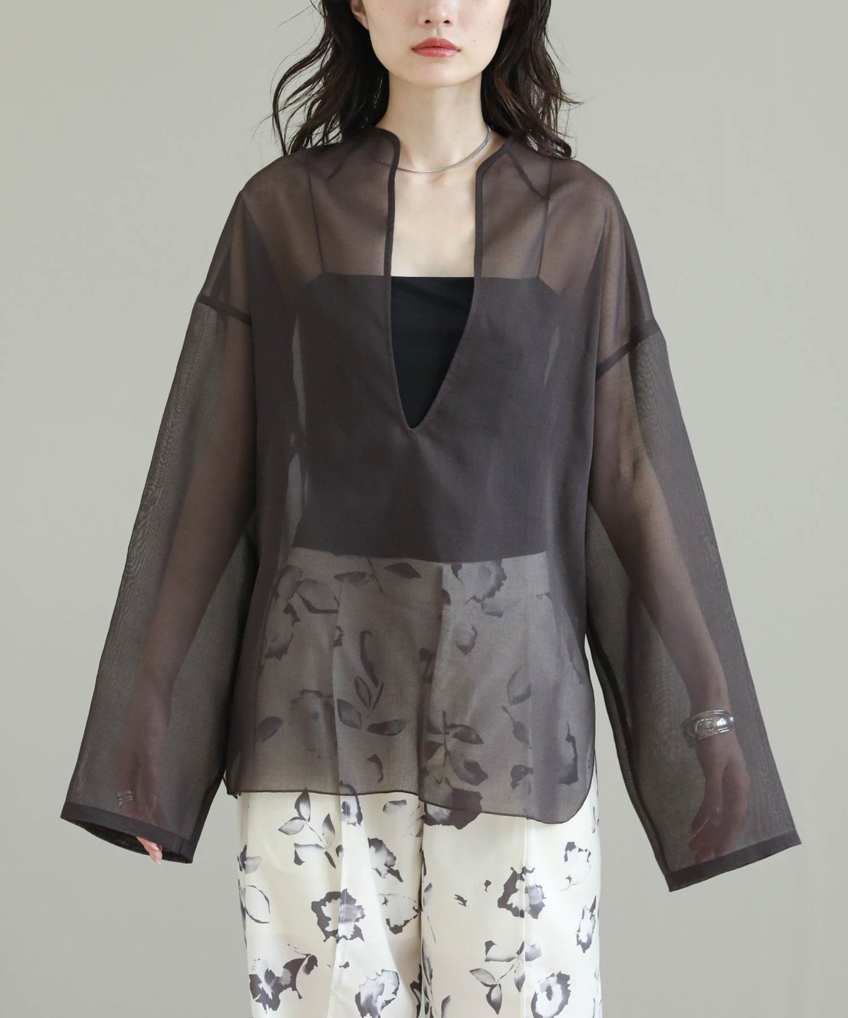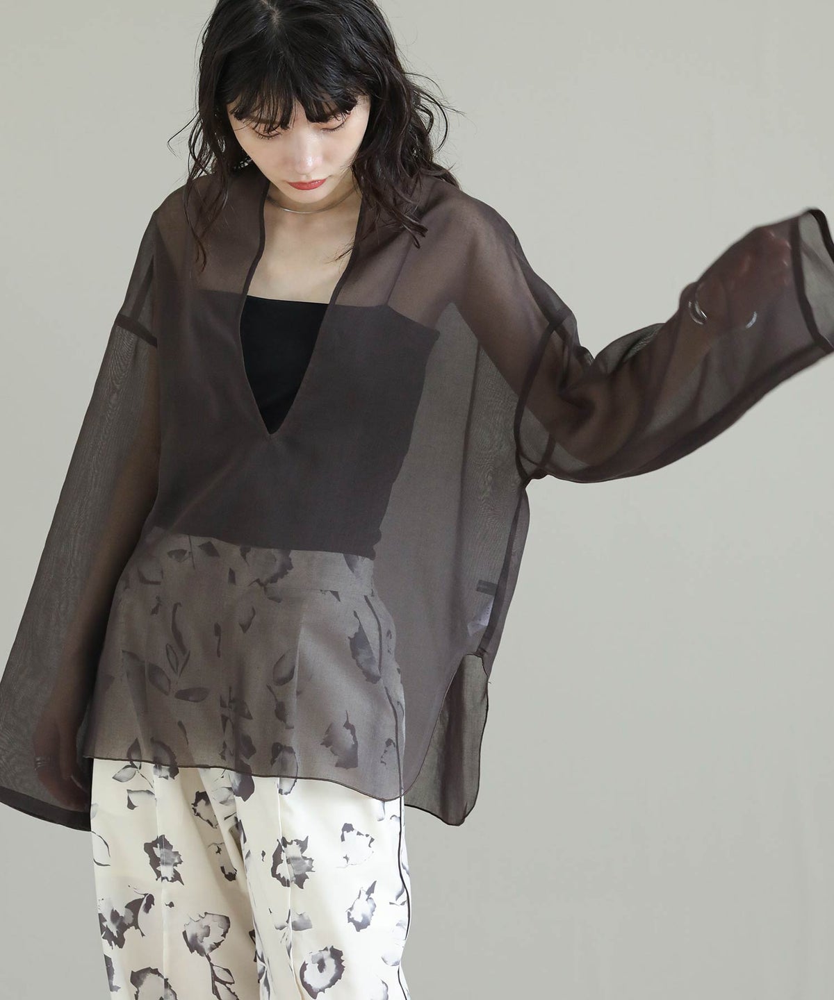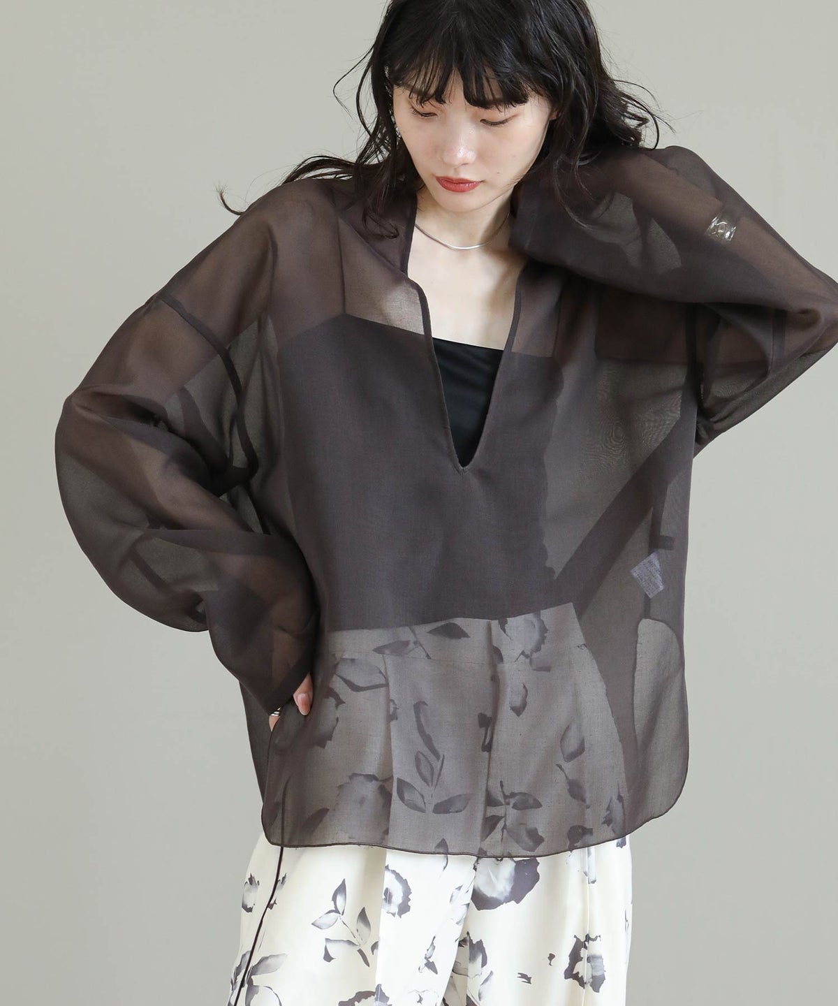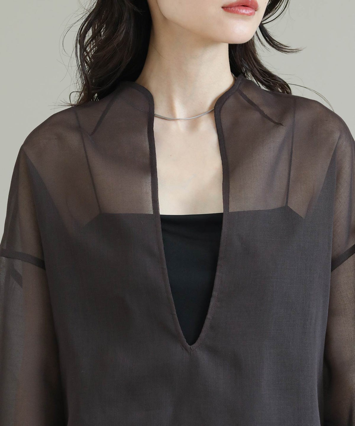 【予約で10%OFF】綿混スキッパーワイドブラウス