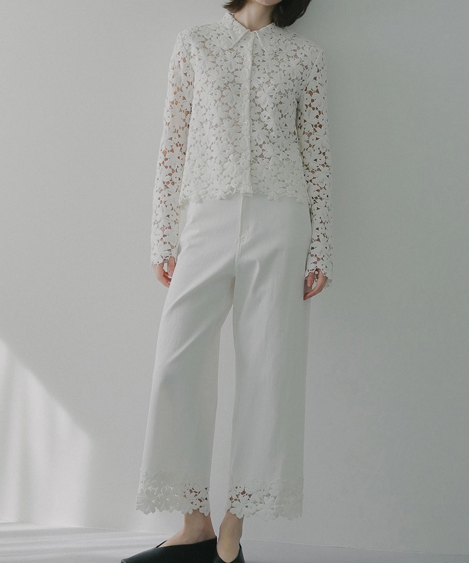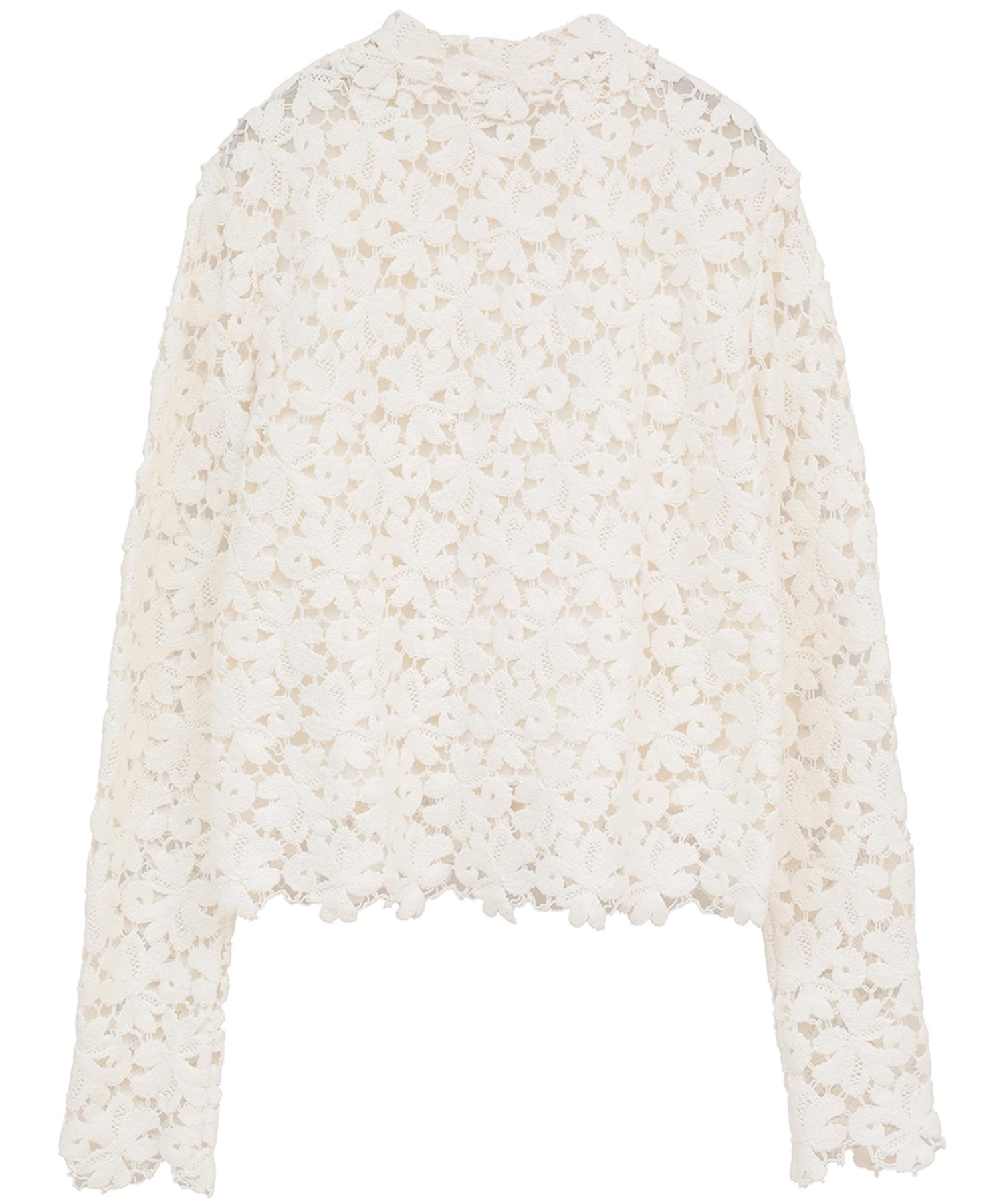 繊細なコットンレースを贅沢に使用したショート丈ブラウス。