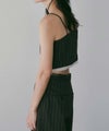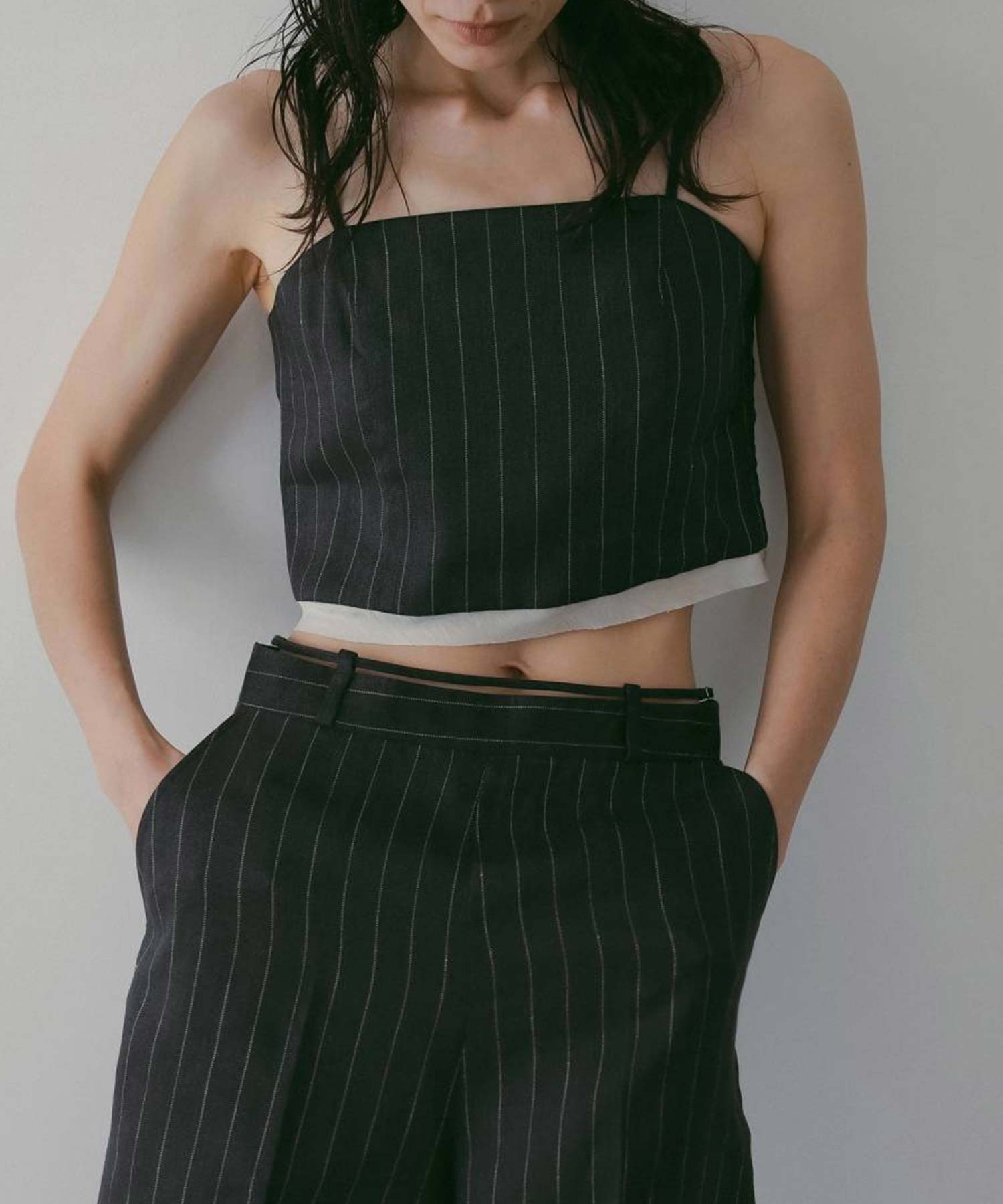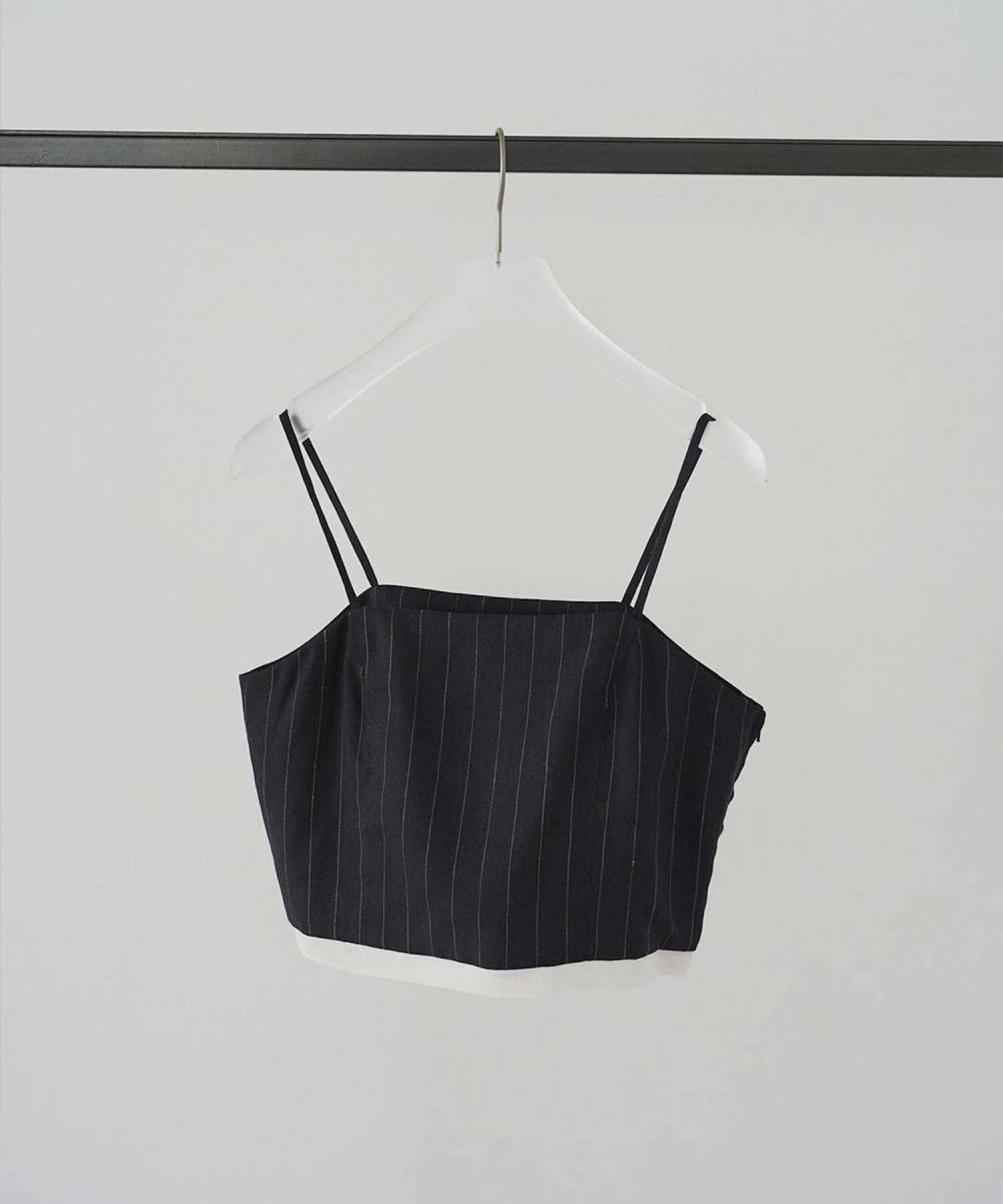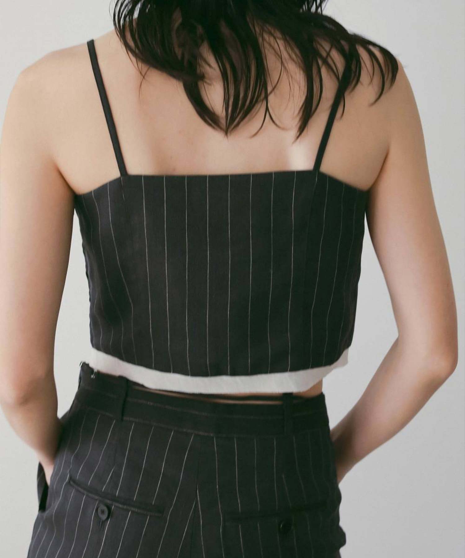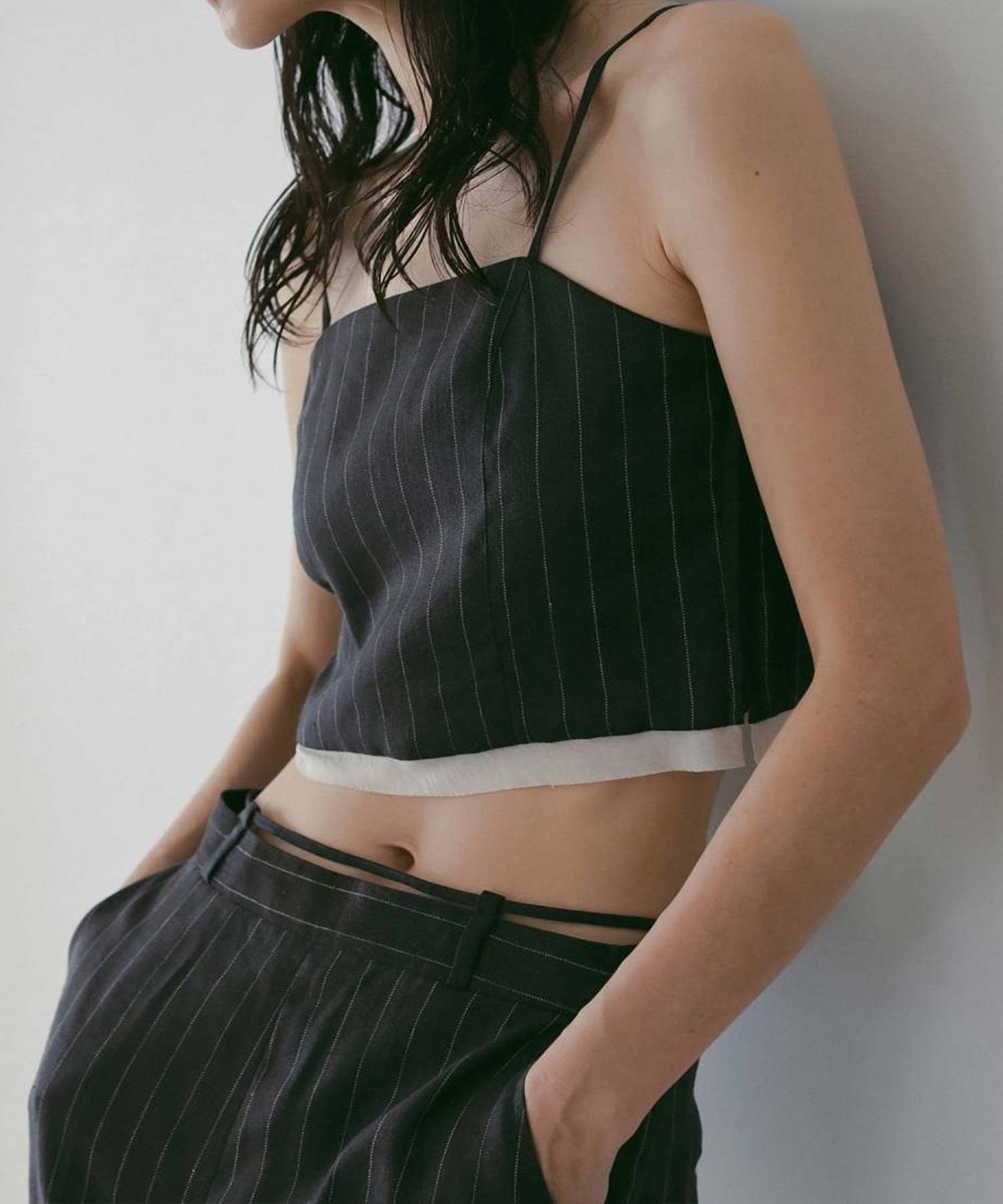 リネン素材を使用したキャミソール。オリジナルで織り上げた薄手のリネン素材です。裾の別布使いがポイントになり、一枚で着てもスタイリングに映えます。タンクトップやTシャツとレイヤードしたり、同素材のパンツやジャケットとセットアップで着ていただくのもおすすめです。