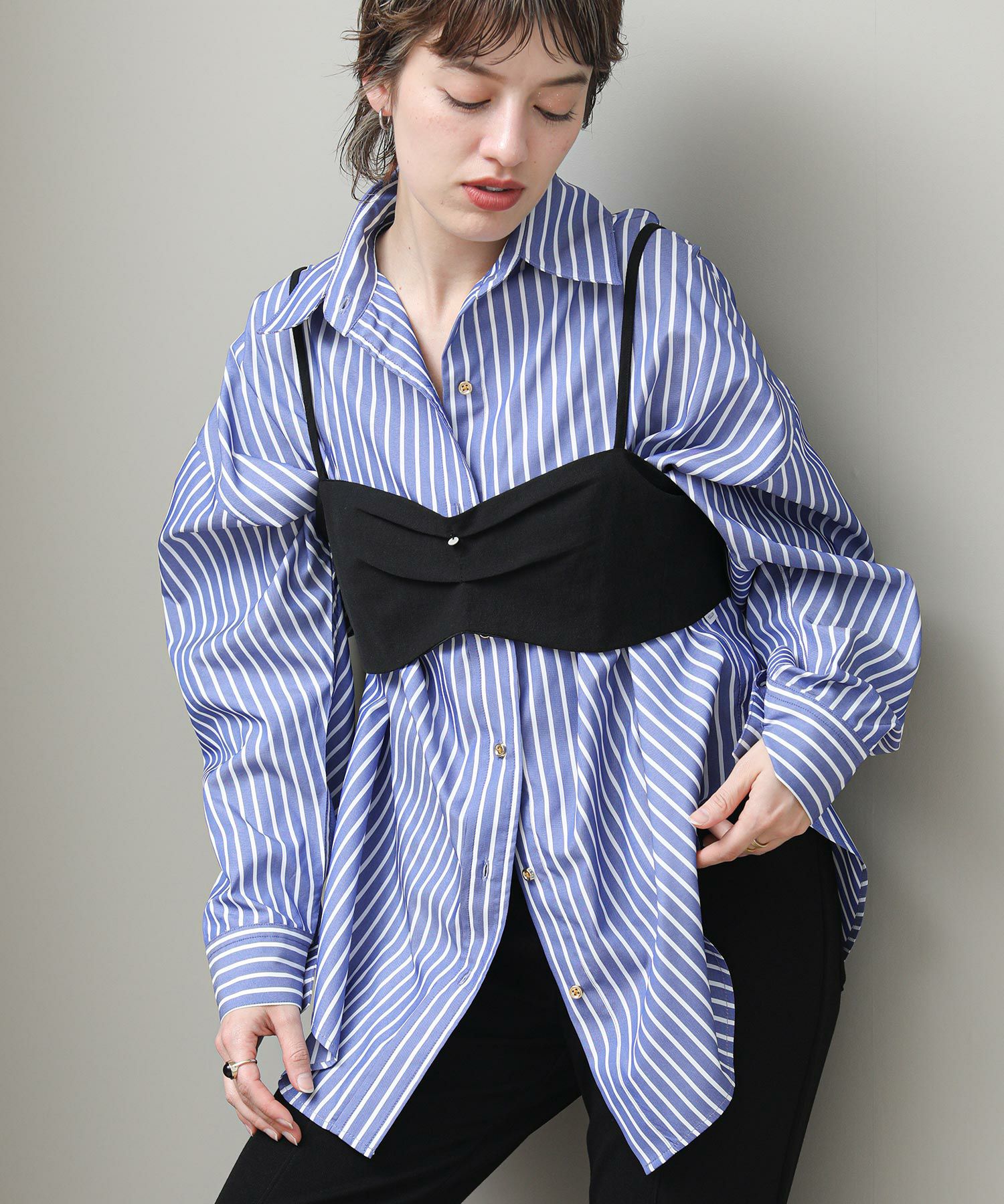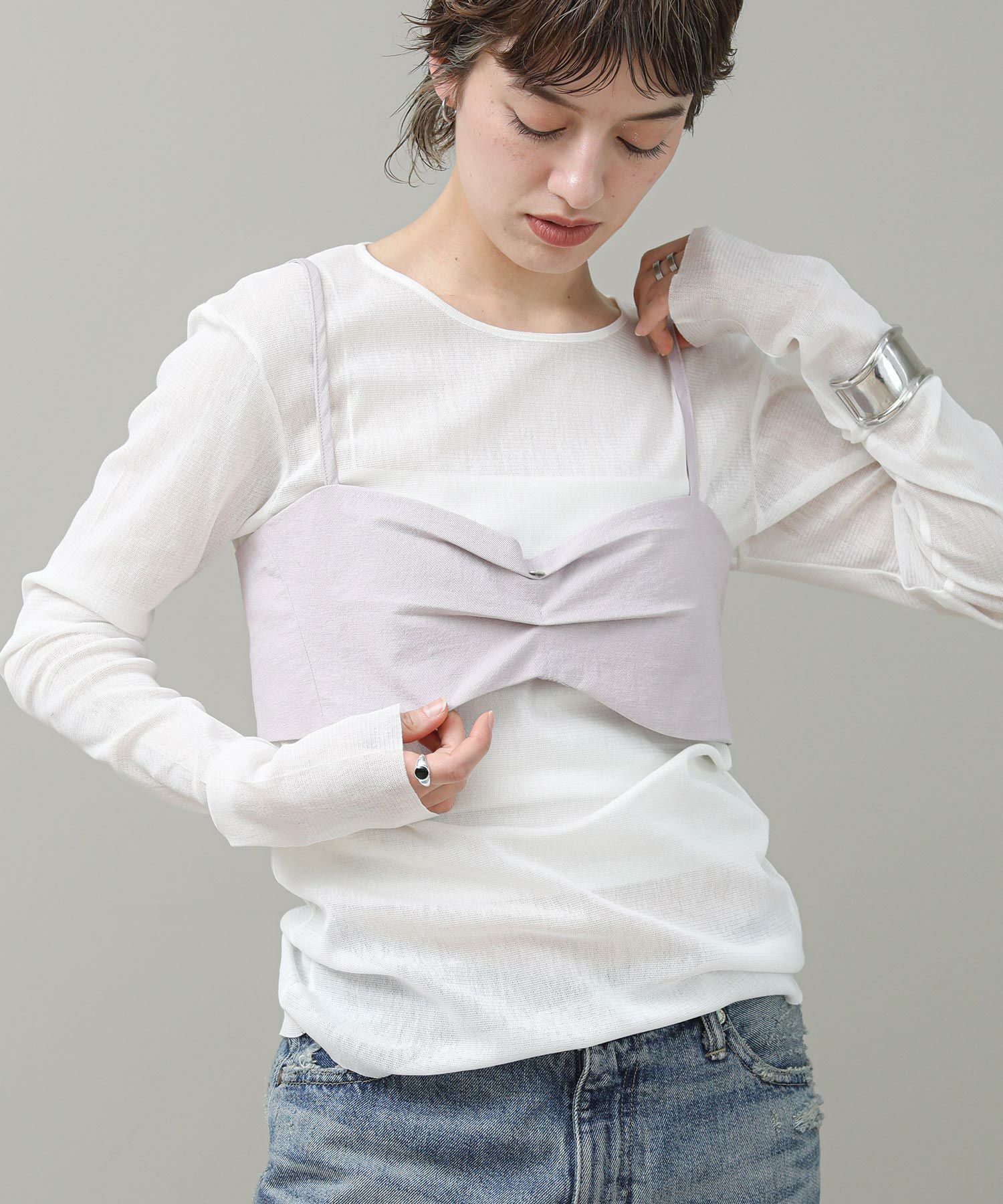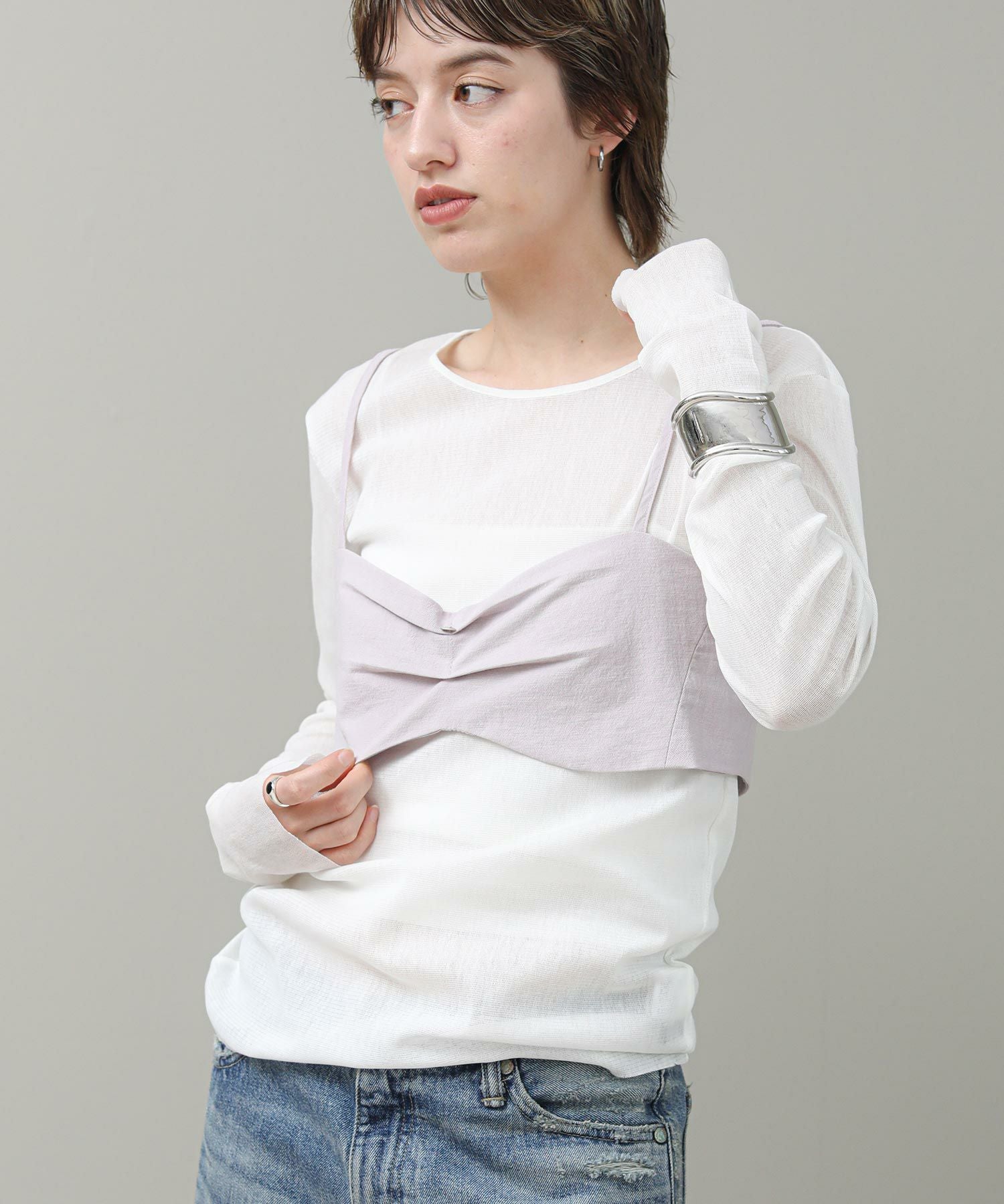 トレンド感のあるブラ型ビスチェ。