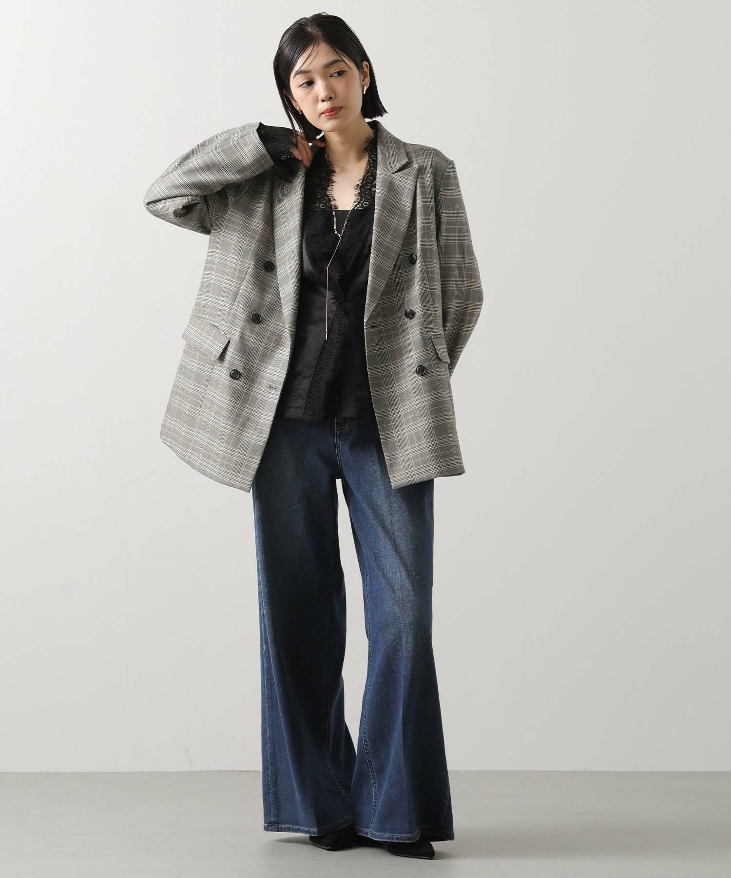 ※着用画像は撮影状況、光の当たり具合で色みが違って見える場合がございます。実際の色みについては、画像一覧の最後に掲載している詳細画像をご参照ください。