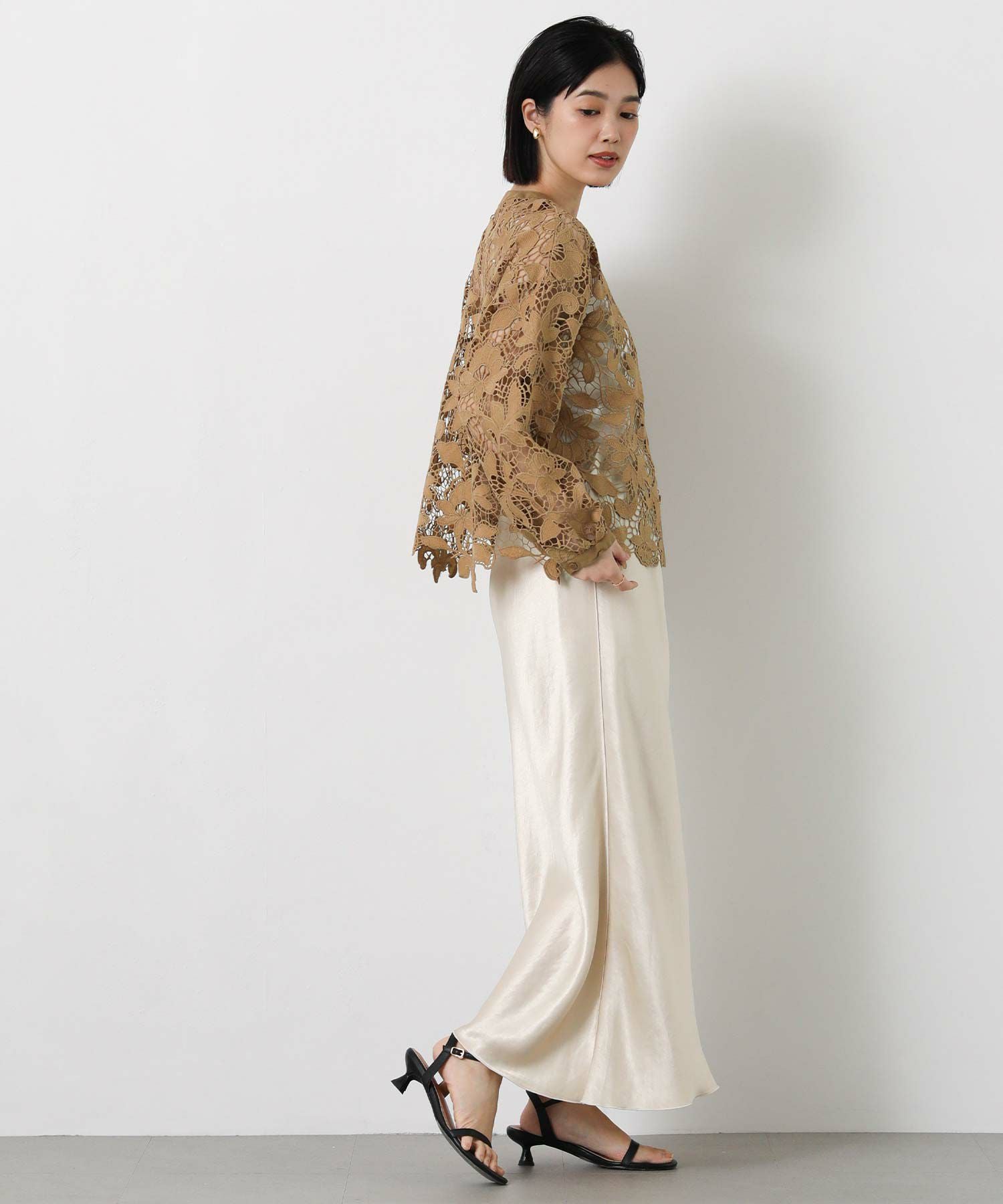 存在感のあるレース素材がコーディネートに華やかさをプラス。