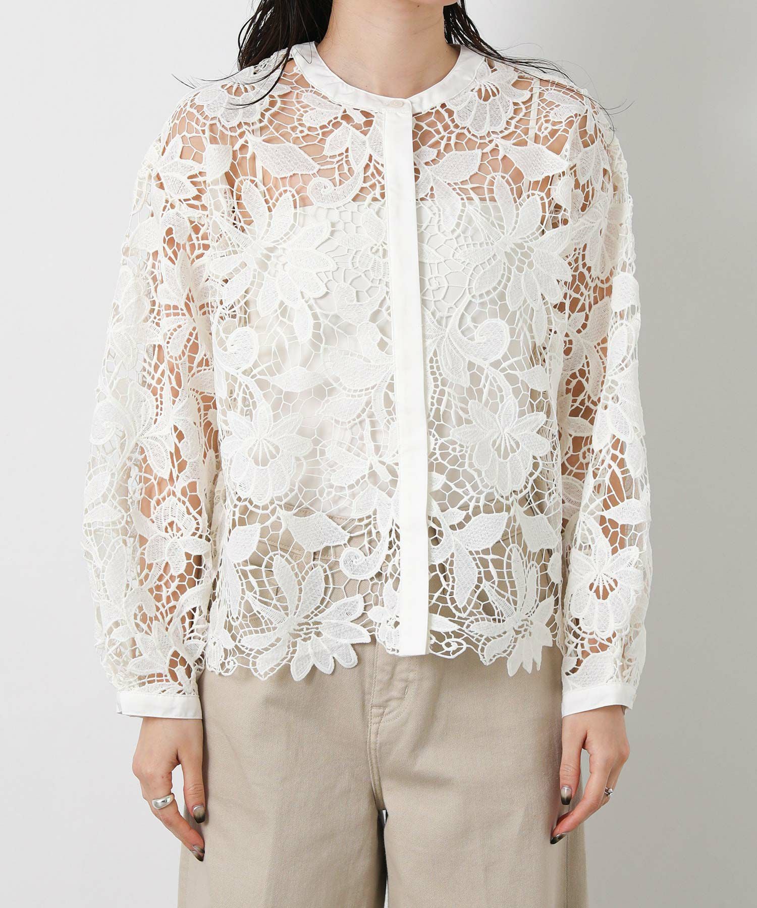 大ぶりのボタニカル柄レースを使用したレースブラウス。