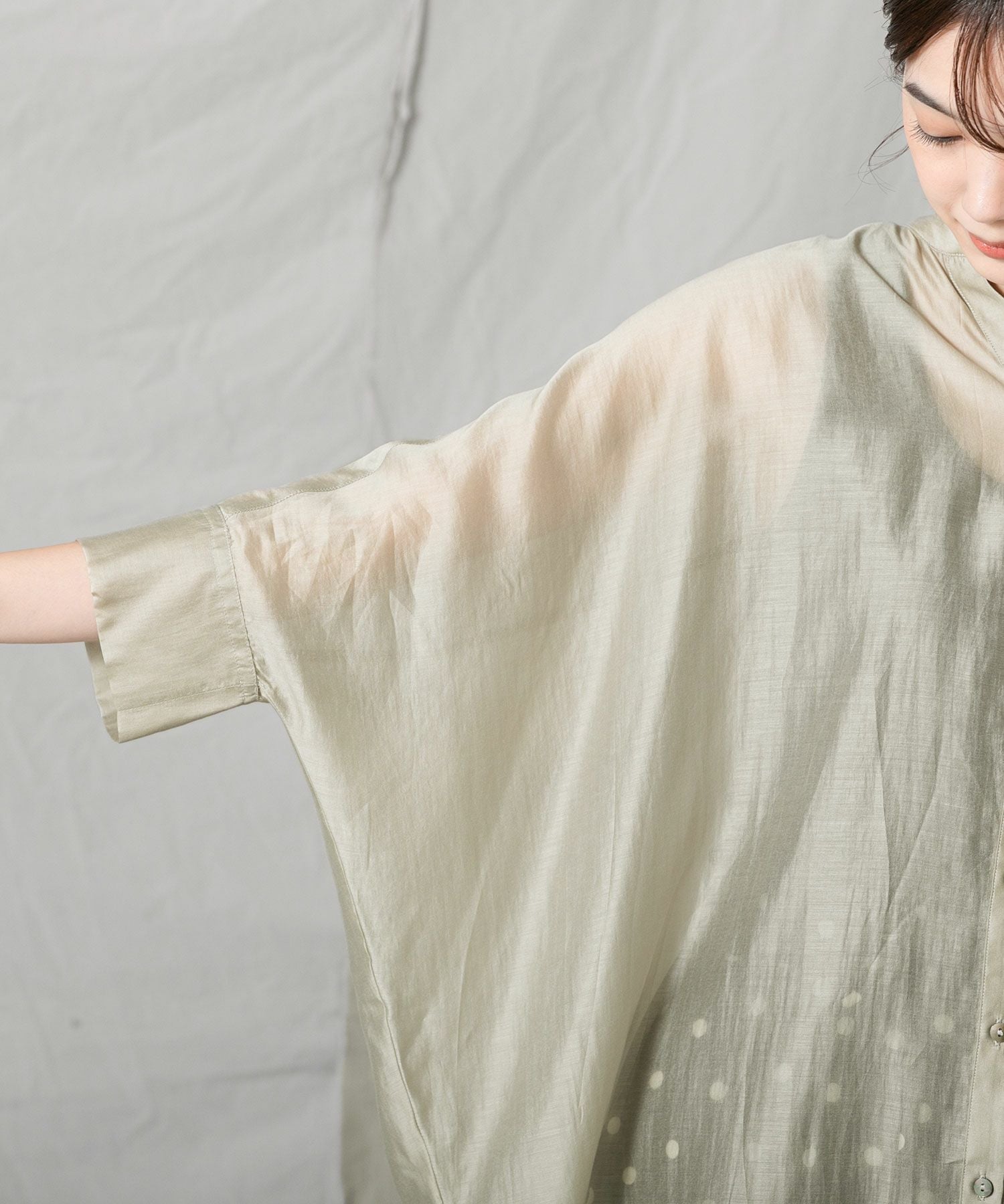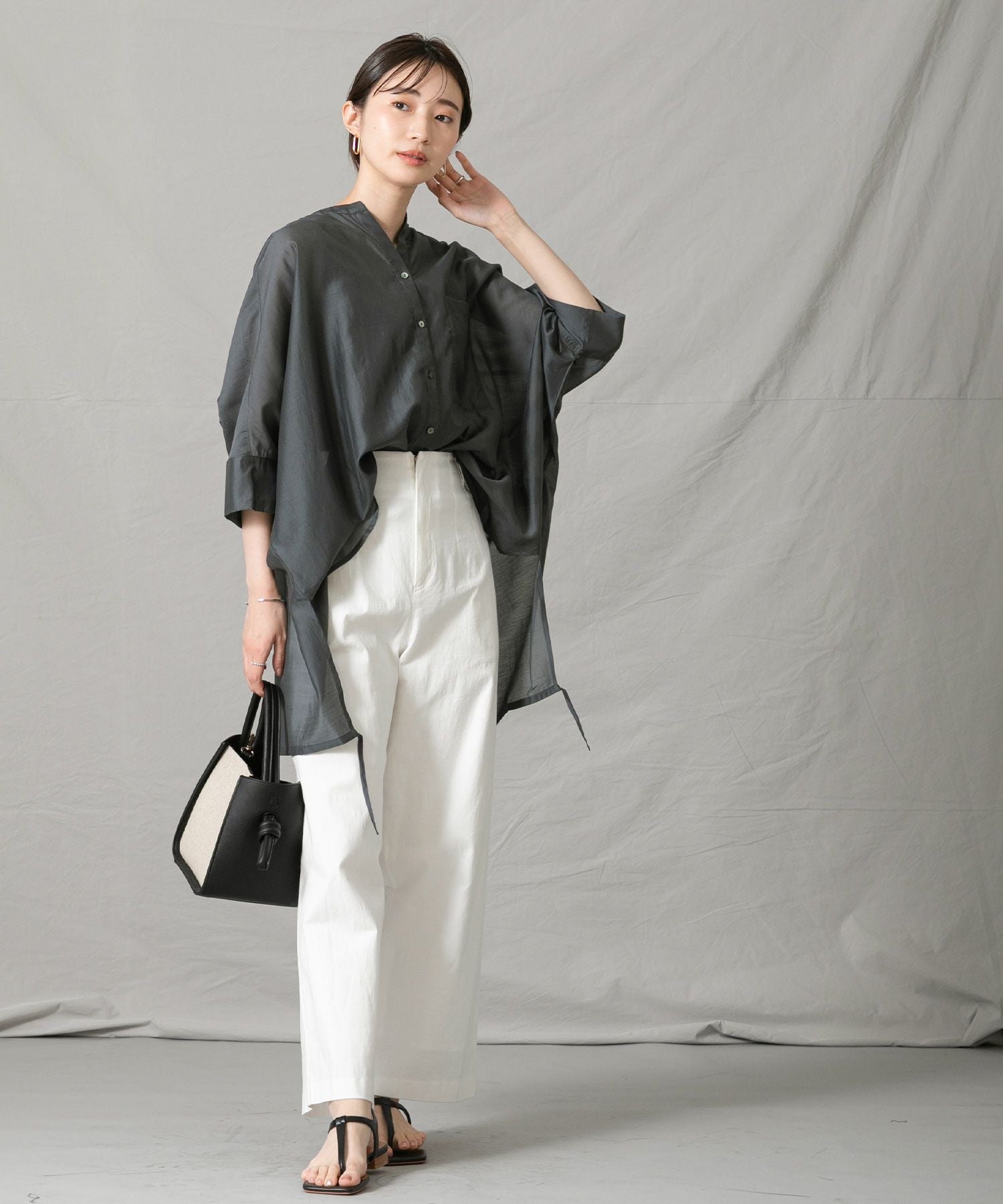 ゆったりとしたサイジングで暑い時期も涼しく着られます。ニュアンスカラーが大人のリラクシーなスタイルにおすすめの1枚です。