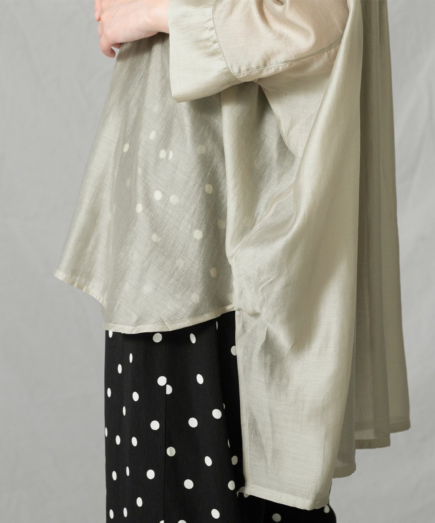 微光沢のあるシルクタッチな風合いが魅力。首元をすっきりと見せてくれるスキッパーネックが程よい抜け感を演出します。