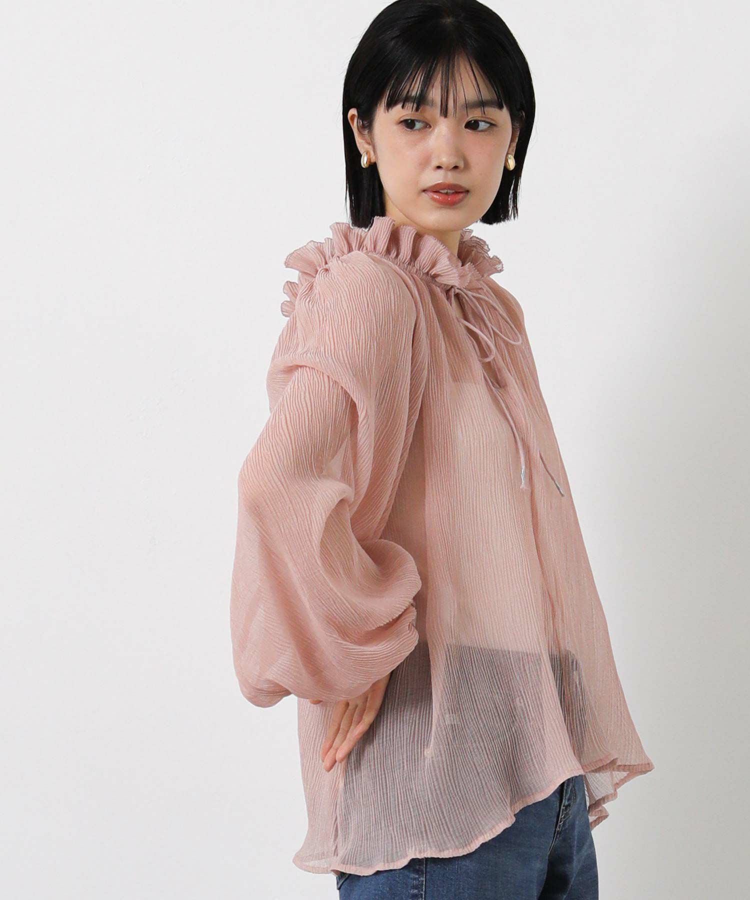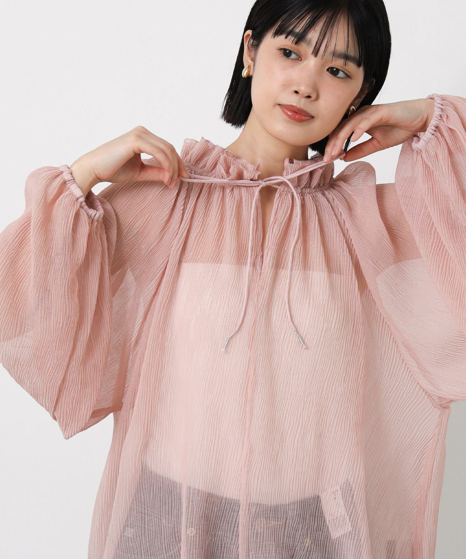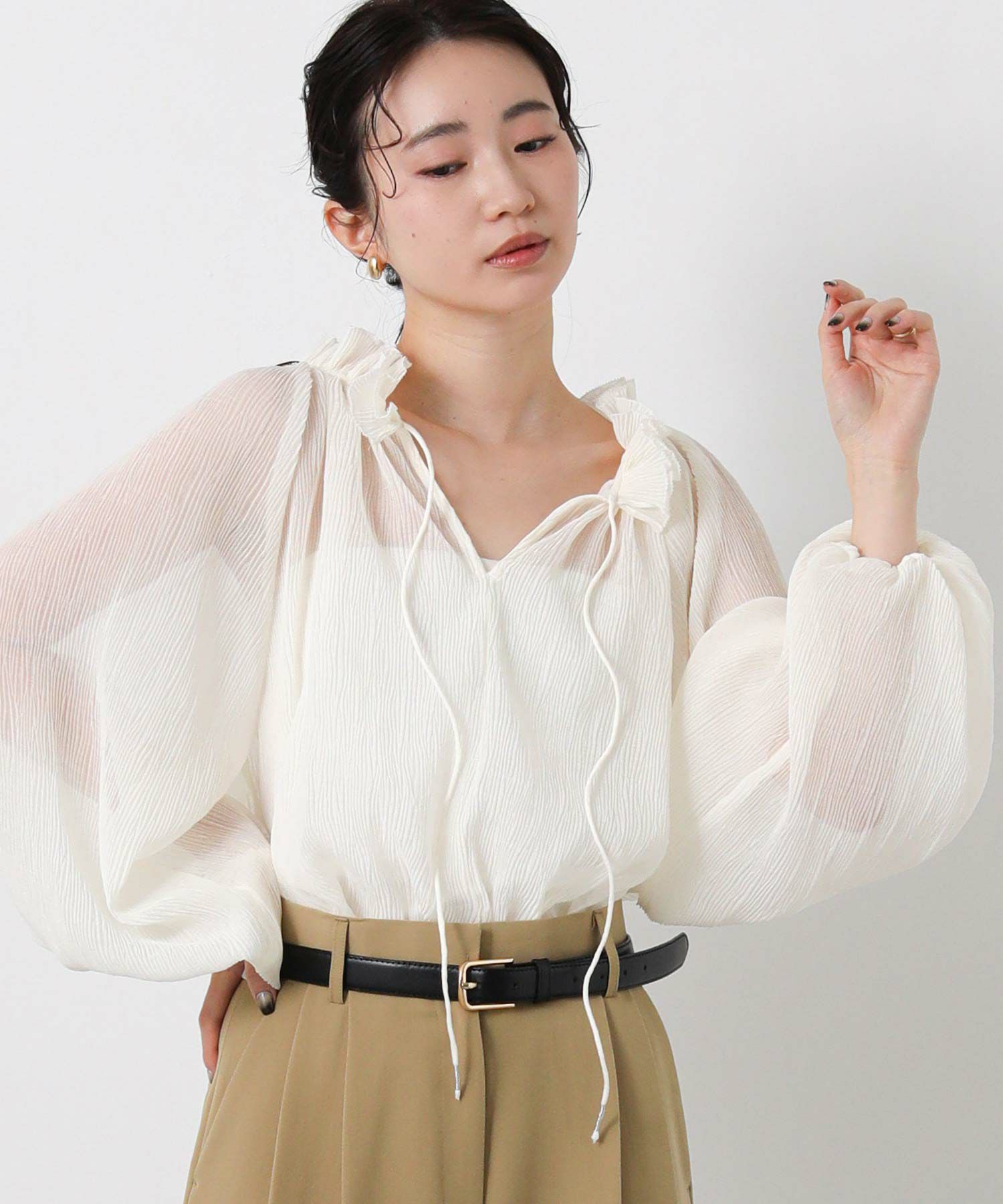 贅沢に細かなプリーツ加工を施した大人フェミニンなブラウス。