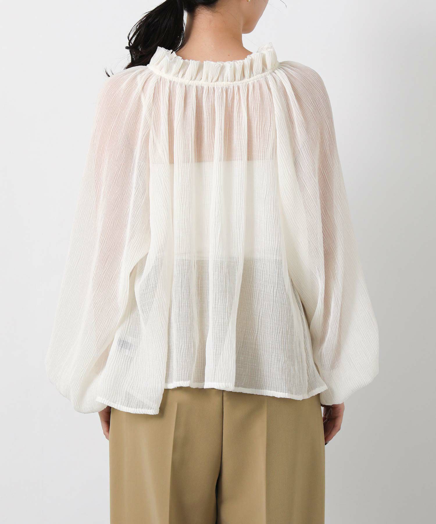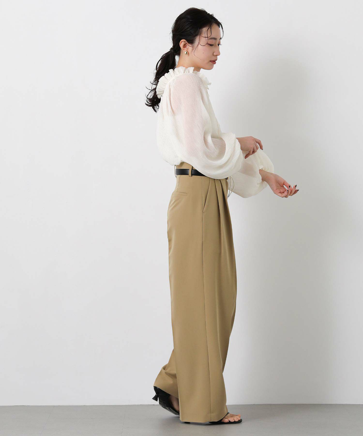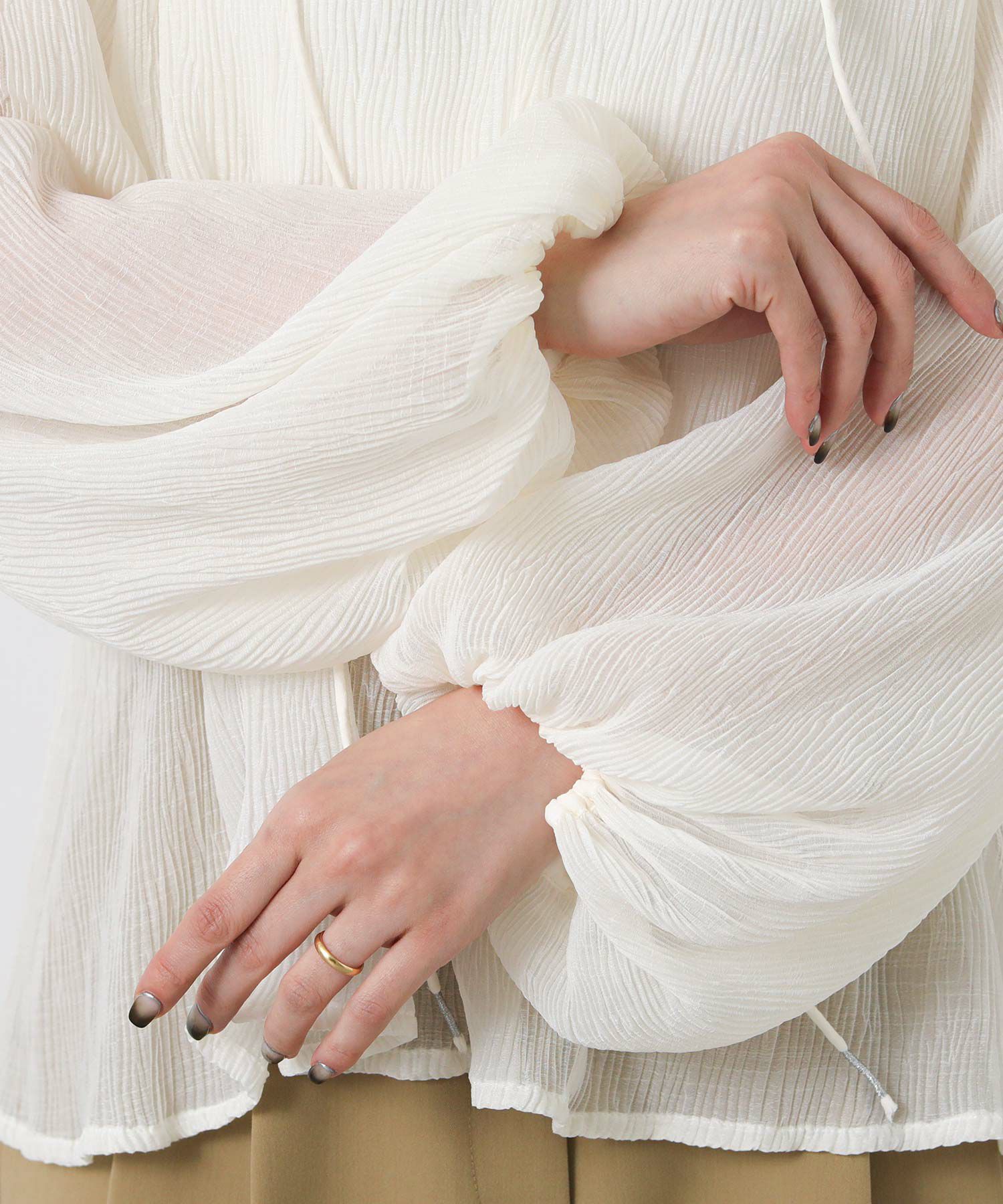 贅沢に細かなプリーツ加工を施した大人フェミニンなブラウス。