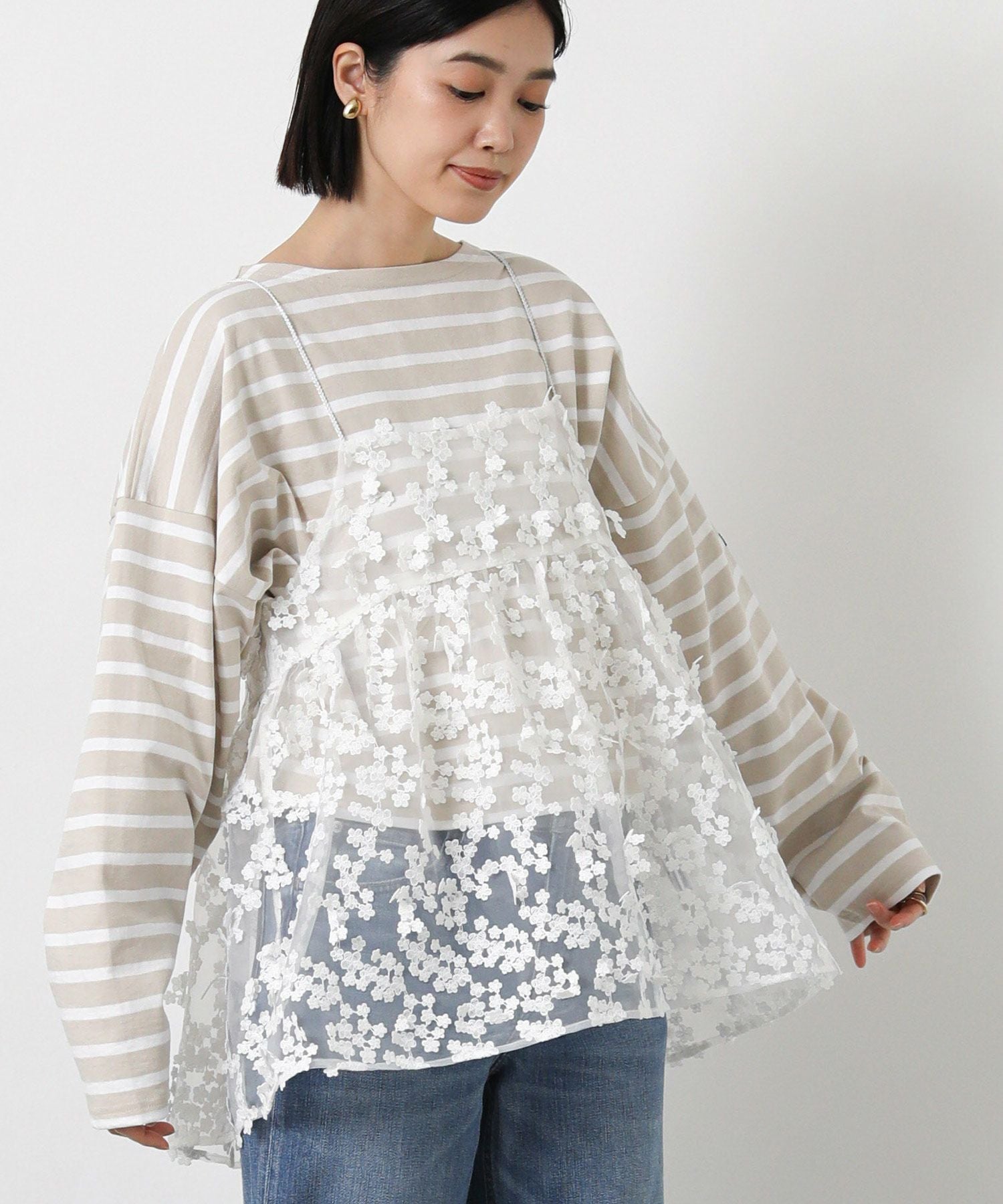 3D刺繍がフェミニンで華やかなキャミソール。