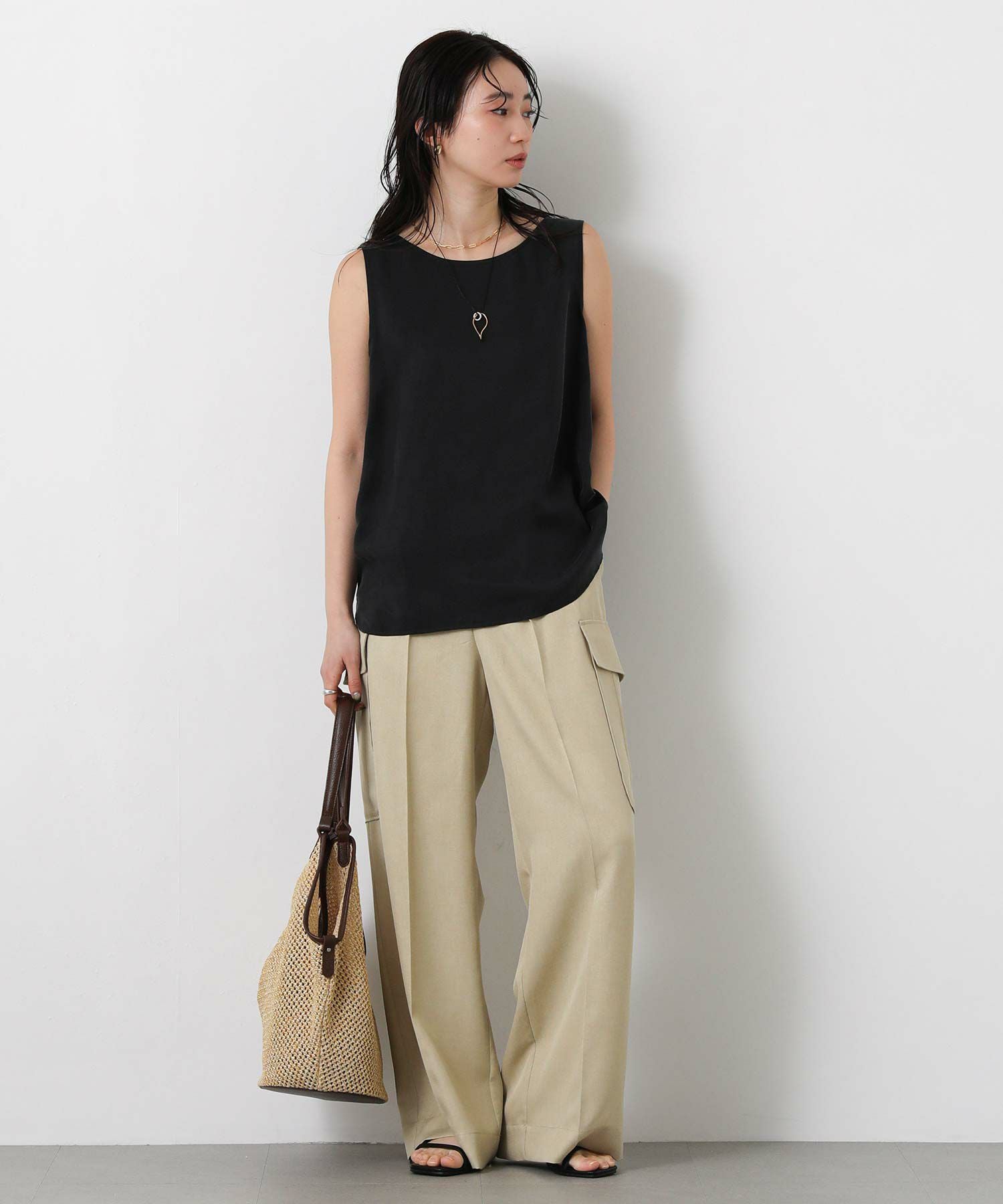 LUキュプラシャツ(OEO455424001)、LUキュプラセミワイド(OEO455426001)と素材感を合わせたセットアップでの着こなしがオススメ。