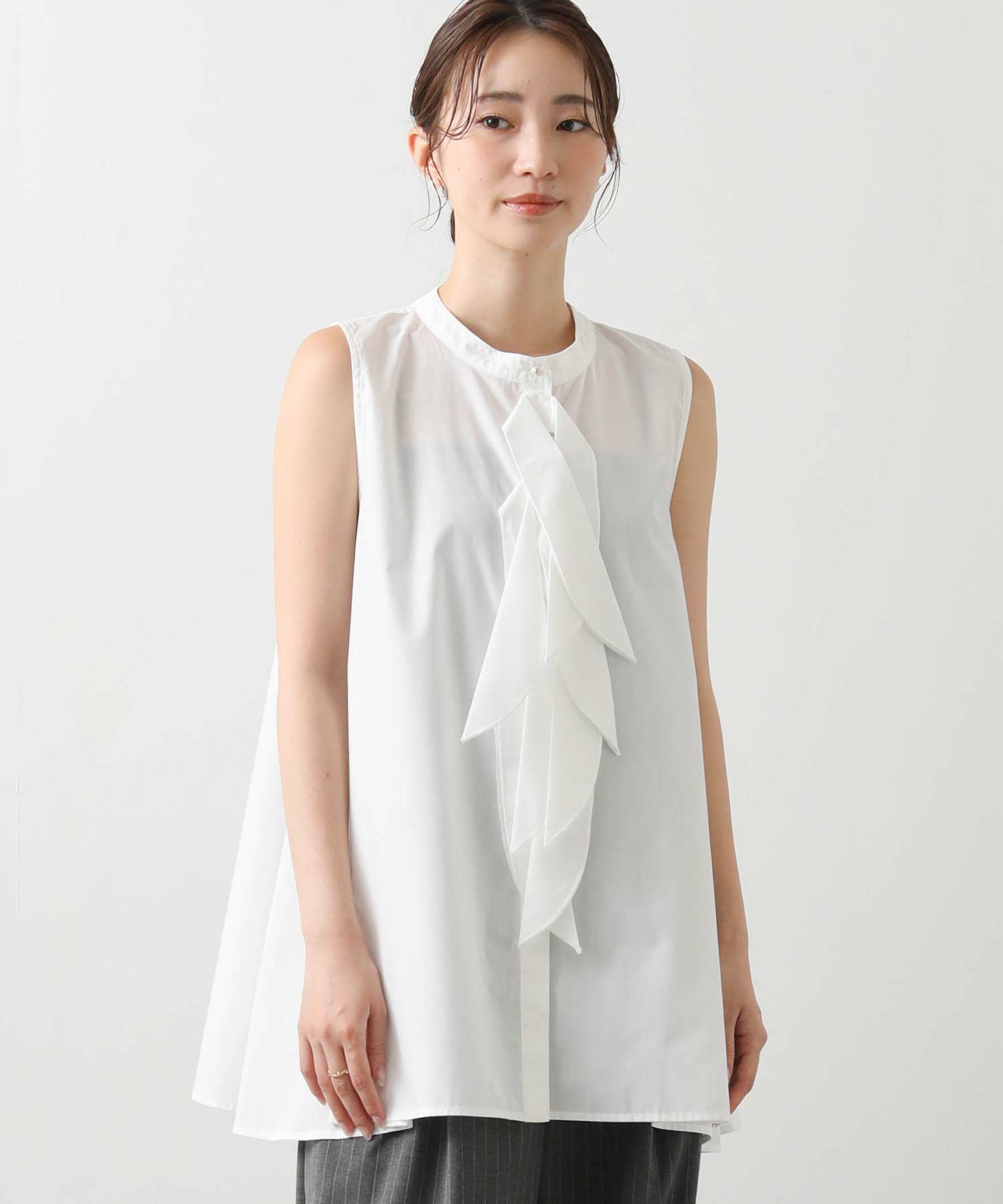 【TorrazzoDonna(トラッツォドンナ】から、前中心に大胆なリボンディテールを施したAラインシャツをセレクト。