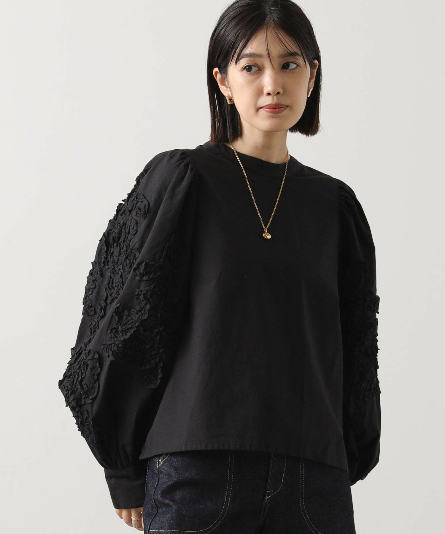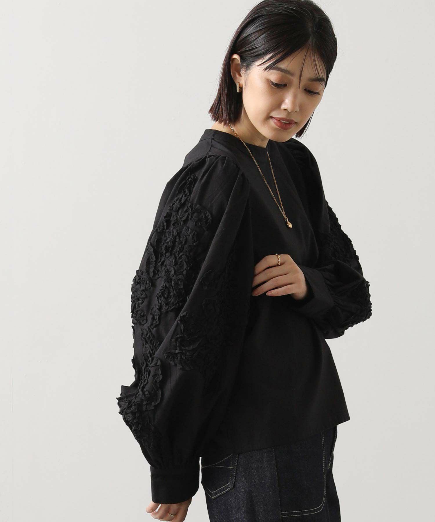【TorrazzoDonna(トラッツォドンナ】から、袖のボリュームと立体刺繍デティールが華やかなインドブラウスをセレクト。