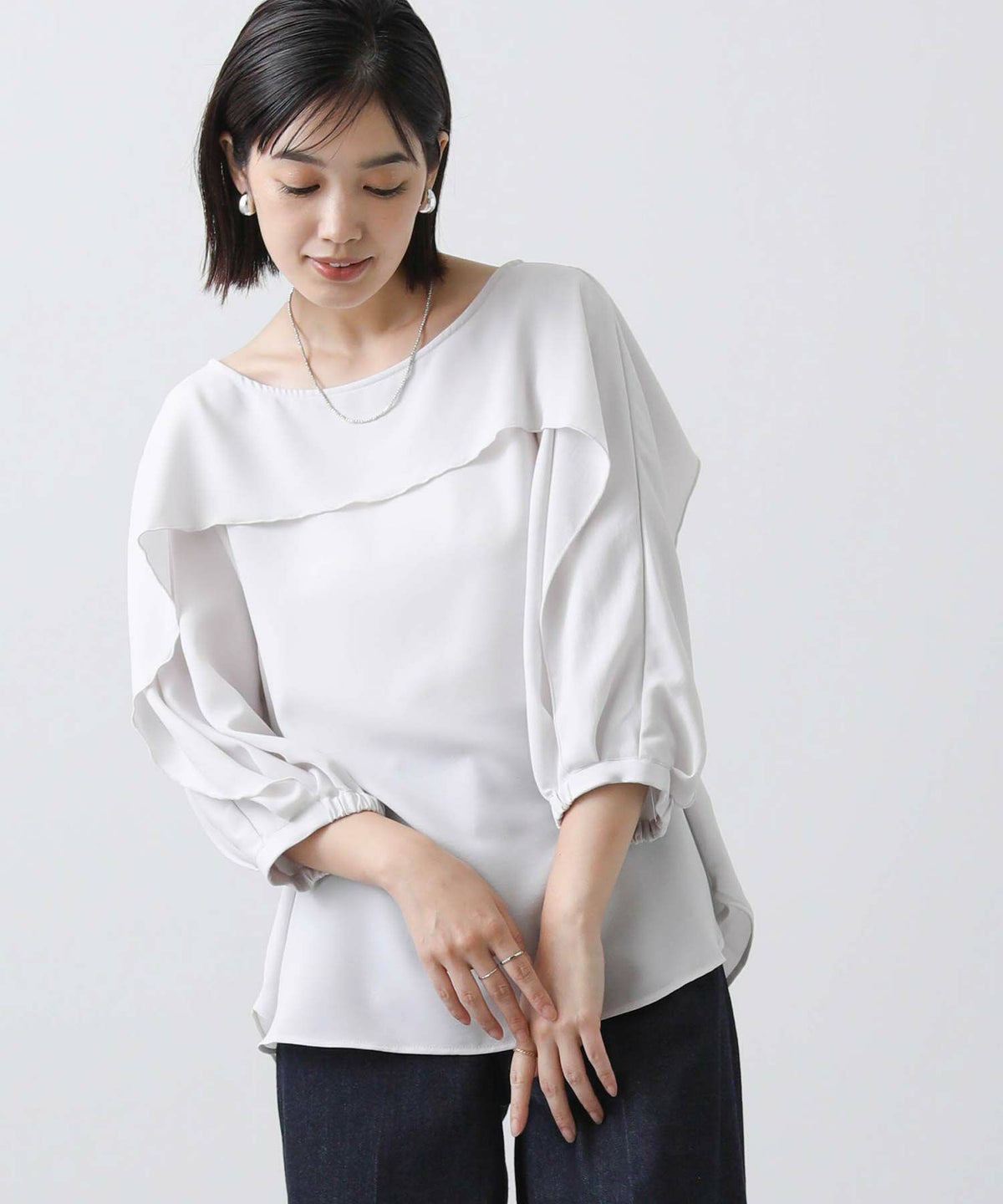 他の画像を見る 2点10%OFFクーポン対象 Gready Brilliant【2026年4月ファミリーセール対象商品】f.Eティアードボートネック7分袖ブラウス 定価 ¥ 9,790 のところ ¥ 6,600 税込 販売開始前です。 販売期間 2026/04/02 18:50 〜 カートに入れる お気に入りに登録する MORE