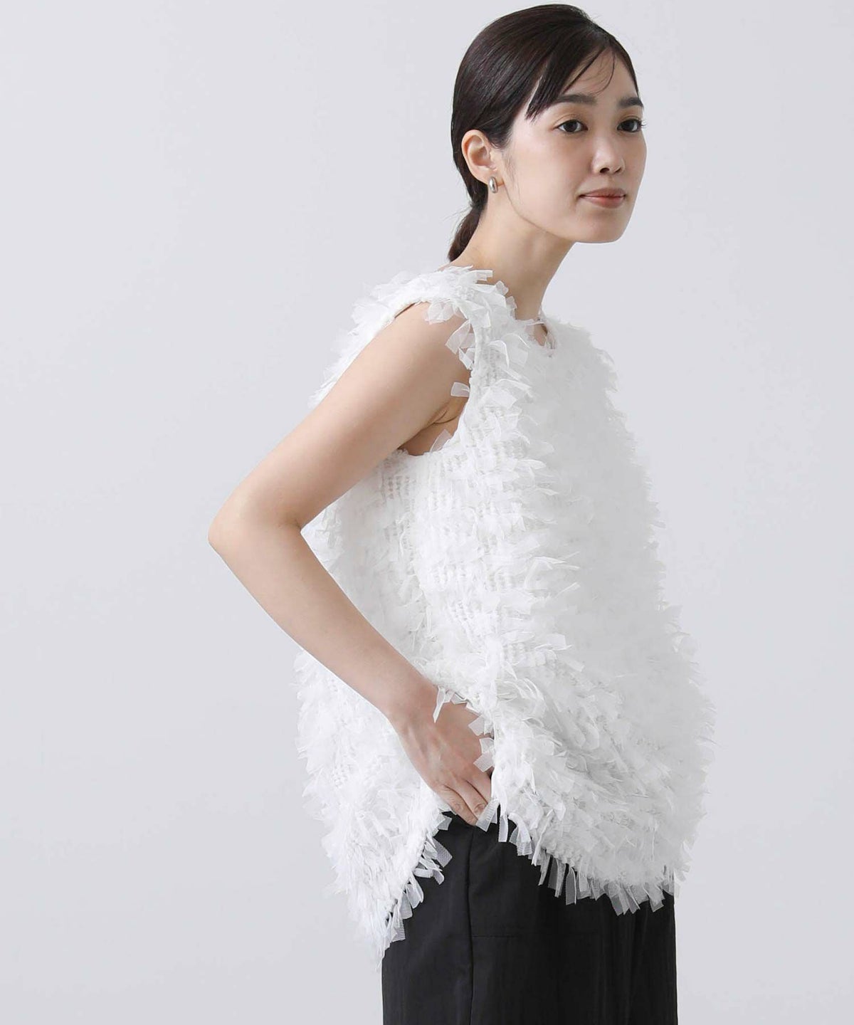 他の画像を見る 2点10%OFFクーポン対象 Gready Brilliant【2026年4月ファミリーセール対象商品】チュールフリンジブラウス 定価 ¥ 15,400 のところ ¥ 8,470 税込 販売開始前です。 販売期間 2026/04/02 18:50 〜 カートに入れる お気に入りに登録する MORE