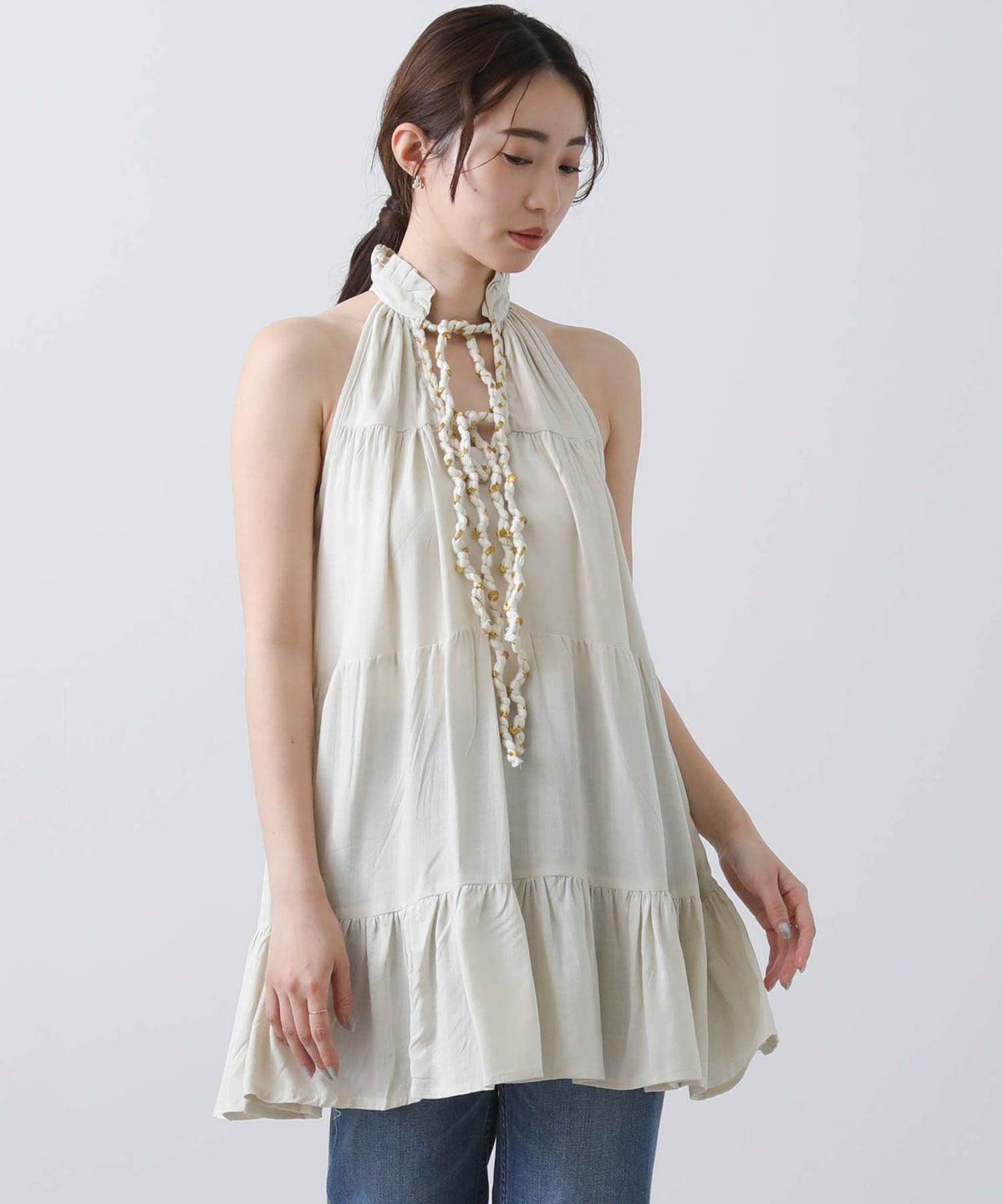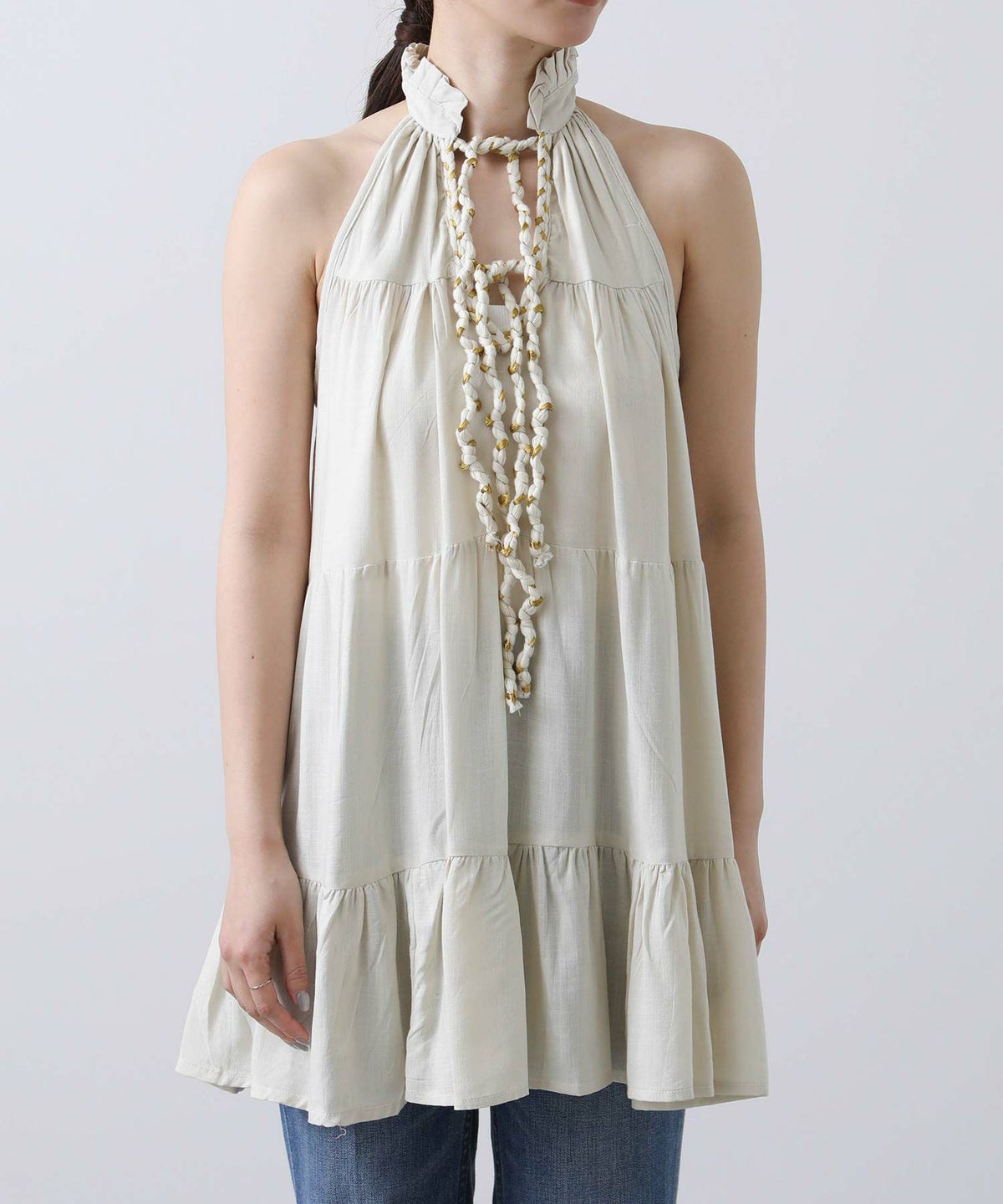 他の画像を見る 2点10%OFFクーポン対象 Gready Brilliant【2026年4月ファミリーセール対象商品】s.bleロープホルターチュニックブラウス 定価 ¥ 14,300 のところ ¥ 5,720 税込 販売開始前です。 販売期間 2026/04/02 18:50 〜 カートに入れる お気に入りに登録する MORE