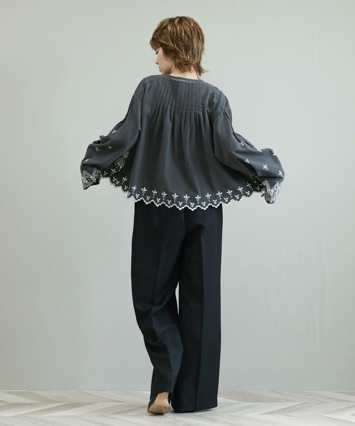他の画像を見る Gready Brilliant【2026年3月24日AM10:00で販売終了】ジョーゼットスキッパーネックブラウス 定価 ¥ 14,850 のところ ¥ 7,425 税込 カートに入れる お気に入りに登録する MORE