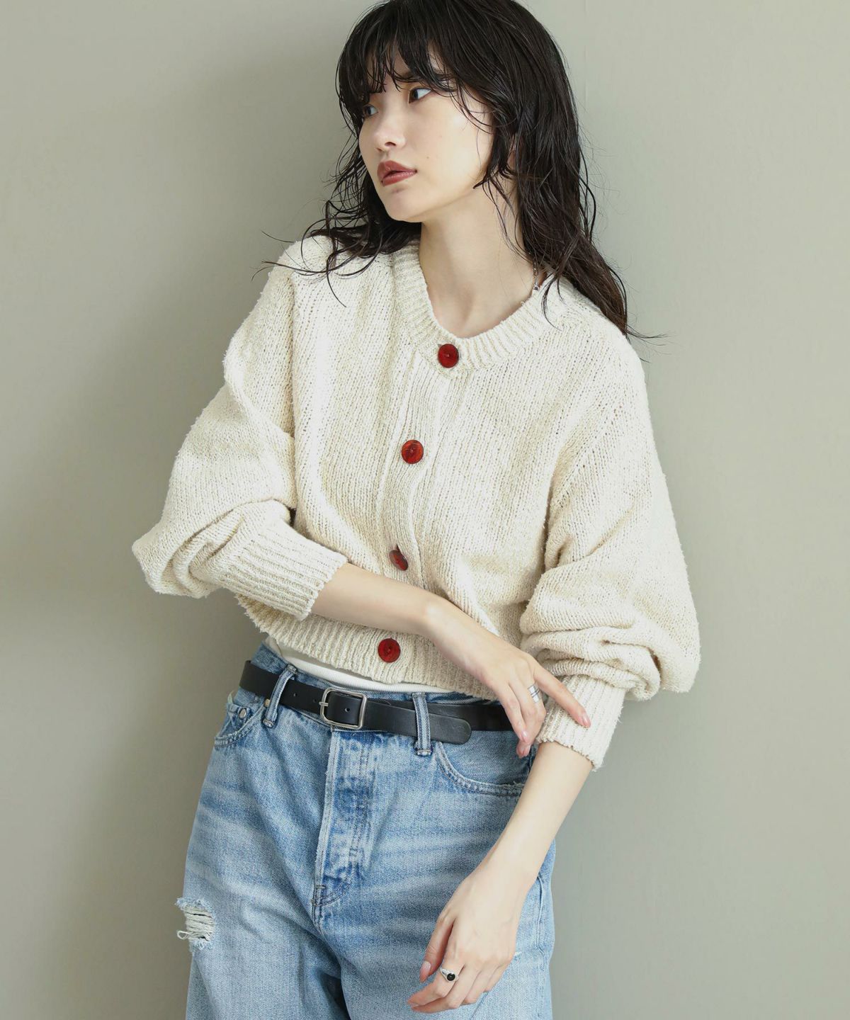 他の画像を見る Gready Brilliant【2026年3月24日AM10:00で販売終了】ウール100スムースVネックカーディガン 定価 ¥ 20,900 のところ ¥ 8,360 税込 カートに入れる お気に入りに登録する MORE